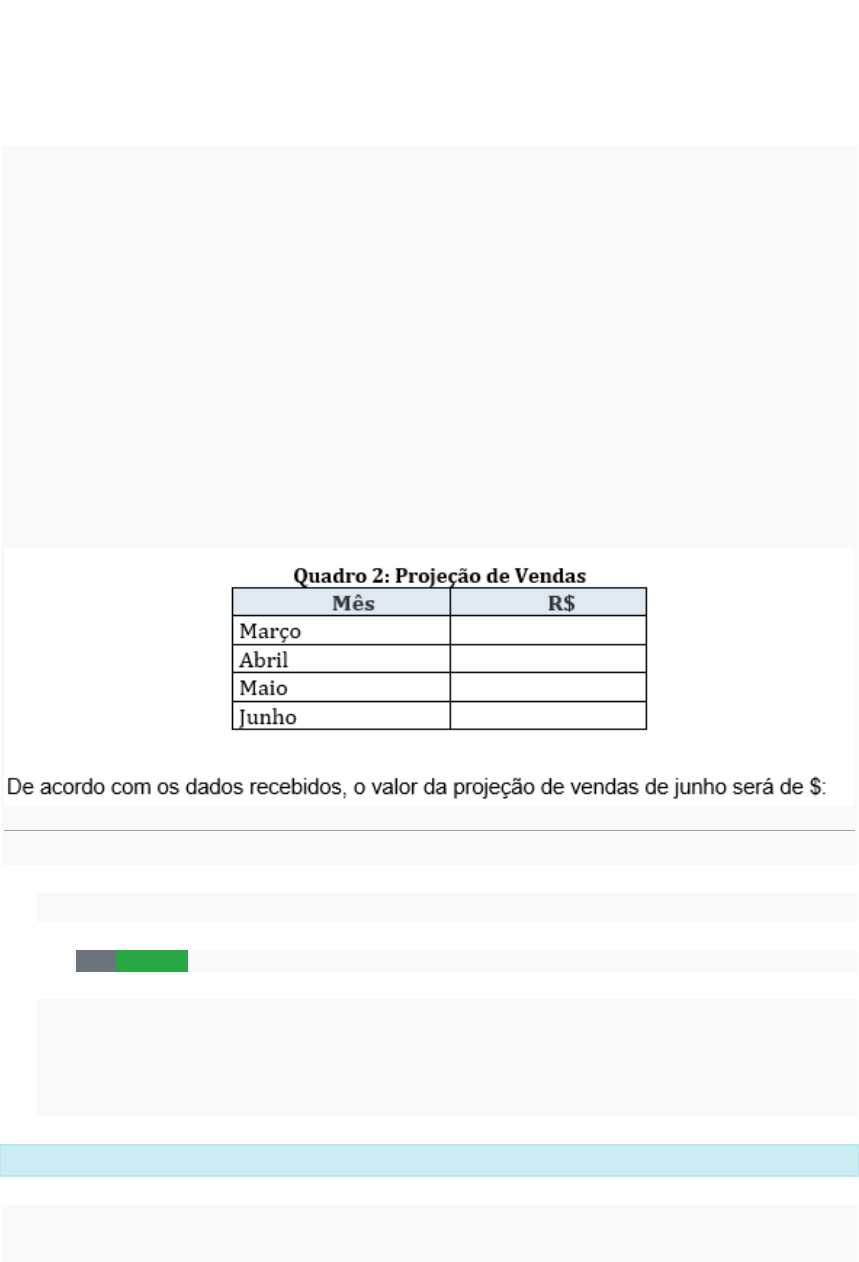 Avaliação - Planejamento estratégico orçamentário Prepare-se! Chegou a hora de você testar o conhecimento adquirido nesta disciplina. A Avaliação Virtual (AV) é composta por questões objetivas e corresponde a 100% da média final. Você tem até cinco tentativas para “Enviar” as questões, que são automaticamente corrigidas. Você pode responder as questões consultando o material de estudos, mas lembre-se de cumprir o prazo estabelecido. Boa prova! 1) A empresa do Sr. Antônio pede para que você faça a projeção de vendas para o próximo exercício, de acordo com os dados abaixo: Março, no valor de $ 15.000,00. Abril, com base no valor de março, projete um aumento de 25%. Maio, com base no valor de abril, projete uma redução de 10%. Junho, com base no valor de maio, projete um aumento de 32%. Utilize o quadro para realizar os cálculos. Alternativas: • 22.275,00. checkCORRETO • 18.750,00. • 22.500,00. • 27.225,00. • 16.875.00. Resolução comentada: A tabela preenchida deve ficar da seguinte maneira: Avaliação - Planejamento estratégico orçamentário Código da questão: 35353 2) O orçamento base zero exige muitos detalhes e Sebastião, CEO de uma grande empresa metalúrgica localizada em Manaus, sabe muito bem disso. Certo dia, um de seus empregados propôs a abertura de uma filial na cidade vizinha, dizendo que não havia nenhuma empresa com atividade semelhante na região. Sebastião gostou da ideia, e como a empresa sempre adotou o orçamento base zero, pediu para que o empregado fizesse um relatório detalhando a atividade, com respectivos objetivos, finalidades, gastos e benefícios e atividades alternativas, bem como as medidas de desempenho e as consequências de não execução. O projeto foi aprovado, mas Sebastião percebeu que não estava gerando sobra de caixa no final de 3 meses. Sebastião foi analisar o orçamento base zero e reestuda o assunto. Aponte uma conclusão plausível a que Sebastião pode ter chegado após o reestudo do investimento: Alternativas: • Os gastos envolvidos no investimento foram subestimados. checkCORRETO • As atividades alternativas não foram consideradas. • Os objetivos e finalidades não foram estabelecidos. • As consequências de não execução não foram formuladas. • Não há pessoas envolvidas na administração. Resolução comentada: Os gastos orçados no método “Orçamento base zero”, se fossem subestimados, provocariam aperto no fluxo de caixa, por serem maiores na realidade do que os orçados. Código da questão: 35327 3) No dia seguinte, João Pedro convoca a todos para uma reunião para tratarem de assuntos voltados para o orçamento. Judite, do setor de finanças, comunica que tinha pagamentos importantes a realizar e se não cumprisse a demanda a empresa teria de arcar com juros e multas. Antônio, da contabilidade, ao identificar que a ligação era da sala de João Pedro, diminuiu o volume do telefone e não atendeu a ligação. Justino, do almoxarifado, estava organizando o setor e fazendo contagem dos parafusos Avaliação - Planejamento estratégico orçamentário e não podia se ausentar do setor para não ter que recomeçar a contagem em momento futuro. Neste caso, houve um problema identificado pelo setor como: Alternativas: • Acompanhamento do projeto. • Extensa discussão sobre o que foi apresentado. • Ausência de orientação para objetivos. • Falta de adaptação organizacional aos projetos da empresa. • Falta de envolvimento da equipe selecionada. checkCORRETO Resolução comentada: A equipe não se envolveu com o problema apresentado pelo gestor. A elaboração do orçamento reveste-se de uma natureza nobre, é o instrumento que vai traduzir em números, datas e metas os objetivos maiores constantes do planejamento estratégico da empresa. Código da questão: 35318 4) Para realizar uma previsão de vendas, uma empresa deve seguir os seguintes passos, exceto: Alternativas: • Detalhar os tributos. • Projetar as vendas (quantidade). • Apurar o preço de venda a ser praticado. • Emitir nota fiscal de vendas não realizadas. checkCORRETO • Elaborar o orçamento de vendas. Resolução comentada: A empresa não deve emitir nota fiscal de produtos que não foram vendidos, pois esta prática pode comprometer o saldo de estoque, além de ser prática ilegal. Código da questão: 35334 5) Aponte a única alternativa incorreta a respeito dos passos que a empresa deve sempre levar em consideração para elaboração do orçamento base zero: Avaliação - Planejamento estratégico orçamentário Alternativas: • Breve descrição da atividade e objetivo ou finalidade da atividade. • Gastos e benefícios da atividade. • Medidas de desempenho. • Consequências da não execução da atividade. • Não previsão de atividades alternativas. checkCORRETO Resolução comentada: A empresa deve sempre prever atividades alternativas para não ter surpresas futuras no orçamento base zero. Código da questão: 35324 6) De acordo com o Balanço Patrimonial podemos avaliar: Alternativas: • IV e V. • I, III e IV. checkCORRETO Avaliação - Planejamento estratégico orçamentário • I e II. • III e V. • II e III. Resolução comentada: As alternativas II e V estão incorretas, os valores corretos são $ 83.000,00 e $ 21.000,00. Código da questão: 59341 7) Em relação aos questionamentos que a empresa deve abordar para realizar seu orçamento de vendas, considere as afirmações abaixo: I - Quais são os mercados que a empresa deseja atender? II - Qual a quantidade que a empresa pretende somente vender, desprezando-se a produção? III - Quais serão os preços praticados para cada produto que a empresa comercializa? IV - Não há necessidade em se pensar em distinção entre os preços praticados à vista dos preços praticados a prazo? V - Como se dará a política de crédito? VI - Quais tributos estarão inseridos neste cenário? VII - A empresa r