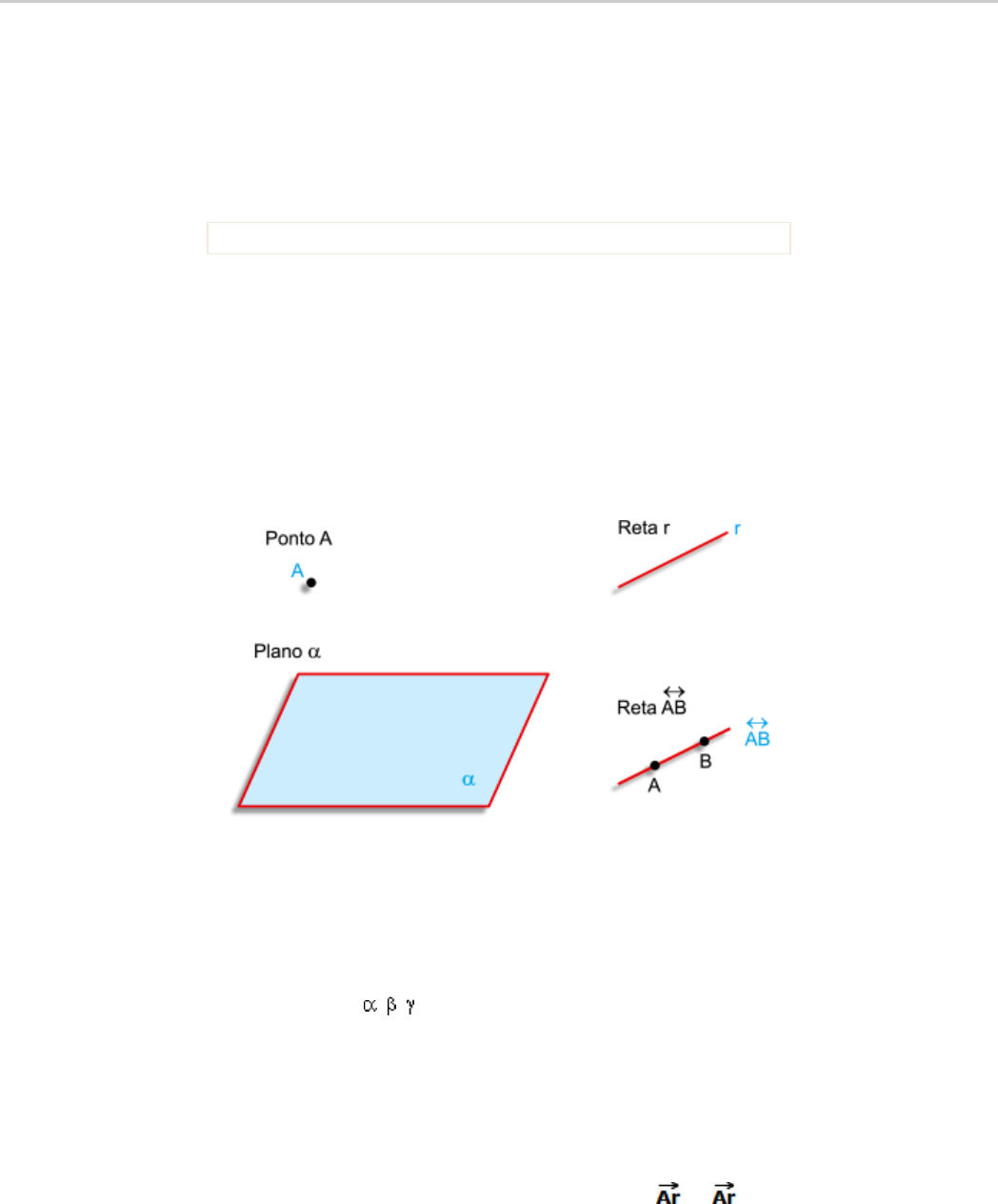 06/09/2023, 12:41 UNIP/Objetivo - Conteúdo Online https://conteudoonline.objetivo.br/Aula/Index/1706 1/10 Módulo 01 - Introdução ao estudo da geometria Matemática - 1º Bimestre - 2ª Série - Ensino Médio 1. Geometria plana A Geometria Plana estuda as figuras planas. Entendemos por figura plana todo subconjunto, não vazio, de pontos de um plano. Quando dizemos que uma figura é plana, estamos afirmando que ela está totalmente contida num plano. O conjunto universo da geometria plana será, pois, o plano. 2. Ponto, reta e plano São ideias primitivas, entes que não possuem definição. Conhecemos imagens de ponto como, por exemplo, a ponta do giz marcando o quadro-negro, um lápis tocando o papel, sendo, no entanto, apenas imagens, pois não há dimensão para ponto. Analogamente, possuímos a intuição de reta e plano. Representação gráfica Notação Costumam-se indicar: a) os pontos com letras maiúsculas A, B, C, ... b) as retas com letras minúsculas r, s, t, ... c) os planos com letras do alfabeto grego , , , ... d) como dois pontos distintos determinam uma reta, pode-se indicar a reta por dois de seus pontos. 3. Semirreta Um ponto A de uma reta r divide-a em dois subconjuntos chamados semirretas. O ponto A é origem das semirretas e pertence a ambas. Representa-se por e . 1 2 06/09/2023, 12:41 UNIP/Objetivo - Conteúdo Online https://conteudoonline.objetivo.br/Aula/Index/1706 2/10 A semirreta pode ser também indicada por dois pontos. indica a semirreta com origem A, que contém o ponto B, e indica a semirreta com origem A, que contém o ponto C. 4. Segmento de reta Podemos definir segmento de reta como sendo a intersecção de duas semirretas, cada uma contendo a origem da outra. Representa-se por AB. Simbolicamente: 5. Medidas Medida de um ente geométrico é um número real positivo, obtido pela comparação deste ente com um outro escolhido como unidade. Ao escolhermos esta unidade, estamos estabelecendo um sistema de medidas. A medida do segmento AB em centímetros é 5 e pode ser representada por: AB = 5 cm ou med (AB) = 5cm 6. Congruência O termo congruência não será definido. A ideia intuitiva de congruência entre dois entes geométricos está associada às suas medidas. Dois entes serão congruentes quando suas medidas forem iguais. Para indicarmos a congruência entre dois entes geométricos utilizaremos o símbolo . 06/09/2023, 12:41 UNIP/Objetivo - Conteúdo Online https://conteudoonline.objetivo.br/Aula/Index/1706 3/10 7. Congruência de segmentos de reta Dois segmentos de reta, AB e CD, serão congruentes se, e somente se, tiverem a mesma medida. Simbolicamente: 8. Segmentos colineares São aqueles que são subconjuntos da mesma reta. Exemplos AB, MN, AN, AM etc ... 9. Ponto médio de um segmento M será ponto médio de um segmento AB se, e somente se, M pertencer ao segmento AB e AM for congruente com BM. Assim: 10. Região convexa Um conjunto de pontos S é uma região convexa se, e somente se, para qualquer par de pontos A e B de S, o segmento AB for subconjunto de S. Assim, 06/09/2023, 12:41 UNIP/Objetivo - Conteúdo Online https://conteudoonline.objetivo.br/Aula/Index/1706 4/10 Quando existirem dois pontos A e B de S, de tal forma que AB não é um subconjunto de S, a região é dita côncava ou não convexa. Assim: 11. Ângulos Ângulo é a união de duas semirretas de mesma origem. Simbolicamente: O ponto O é o vértice do ângulo e as semirretas e e são os lados do ângulo. Notação O ângulo determinado pelas semirretas e será indicado por: r s ou B C ou 06/09/2023, 12:41 UNIP/Objetivo - Conteúdo Online https://conteudoonline.objetivo.br/Aula/Index/1706 5/10 12. Região angular Observe que o ângulo geralmente determina, no plano, três conjuntos: a) pontos "interiores" (P; Q; R; ...) b) pontos do ângulo (O; A; B; ...) c) pontos "exteriores" (X; Y; Z; ...) Região angular é a região determinada pela união do conjunto dos pontos do ângulo com o conjunto dos pontos "interiores". 13. Ângulos consecutivos Dois ângulos são consecutivos quando têm mesmo vértice e pelo menos um lado em comum. Os ângulos mÔr e rÔs são consecutivos, pois admitem o lado em comum. 06/09/2023, 12:41 UNIP/Objetivo - Conteúdo Online https://conteudoonline.objetivo.br/Aula/Index/1706 6/10 Os ângulos mÔr e rÔs são consecutivos, pois admitem o lado em comum. 14. Ângulos adjacentes Dois ângulos consecutivos serão adjacentes quando a intersecção entre seus conjuntos de pontos "interiores" for vazia. Os ângulos mÔr e rÔs são adjacentes. Observação Dois ângulos adjacentes são sempre dois ângulos consecutivos, porém dois ângulos consecutivos nem sempre são adjacentes. 15. Congruência de ângulos Dois ângulos são congruentes se, e somente se, eles têm mesma medida. Simbolicamente: 16. Ângulo reto Duas retas são chamadas concorrentes se, e somente se, elas possuírem um único ponto em comum. Observe que duas retas concorrentes determinam quatro regiões angulares adjacentes. Quando duas dessas regiões angulares adjacentes forem congruentes, dizemos que qualquer uma delas define uma região de ângulo reto. 06/09/2023, 12:41 UNIP/Objetivo - Conteúdo Online https://conteudoonline.objetivo.br/Aula/Index/1706 7/10 Observação Quando duas retas r e s são concorrentes e determinam ângulos adjacentes congruentes, elas são chamadas perpendiculares. Simbolicamente r ^ s. Exercícios Propostos Nos exercícios de 1 a 4, represente graficamente os entes geométricos, apresentando sua notação: 1. Reta r determinada por dois pontos, A e B. 2. Semirreta determinada por dois pontos, A e B, que tem origem no ponto A e contém o ponto B. 3. Segmento de reta determinado por dois pontos, A e B. 4. Ângulo de lados e e vértice O. 5. Classifique as regiões a seguir em convexa e não convexa. a) reta b) ângulo c) região angular d) circunferência e) círculo f) coroa circular 06/09/2023, 12:41 UNIP/Objetivo - Conteúdo Online https://conteudoonl