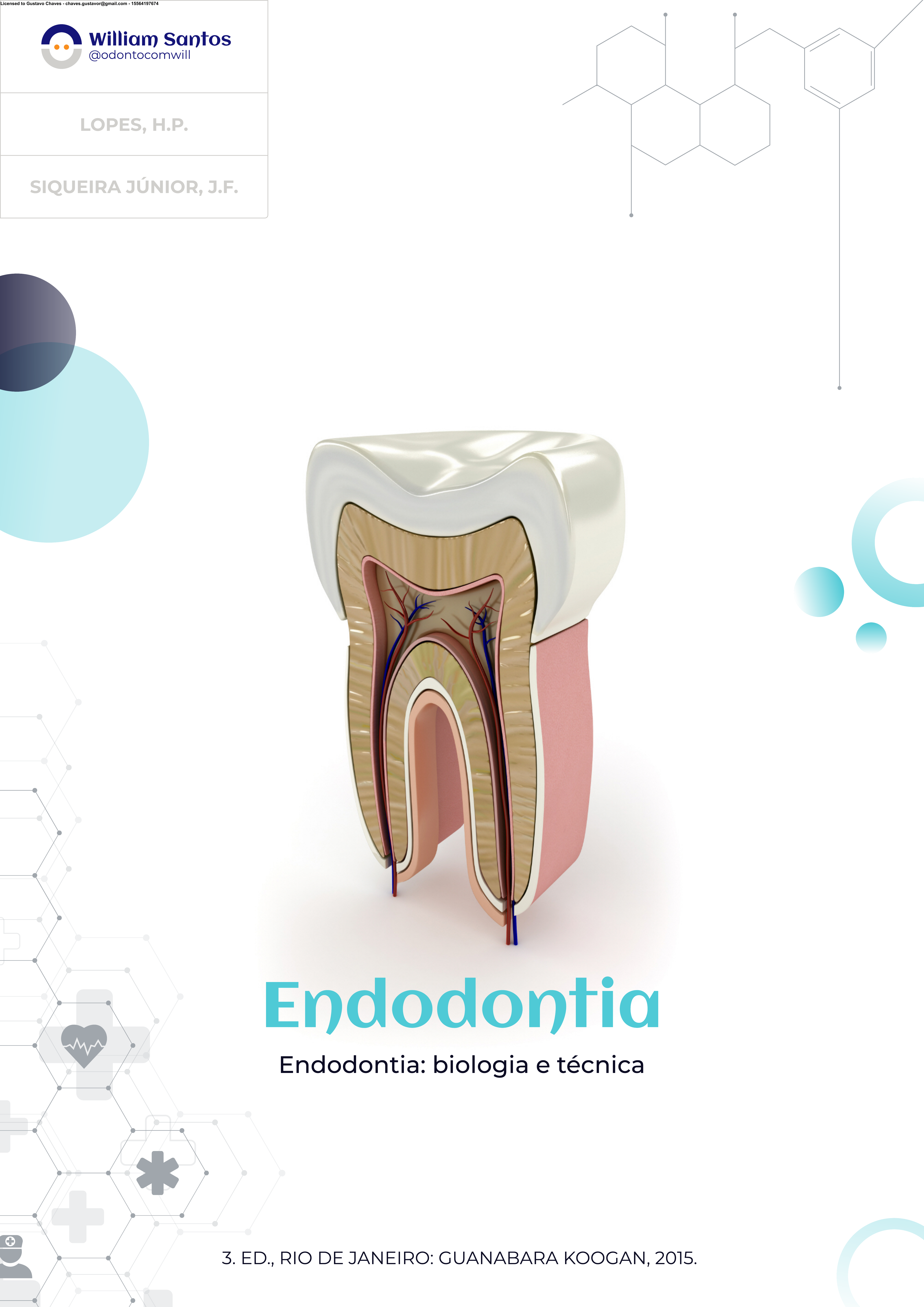 Endodontia: biologia e técnica 3. ED., RIO DE JANEIRO: GUANABARA KOOGAN, 2015. Endodontia LOPES, H.P. sIQUEIRA JÚNIOR, J.F. William Santos @odontocomwill Licensed to Gustavo Chaves - chaves.gustavor@gmail.com - 15564197674 William Santos @odontocomwill 1 Conteúdos Diagnóstico Anamnese (pág. 2) Exame objetivo (pág. 2) Testes (pág. 5) Diagnóstico pulpar e perirradicular Protocolos farmacológicos (pág. 33) Medicação intracanal (pág. 36) Pulpopatias (pág. 7) Periodontopatias (pág. 8) Considerações práticas Tabela dentes superiores: Forma de contorno / ponto de eleição / direção de trepanação / forma de conveniência (pág. 12) Tabela dentes inferiores: Forma de contorno / ponto de eleição / direção de trepanação / forma de conveniência (pág. 12) Tabela dentes superiores: número de canais ou raízes / pontas ou brocas utilizadas / forma de contorno da cavidade (pág. 13) Tabela dentes inferiores: número de canais ou raízes / pontas ou brocas utilizadas / forma de contorno da cavidade (pág. 14) Materiais (pág. 15) Conduta geral (pág. 21) Necropulpectomia Pulpotomia (pág. 27) Primeira sessão (pág. 24) Segunda sessão (pág. 26) Sugestão de mesa clínica (pág. 26) Retratamento endodôntico (pág. 28) Remoção da restauração coronária (pág. 29) Remoção de retentores intrarradiculares (pág. 30) Remoção do material obturador do canal radicular (pág. 31) Reinstrumentação do canal (pág. 32) Licensed to Gustavo Chaves - chaves.gustavor@gmail.com - 15564197674 Técnica de diagnóstico: abordagem sistemática do paciente, incluindo a anamnese (exame subjetivo), o exame físico (exame objetivo) e os exames complementares. A interpretação e o cruzamento das informações coletadas em cada uma das três etapas possibilitarão o fechamento do diagnóstico com a consequente elaboração do plano de tratamento. Busca-se ter 2 diagnósticos finais Diagnóstico pulpar Diagnostico periapical. Diagnóstico William Santos @odontocomwill 2 ANAMNESE Queixa principal: Durante a anamnese, procura-se registrar a queixa principal, quando houver. Ela se refere ao motivo da procura pelos nossos serviços e deve ser anotada com as próprias palavras do paciente. Qual a origem da dor? Descobrindo se a dor é dentária ou não Qual dente dói? A dor é pulpar ou periapical? História Médica e Odontológica: Descubra a duração da dor, pois a dor dentária tem duração curta (poucos dias) A dor dentária acorda o paciente a noite ou se intensifica A dor dentária não melhora com uso de analgésicos comuns. O paciente tem duas respostas: Apontar qual dente é – com isso, fica fácil saber por onde começar o exame ou mostrar a região dolorida. existe muitos nervos proprioceptivos na região do periapical e poucos na região da polpa, ou seja, não saber exatamente a posição indica dor pulpar e o contrário também é verdadeiro. Estímulos frios são úteis para identificar uma dor pulpar, respostas afirmativas para questões como: “seu dente dói com água gelada”, indicam dor pulpar. A mastigação é um estímulo para dor no periápice. Deve-se obter a história da doença atual, verificando-se o seu início, duração, características, evolução, remissões, se há fatores que a modificam e se houve tratamentos prévios. EXAME OBJETIVO Inspeção: Antes de o paciente chegar à cadeira odontológica, o seu exame clínico já pode e deve ser iniciado. A inspeção do paciente deve começar quando ele entra no consultório, pois a simples observação do gestual e da expressão facial podem apresentar informações muito relevantes, observa-se, por exemplo: A proeminência exagerada dos globos oculares (exoftalmia) e o aumento de volume na região tireoidiana podem estar ligados a algum distúrbio endocrinológico, se o paciente que se arrasta claudicante (manco) poderá ter sido vítima de acidente vascular cerebral ou de algum traumatismo. As alterações sistêmicas notadas devem ser esclarecidas, e o profissional não deve ter o receio ou pudor de utilizar essas informações, advindas da inspeção, no momento da anamnese. Licensed to Gustavo Chaves - chaves.gustavor@gmail.com - 15564197674 Palpação: Utilizando-se a ponta do dedo indicador, os dedos indicador e médio, ou também com auxílio do polegar, deve-se apalpar a região da face que será examinada, buscando fazê-lo também bilateralmente, estabelecendo, assim, as semelhanças e as diferenças entre o lado direito e esquerdo do paciente, investigando alterações. William Santos @odontocomwill 3 Inspeção Bucal: deve-se observar a alteração de cor da coroa, estado das restaurações, exposição pulpar, presença ou ausência de cáries. Observar as demais estruturas bucais, sua cor e morfologia, buscando averiguar a presença de tumefação (edema), existência de fístula e sua parúlide (furúnculo gengival), além dos tecidos moles e exame da língua. Palpação Apical: tatear a região apical do elemento dentário examinado, fazendo-o delicadamente com a ponta do dedo indicador, verificando se há alguma resposta dolorosa ou, pelo tato, a presença de alterações patológicas de sua forma. · Edema periapical, mole à palpação, pressupõe a passagem de líquido para o interstício tecidual, como ocorre, por exemplo, no caso de elemento portador de polpa necrosada, infectada, com abscesso apical. · Aumento de volume apical endurecido, de sensibilidade leve, respondendo à palpação com a chamada crepitação óssea (resposta à palpação parecida com a de apertar uma bolinha de tênis de mesa), demonstra a existência de um processo apical de origem endodôntica com crescimento lento e expansivo, que é o que se espera, por exemplo, de uma lesão cística. · Perda de continuidade na integridade do osso, às vezes acompanhada de uma ligeira depressão, preenchida por tecido mole à palpação, denotando lise óssea na região perirradicular apical, características de lesõ