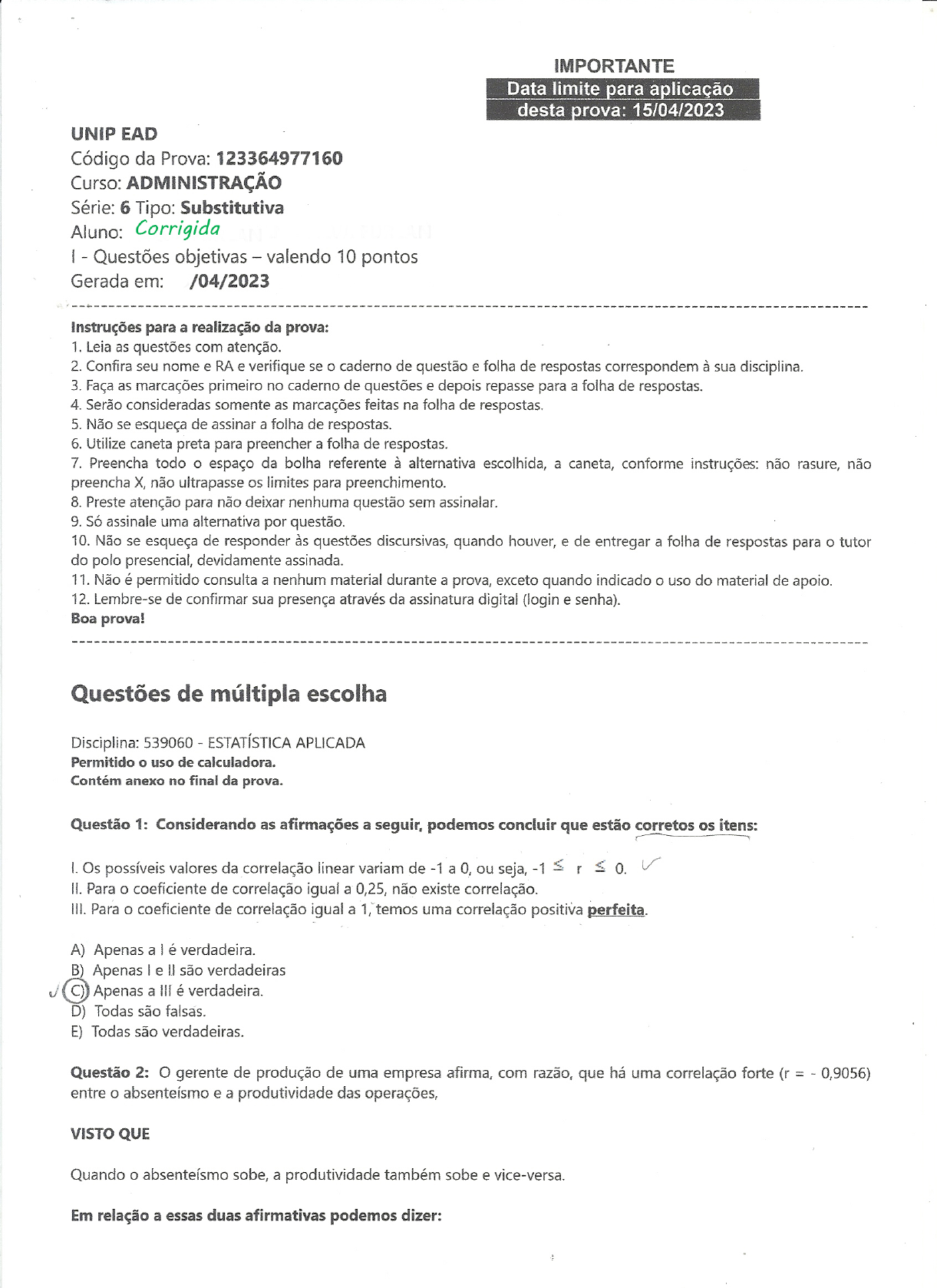 Estatística Aplicada Prova parte 1 Estatística Aplicada Prova parte 2 Estatística Aplicada Prova parte 3