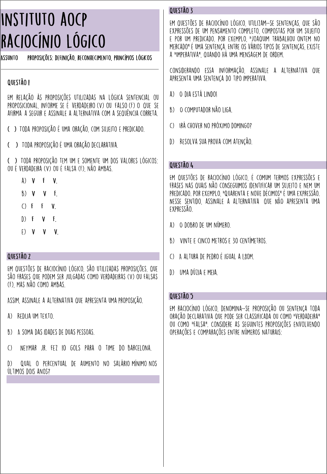 – → – – – – – – – – – – ∨ ∨ ˅ + ≠ – √ ∈ < a) b) c) d) e) > – √ ∈ + > – √ ∈ + a) b) c) d) e) ^ ^ ^ < > ≠ > > ≠ → ~ a) ^ ¬ → ↔ b) ¬ ^ ↔ → c) ¬ ^ → ↔ d) → ↔ ¬ ^ e) ¬ ^ → ↔ ¬ ¬ ↔ → ¬ ∨ a) → ~ b) → c) ~ → ~ d) ↔ ~ e) ↔ ° e Instituto AOCP - Ass TI (UFPB)/UFPB/2019 c Instituto AOCP - Adv (CM CS Agosti)/CM C Sto Agostinho/2019 d Instituto AOCP - Aux (CM C Sto Agost)/CM C Sto Agostinho/Administrativo/2019 c Instituto AOCP - Cont (CM C Sto Agos)/CM C Sto Agostinho/2019 b Instituto AOCP - Prof (Umuarama)/Pref Umuarama/Educação Infantil/2019 d Instituto AOCP - Prof (Umuarama)/Pref Umuarama/Educação Física/2019 Certo Instituto AOCP - Ana TI (UFOB)/UFOB/Desenvolvimento/2018 Errado Instituto AOCP - Ana TI (UFOB)/UFOB/Desenvolvimento/2018 Certo Instituto AOCP - Ana TI (UFOB)/UFOB/Infraestrutura/2018 e Instituto AOCP - Op Comp (CM Maringá)/CM Maringá/2017 a Instituto AOCP - Assist (CM Maringá)/CM Maringá/Legislativo/2017 e Instituto AOCP - Proc (Pinhais)/Pref Pinhais/2017 c Instituto AOCP - Cont (Pinhais)/Pref Pinhais/2017 c Instituto AOCP - Med (Pinhais)/Pref Pinhais/Da Família/2017 Errado Instituto AOCP - Sold (PM CE)/PM CE/2016 d Instituto AOCP - Cont (CM C Sto Agos)/CM C Sto Agostinho/2019 d Instituto AOCP - Prof (Umuarama)/Pref Umuarama/Educação Infantil/2019 Errado Instituto AOCP - Ana TI (UFOB)/UFOB/Infraestrutura/2018 Certo Instituto AOCP - Ana TI (UFOB)/UFOB/Infraestrutura/2018 c Instituto AOCP - Estat (ADAF)/ADAF/2018 c Instituto AOCP - Tec (Pinhais)/Pref Pinhais/Informática/2017 e Instituto AOCP - Ana Leg (CM RB)/CM RB/Tec. Inf. Manutenção/2016 a Instituto AOCP - Ana Leg (CM RB)/CM RB/Tec. Inf. Manutenção/2016