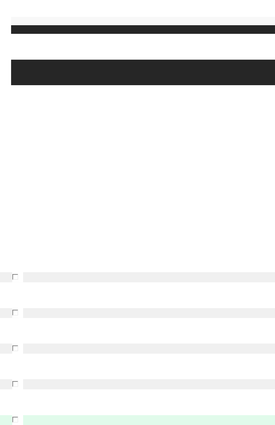 Módulo B - 183727 . 7 - Microbiologia Clínica - T.20232.B Avaliação On-Line 2 (AOL 2) - Questionário Nota final 10/10 1. Pergunta 1 1/1 Nota final: 1 ponto de 1 ponto possível(eis) Os cocos Gram-positivos, conhecidos como CGP, estão disseminados na natureza e podem ser isolados do ambiente como habitantes comensais da pele, das mucosas e de outras partes do corpo de seres humanos e animais, o que dificulta, em parte, a interpretação e o isolamento de amostras de pacientes. Considerando essas informações e o conteúdo estudado sobre os cocos Gram- positivos, analise as ferramentas a seguir e as associe a suas respectivas características: 1) Streptococcus spp.. 2) Enterococcus spp.. 3) Staphylococcus spp.. 4) MRSA. 5) VRE. ( ) Sigla utilizada para cepas de Staphylococcus resistente à meticilina. ( ) Cocos Gram positivos agrupados em “cachos”, catalase-positivos. ( ) Sigla utilizada para cepas de Enterococos resistente à vancomicina. ( ) Coco Gram-positivo, catalase-negativo, podendo ser β, α ou γ-hemolítico. ( ) Patógenos oportunistas, normalmente possuem antígeno D de Lancefield. Agora, assinale a alternativa que apresenta a sequência correta: Ocultar opções de resposta 1. 1, 4, 3, 2, 5. 2. 4, 1, 2, 5, 3. 3. 3, 1, 5, 2, 4. 4. 4, 2, 1, 5, 3. 5. Correta: 4, 3, 5, 1, 2. Resposta correta 2. Pergunta 2 1/1 Nota final: 1 ponto de 1 ponto possível(eis) Staphylococcus aureus é um patógeno oportunista que normalmente coloniza o nariz e a pele, mas também é uma das principais causas de infecções da corrente sanguínea com risco de vida, como sepse e endocardite. Considerando essas informações e o conteúdo estudado sobre os estafilococos, analise as afirmativas a seguir e assinale V para a(s) verdadeira(s) e F para a(s) falsa(s). I. ( ) Foliculite, impetigo, celulite e meningite são doenças causadas por Staphylococcus aureus. II. ( ) Staphylococcus aureus é um bacilo Gram-negativo, responsável por causar infecções com formação de pus. III. ( ) Staphylococcus aureus resistente ao antibiótico vancomicina e é popularmente denominado pela sigla MRSA. IV. ( ) É uma bactéria coagulase-positiva, produtora de toxinas que causam síndromes toxigênicas. Agora, assinale a alternativa que apresenta a sequência correta: Ocultar opções de resposta 1. F, F, V, V. 2. Correta: V, F, F, V. Resposta correta 3. V, V, F, F. 4. F, F, F, V. 5. F, V, V, F. 3. Pergunta 3 1/1 Nota final: 1 ponto de 1 ponto possível(eis) Os testes automatizados são frequentes, dentro dos laboratórios de microbiologia. Os testes de sensibilidade podem ser realizados manualmente ou de forma automatizada, que irão fornecer resultados qualitativos (sensível ou resistente) ou quantitativos (quando conseguem detectar o valor da concentração inibitória mínima). Considerando essas informações e o conteúdo estudado sobre os testes de sensibilidade aos antimicrobianos, analise as afirmativas a seguir e assinale V para a(s) verdadeira(s) e F para a(s) falsa(s). I. ( ) Concentração inibitória mínima se refere ao menor valor do agente antimicrobiano capaz de inibir o crescimento da bactéria. II. ( ) O teste de difusão em discos consiste em preparar placa com ágar contendo antimicrobiano e depositar discos embebidos com solução bacteriana. III. ( ) No E-teste, uma fita contendo concentrações crescente do antimicrobiano é depositada sob uma placa inoculada com a bactéria. IV. ( ) O método de microdiluição em caldo é o teste recomendado, quando se deseja um resultado qualitativo. Agora, assinale a alternativa que apresenta a sequência correta: Ocultar opções de resposta 1. F, F, F, V. 2. V, V, F, F. 3. F, F, V, V. 4. F, V, V, F. 5. Correta: V, F, V, F. Resposta correta 4. Pergunta 4 1/1 Nota final: 1 ponto de 1 ponto possível(eis) Em um laboratório de microbiologia, a manipulação dos microrganismos deve ser realizada cuidadosamente, sempre levando em consideração o risco que este oferece ao homem, ao meio ambiente e à comunidade. Os cuidados necessários incluem a manipulação dentro de cabines de contenção, uso de equipamentos de proteção individual e coletiva, bem como a adequação do local o qual se vai trabalhar. Considerando essas informações e o conteúdo estudado sobre os níveis de biossegurança, analise as ferramentas a seguir e as associe a suas respectivas características: 2) Nível de segurança NB-1. 1) Nível de segurança NB-2. 3) Nível de segurança NB-3. 4) Nível de segurança NB-4. ( ) Mycobacterium tuberculosis ( ) Lactobacillus (microrganismos não patogênicos) ( ) Staphylococcus aureus ( ) Agentes altamente infecciosos Agora, assinale a alternativa que apresenta a sequência correta: Ocultar opções de resposta 1. 2, 1, 3, 4. 2. 2, 1, 4, 3. 3. Correta: 3, 1, 2, 4. Resposta correta 4. 3, 4, 1, 2. 5. 1, 3, 4, 2. 5. Pergunta 5 1/1 Nota final: 1 ponto de 1 ponto possível(eis) Leia o trecho a seguir: “As provas bioquímicas estão fundamentadas, principalmente: a) na pesquisa de enzimas estruturais, importantes no metabolismo do microrganismo (fenilalanina desaminase, catalase, descarboxilases, citocromo C oxidase); b) na pesquisa de produtos metabólicos e catabólicos (acetoína, indol, ácidos orgânicos); c) na sensibilidade a diferentes compostos (bacitracina, optoquina, novobiocina).” Fonte: TRABULSI, L. R.; ALTERTHUM, F. Microbiologia. 6. ed. São Paulo: Atheneu, 2015. p. 123. Considerando essas informações e o conteúdo estudado sobre provas bioquímicas, analise as afirmativas a seguir: I. O meio de cultura preparado com ágar sangue permite a visualização dos diferentes tipos de hemólise. II. A prova da coagulase é utilizada para a diferenciação de estafilococos e enterococos, onde Staphylococcus aureus é coagulase-negativo. III. A prova VP é realizada em tubos de cultura, utilizando um reativo que modifica a cor do meio devido à alteração de pH. IV. Na prova da catalase, deposita-se uma gota de H2O2 sob a amos