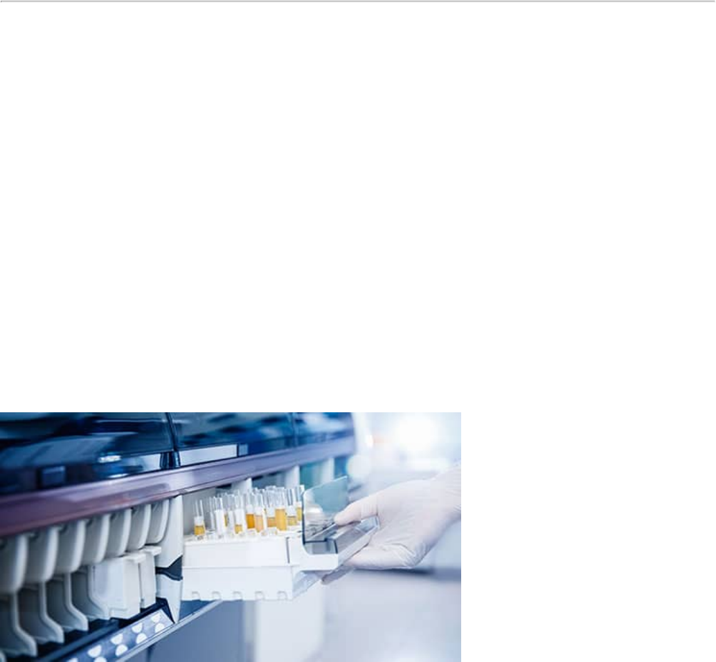 Ao avaliar o gráfico apresentado, podemos ver que a partir do dia 13 todos os pontos estiveram abaixo da média de referência, indicando uma perda de exatidão. A exatidão avalia o quão próximos da média de referência os pontos estão, enquanto a precisão avalia o quão próximo um ponto está do outro, desconsiderando o valor médio de referência. MÓDULO 2 Distinguir os diferentes métodos analíticos utilizados em bioquímica clínica, assim como a função e a aplicabilidade dos métodos analíticos abordados na prática laboratorial INTRODUÇÃO AOS MÉTODOS ANALÍTICOS DE BIOQUÍMICA CLÍNICA Conforme vimos no módulo anterior, os laboratórios de análises clínicas (incluindo o setor de bioquímica clínica) estão cada vez mais automatizados e tecnológicos. Apesar disso, o conhecimento dos princípios básicos dos diferentes métodos empregados continua sendo fundamental, pois em alguns casos será o alicerce para nortear a interpretação dos resultados de forma segura. Foto: Shutterstock.com Automação nos laboratórios de bioquímica. Com base nisso, vamos relembrar algumas questões físicas e químicas, explorar os métodos analíticos e correlacioná-los com os testes mais utilizados dentro do laboratório de bioquímica clínica atualmente. É importante ressaltar que os testes, de maneira geral, podem ser classificados em: Classificação Característica Exemplos Qualitativos Definem se o resultado da amostra é positivo ou negativo. Detecção de glicose na urina. Quantitativos Têm como resultado valores/números. Dosagem de ferro no sangue. Semiquantitativos Quando a intensidade da positividade reflete em uma grandeza. Dosagem de anticorpos com base na titulação. Atenção! Para visualização completa da tabela utilize a rolagem horizontal Dentre as principais técnicas utilizadas nos laboratórios de bioquímica clínica, podemos destacar a espectrofotometria, a colorimetria, a turbidimetria, a nefelometria e a eletroforese. Ao longo do módulo, vamos ver cada uma dessas técnicas e suas aplicações. MÉTODOS FOTOMÉTRICOS Diversas técnicas utilizadas em métodos quantitativos possuem como princípio base a fotometria, que consiste na medição de parâmetros da luz correlacionados à emissão, dispersão, absorção, transmissão e reflexão. Imagem: Shutterstock.com Fenômenos da luz. Para começarmos a entender como funcionam as técnicas, precisamos relembrar alguns conceitos. VOCÊ LEMBRA O QUE SÃO TRANSMITÂNCIA E ABSORBÂNCIA? Escreva aqui sua resposta A luz, ao incidir no objeto, pode percorrer três caminhos diferentes: a absorção, a reflexão e a transmissão. Imagem: Shutterstock.com Resumidamente, temos a seguinte fórmula: Vamos imaginar duas situações: na primeira, há uma luz passando por uma cubeta com uma solução incolor; e na segunda há a mesma luz, de igual intensidade, passando por uma cubeta igual, porém com uma solução azul. Será que a intensidade de luz transmitida detectada será igual à intensidade de luz incidente? Ou será que a intensidade de luz transmitida que foi detectada no caso da solução incolor será a mesma intensidade de luz transmitida detectada com a solução azul? Imagem: Elaborada por Fabiana Vieira de Mello. Comparação da intensidade de luz detectada em soluções com diferentes características. Pelo esquema anterior, podemos observar que a intensidade de luz incidente é maior do que a intensidade de luz transmitida detectada em ambos os casos. Além disso, a intensidade de luz detectada após a cubeta com a solução incolor é maior do que a intensidade de luz detectada após a cubeta com a solução azul. Mas por que isso acontece? Ao longo do caminho óptico, ao passar pela cubeta, há a absorção da radiação luminosa, diminuindo progressivamente a sua intensidade. Logo, a intensidade de luz detectada (I) será menor que a intensidade de luz incidente (Ii). A relação entre essas duas medidas é o que chamamos de Transmitância (T). Atenção! Para visualização completa da equação utilize a rolagem horizontal A transmitância muitas vezes é apresentada em percentual, o que acaba gerando um resultado relativo. Então, para facilitar a comparação dos resultados obtidos, utilizamos a Absorbância (A), que matematicamente é o logaritmo negativo da transmitância: Atenção! Para visualização completa da equação utilize a rolagem horizontal Além disso, podemos afirmar que a diferença encontrada entre as intensidades de luz que incide e a intensidade de luz que é detectada após a cubeta se deve a três principais fatores: T = I Ii A = −log T = − log = log I Ii Ii I Absortividade constante que depende do comprimento de onda; Espessura da solução atravessada pela luz (cubeta); Concentração da solução. Com isso, fica estabelecido que a quantidade de intensidade de luz detectada diminui exponencialmente em algumas situações, como: Ao aumentar a espessura da cubeta com a solução, constituindo o que conhecemos como Lei de Lambert. Ao aumentar a concentração ou intensidade de cor da solução, constituindo o que conhecemos como Lei de Beer. LEI DE LAMBERT Imagem: Elaborada por Fabiana Vieira de Mello. Comparação da intensidade de luz detectada em soluções com diferentes tamanhos de cubeta. LEI DE BEER javascript:void(0) javascript:void(0) Imagem: Elaborada por Fabiana Vieira de Mello. Comparação da intensidade de luz detectada em soluções com diferentes concentrações/intensidade de cor. Normalmente, o comprimento de onda é constante, a espessura da cubeta com a solução também é considerada constante se utilizarmos a mesma cubeta (o que normalmente acontece nos laboratórios de bioquímica clínica). Logo, o que muda de uma situação para a outra é a concentração da solução, que justamente é o alvo dos nossos testes laboratoriais. Com isso, a Lei de Lambert-Beer estabelece que a concentração da substância em solução é diretamente propor