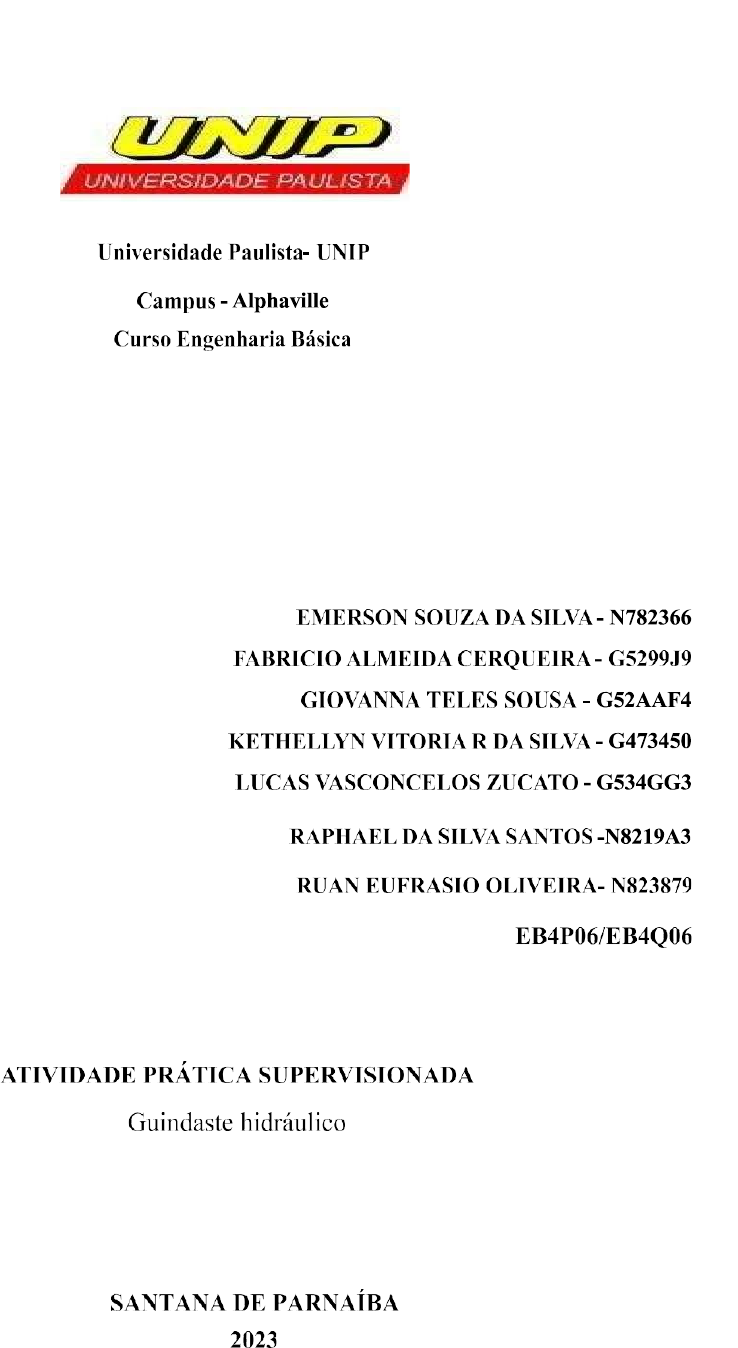 1 2 3 4 1.0– OBJETIVOS DO TRABALHO ........................................................................... 5 2.0– DESENVOLVIMENTO TEÓRICO ................................................................... 5 2.1– INTRODUÇÃO A HISTÓRIA DA HIDRÁULICA............................................ 5 2.2 - PRINCÍPIO DE PASCAL ......................................................................... 6 3.0 – INSUMOS UTILIZADOS PARA O DESENVOLVIMENTO DO PROTÓTIPO...................................................................................................................8 4.0 – DESENVOLVIMENTO MATEMÁTICO DO SISTEMA........................................................................................................................9 4.1 - CÁLCULO DA QUANTIDADE DE VOLTAS.................................................9 4.2 – CÁLCULO DO COMPRIMENTO DO CONDUTOR ...................................9 4.3 – CÁLCULO DA FORÇA PESO DO CORPO DE PROVA ............................9 4.4 – DADOS UTILIZADOS PARA ELABORAÇÃO DOS CÁLCULOS...............................................................................................................10 5.0 – DESENHO TÉCNICO DA ESTRUTURA DO GUINDASTE......................10 6.0 – PLANILHA DE CUSTOS DO PROJETO.......................................................12 7.0 – ETAPAS DE ELABORA DO PROTÓTIPO E TESTES PRELIMINARES.........................................................................................................12 CONCLUSÃO ................................................................................................15 REFERÊNCIAS BIBLIOGRÁFICAS ................................................................16 5 6 2.2 - PRINCÍPIO DE PASCAL 7 8 3.0 - INSUMOS UTILIZADOS PARA O DESENVOLVIMENTO DO PROTÓTIPO 9 10 11 12 13 14 15 16