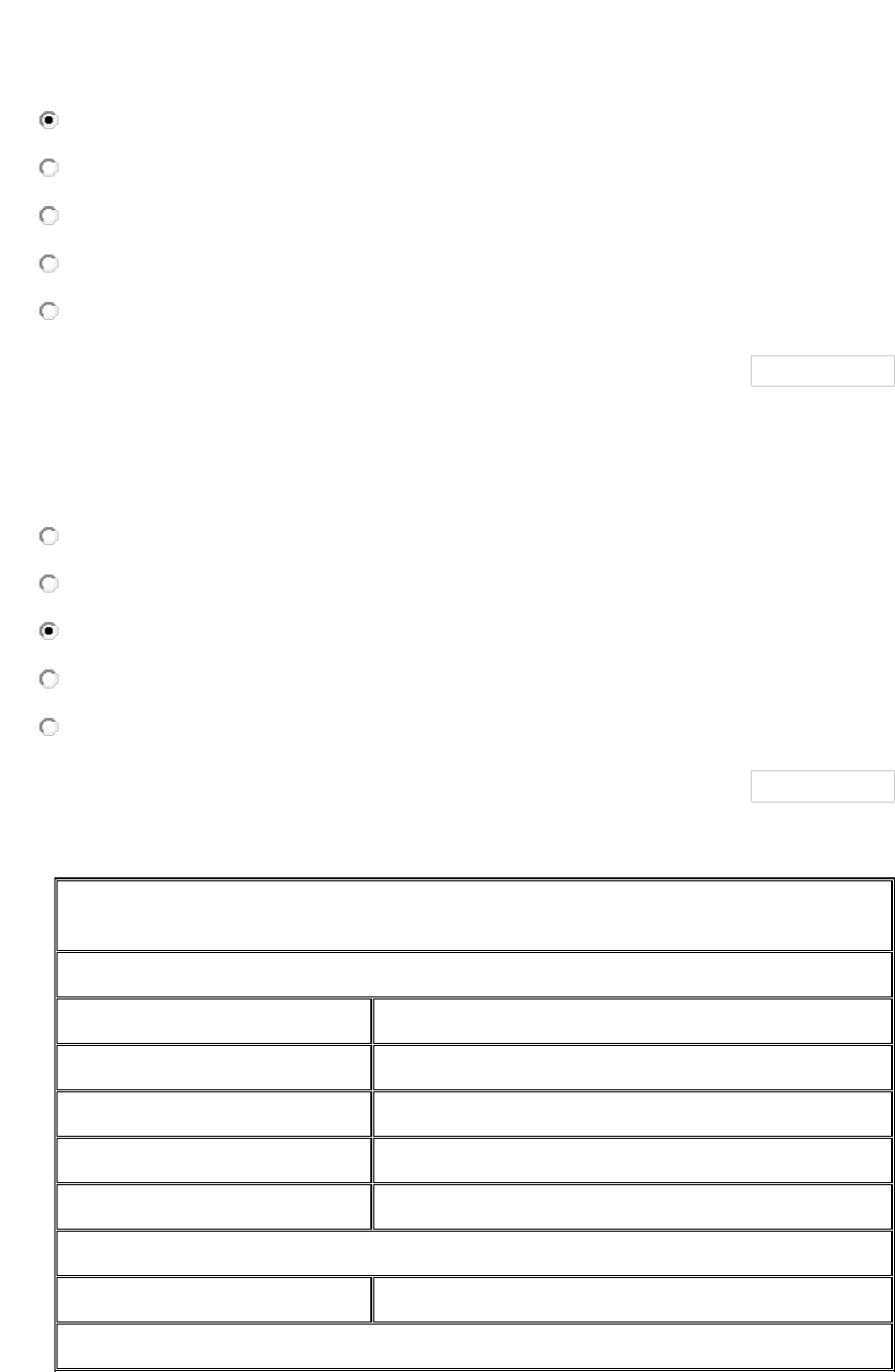 PERGUNTA 1 1. Um empréstimo de R$ 200.000,00 (PV) será saldado em 8 (n) prestações semestrais pelo Sistema de Amortização Constante (SAC), tendo sido contratada a taxa de juro de 10% (i) ao semestre. Qual o valor total do empréstimo a ser pago pelo cliente? a. R$ 290.000,00 b. R$ 299.910,43 c. R$ 209.104,47 d. R$ 200.000,00 e. R$ 315.000,00 0,17 pontos PERGUNTA 2 1. Um banco empresta o valor de R$ 25.000,00 (PV), com a taxa de 12% (i = taxa proporcional) ao ano, para ser pago em 5 (n) pagamentos mensais, sem prazo de carência, calculado pelo Sistema Price de Amortização ou Tabela Price. Qual o valor da prestação (PMT?) a ser paga pelo cliente mensalmente? a. PMT = R$ 8.000,00 b. PMT = R$ 6.935,24 c. PMT = R$ 5.150,99 d. PMT = R$ 4.000,00 e. PMT = R$ 5.000,00 0,17 pontos PERGUNTA 3 1. Assinale a alternativa, com os valores que completam a tabela abaixo. Os valores são calculados pelo Sistema de Amortização Constante (SAC): FINANCIAMENTO DE UM BEM PELO SISTEMA DE AMORTIZAÇÃO CONSTANTE (SAC) Preço do bem 6.8000,00 Entrada 800,00 Valor financiado 6.000,00 (PV) Taxa mensal 2,8% ao mês (i) Número de prestações 10 meses (n) Valor da 1ª Amortização ? Valor do 1ª Juro ? Valor da 1ª Prestação ? a. R$ 500,00 , R$ 168,00 e R$ 668,00 b. R$ 750,00 , R$ 168,00 e R$ 918,00 c. R$ 400,00 , R$ 168,00 e R$ 568,00 d. R$ 600,00 , R$ 168,00 e R$ 768,00 e. R$ 1.000,00 , R$ 168,00 e R$ 1.168,00 0,17 pontos PERGUNTA 4 1. Um banco empresta o valor de R$ 25.000,00 (PV), com a taxa de 12% (i) ao mês, para ser pago em 5 (n) pagamentos mensais, sem prazo de carência, calculado pelo Sistema de Amortização Constante (SAC). Qual o valor da primeira prestação (PMT?) a ser paga pelo cliente? a. PMT = R$ 3.000,00 b. PMT = R$ 5.150,99 c. PMT = R$ 8.000,00 d. PMT = R$ 6.935,24 e. PMT = R$ 5.000,00