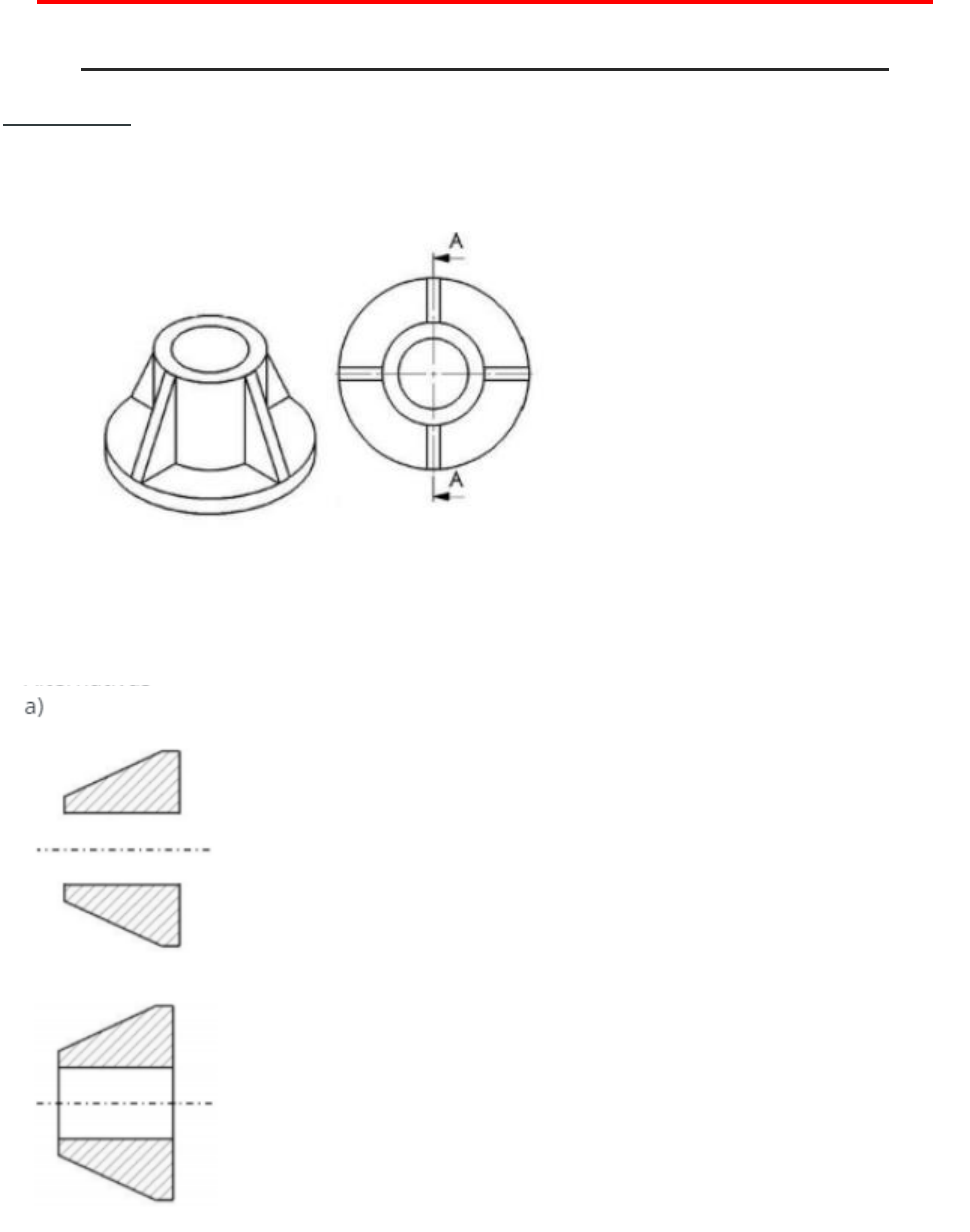 CURTE e SALVA! OBRIGADO. QUESTIONÁRIO ENADE – DESENHO TÉCNICO – UNIFAVENI QUESTÃO 04 Considere as imagens abaixo que contêm a vista isométrica de uma peça mecânica e suas nervuras (à esquerda) e a vista superior da mesma peça (à direita). Assinale a alternativa que mostra a correta vista do Corte AA. Alternativas: b) c) d) e) a) A b) B c) ➔ C d) D e) E