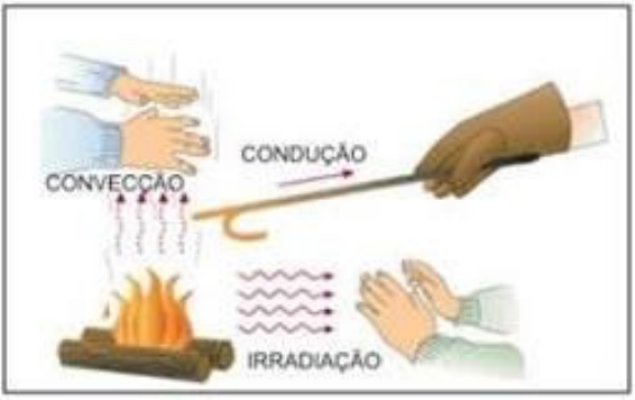 CONDUÇÃO X IRRADIAÇÃO A condução, consiste na perda de calor quando o corpo está em contato com uma superfície mais fria, como por exemplo, um piso frio. Já a irradiação consiste na transferência de calor por emissão de radiação infravermelha e sua absorção por objetos mais frios. A irradiação é a propagação de ondas eletromagnéticas que não precisam de meio para se propagar, enquanto que a condução e a convecção são processos de transferência que necessitam de um meio material para se propagar. Condução Quando dois corpos com temperaturas diferentes são colocados em contato, as moléculas do corpo mais quente, colidindo com as moléculas do corpo mais frio, transferem energia para este. Esse processo de condução de calor é denominado condução. Irradiação Podemos dizer que a irradiação térmica é o processo mais importante, pois sem ela seria praticamente impossível haver vida na Terra. É por irradiação que o calor liberado pelo Sol chega até a Terra. Outro fator importante é que todos os corpos emitem radiação, ou seja, emitem ondas eletromagnéticas, cujas características e intensidade dependem do material de que é feito o corpo e de sua temperatura. Portanto, o processo de emissão de ondas eletromagnéticas é chamado de irradiação.