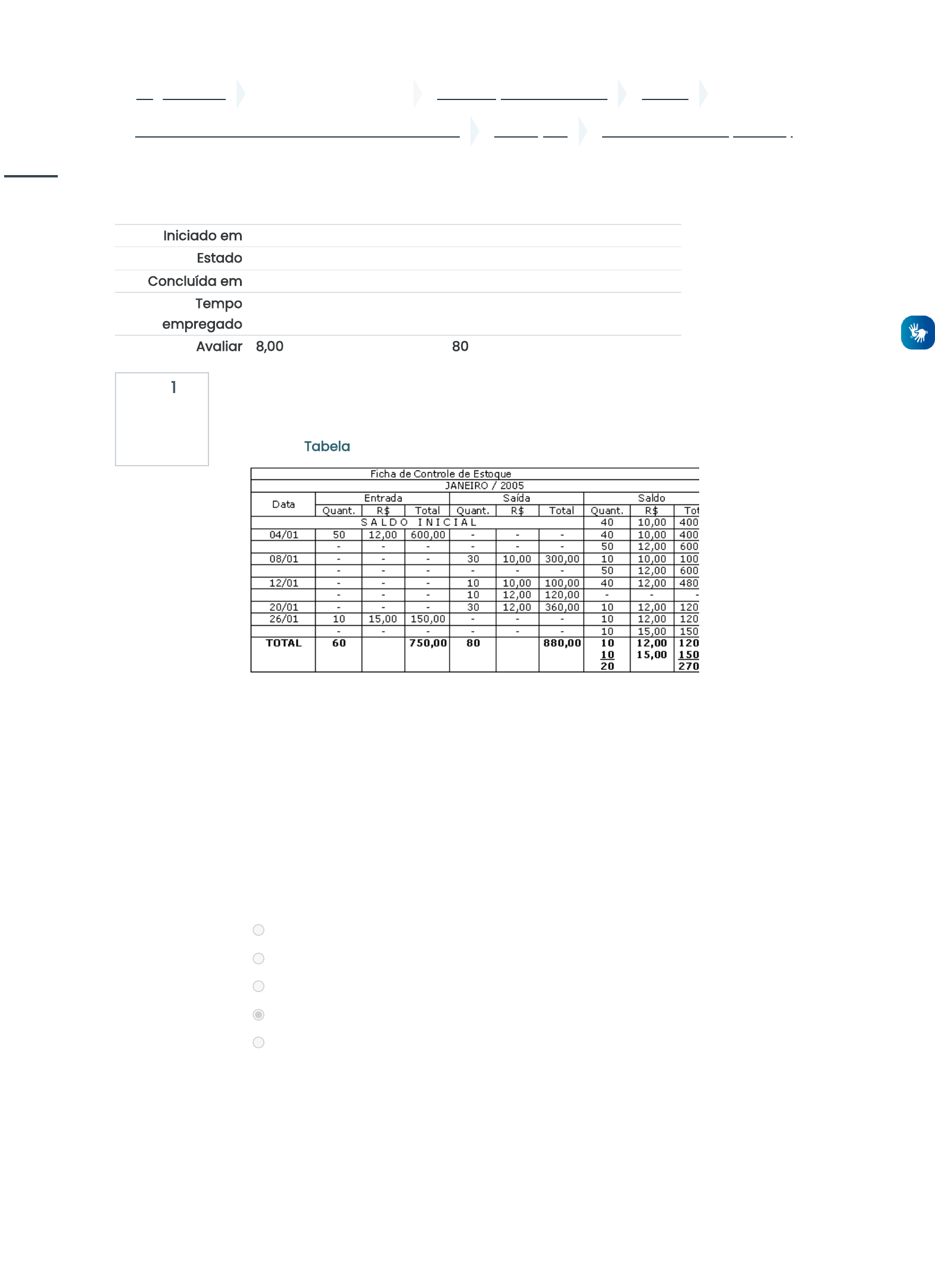07/12/2022 17:02 P2 - Prova On-line (Acessar) https://ava.candidomendes.edu.br/moodle/mod/quiz/review.php?attempt=261814&cmid=333735 1/8 ... Página inicial Disciplinas e Espaços GRADUAÇÃO A DISTÂNCIA 2022-3 Gestão de Recursos Materiais - 2022_03_EAD_A Avaliações P2 - Prova On-line (Acessar) Questão 1 Correto Atingiu 1,00 de 1,00 Iniciado em sábado, 1 out 2022, 09:56 Estado Finalizada Concluída em sábado, 1 out 2022, 11:26 Tempo empregado 1 hora 30 minutos Avaliar 8,00 de um máximo de 10,00(80%) Uma empresa decidiu fazer um método de avaliação de estoques de um produto “Z” de acordo com a Tabela abaixo: Tabela – Controle de estoque do produto “Z”. As vendas foram realizadas de maneira a dar saída às primeiras unidades compradas, desse modo, os materiais que entraram primeiro foram os primeiros a serem despachados para a realização das vendas. Qual foi o método utilizado pela empresa para avaliar os estoques do produto “Z”? Escolha uma opção: a. Inventário periódico. b. Custo médio ponderado fixo. c. UEPS. d. PEPS. e. Custo médio ponderado móvel. Sua resposta está correta. PEPS, pois foi dada ênfase à ordem cronológica das entradas dos materiais no estoque. A resposta correta é: PEPS. https://ava.candidomendes.edu.br/moodle/ https://ava.candidomendes.edu.br/moodle/course/index.php?categoryid=8 https://ava.candidomendes.edu.br/moodle/course/index.php?categoryid=122 https://ava.candidomendes.edu.br/moodle/course/view.php?id=10352 https://ava.candidomendes.edu.br/moodle/course/view.php?id=10352§ion=4 https://ava.candidomendes.edu.br/moodle/mod/quiz/view.php?id=333735 javascript:void(0); https://ava.candidomendes.edu.br/moodle/user/index.php?id=10352 https://ava.candidomendes.edu.br/moodle/course/view.php?id=10352&stopjsnav=1 https://ava.candidomendes.edu.br/moodle/course/view.php?id=10352&datapref=1 https://ava.candidomendes.edu.br/moodle/ https://ava.candidomendes.edu.br/moodle/my/ https://ava.candidomendes.edu.br/moodle/course/view.php?id=403 https://ava.candidomendes.edu.br/moodle/course/view.php?id=10292 https://ava.candidomendes.edu.br/moodle/course/view.php?id=10293 https://ava.candidomendes.edu.br/moodle/course/view.php?id=10294 https://ava.candidomendes.edu.br/moodle/course/view.php?id=10289 https://ava.candidomendes.edu.br/moodle/course/view.php?id=10366 https://ava.candidomendes.edu.br/moodle/course/view.php?id=10962 https://ava.candidomendes.edu.br/moodle/course/view.php?id=892 javascript:void(0); 07/12/2022 17:02 P2 - Prova On-line (Acessar) https://ava.candidomendes.edu.br/moodle/mod/quiz/review.php?attempt=261814&cmid=333735 2/8 Questão 2 Correto Atingiu 1,00 de 1,00 Questão 3 Correto Atingiu 1,00 de 1,00 Leia o seguinte fragmento de texto: “É uma quantidade mínima de peças que tem que existir no estoque com a função de cobrir as possíveis variações do sistema, que podem ser: eventuais atrasos no tempo de fornecimento (TR) por nosso fornecedor, rejeição do lote de compra ou aumento na demanda do produto”. O texto faz referência ao: Escolha uma opção: a. Ponto do pedido. b. Estoque de reposição. c. Estoque mínimo. d. Lote econômico de compras. e. Custo dos estoques. Sua resposta está correta. Faz referência ao estoque de segurança ou estoque mínimo ou estoque reserva. A resposta correta é: Estoque mínimo. Leia o seguinte fragmento de texto: “Existe um método de avaliação de estoques que não é adequado para algumas segmentações, como, por exemplo, empresas atuantes no ramo de alimentação e demais bens perecíveis. O processo utiliza como critério de venda a saída dos itens que chegaram por último, o que poderá fazer com que, quando os primeiros produtos forem vendidos, eles já estejam com a validade ultrapassada”. Qual método o texto se refere? Escolha uma opção: a. Inventário periódico. b. Custo médio ponderado móvel. c. PEPS. d. UEPS. e. Custo médio ponderado fixo. Sua resposta está correta. Critério UEPS – Último que Entra, Primeiro que Sai. A resposta correta é: UEPS. javascript:void(0); https://ava.candidomendes.edu.br/moodle/user/index.php?id=10352 https://ava.candidomendes.edu.br/moodle/course/view.php?id=10352&stopjsnav=1 https://ava.candidomendes.edu.br/moodle/course/view.php?id=10352&datapref=1 https://ava.candidomendes.edu.br/moodle/ https://ava.candidomendes.edu.br/moodle/my/ https://ava.candidomendes.edu.br/moodle/course/view.php?id=403 https://ava.candidomendes.edu.br/moodle/course/view.php?id=10292 https://ava.candidomendes.edu.br/moodle/course/view.php?id=10293 https://ava.candidomendes.edu.br/moodle/course/view.php?id=10294 https://ava.candidomendes.edu.br/moodle/course/view.php?id=10289 https://ava.candidomendes.edu.br/moodle/course/view.php?id=10366 https://ava.candidomendes.edu.br/moodle/course/view.php?id=10962 https://ava.candidomendes.edu.br/moodle/course/view.php?id=892 javascript:void(0); 07/12/2022 17:02 P2 - Prova On-line (Acessar) https://ava.candidomendes.edu.br/moodle/mod/quiz/review.php?attempt=261814&cmid=333735 3/8 Questão 4 Correto Atingiu 1,00 de 1,00 A empresa Pelúcia Ltda. é fabricante de brinquedos. No atual cenário de crise, devido à pandemia do Covid-19 (coronavíruas), a Pelúcia Ltda. possui muitos materiais que estão em processo produtivo, mas que ainda não se transformaram em um produto finalizado. Pode-se afirmar que a empresa contém bastante estoque de: Escolha uma opção: a. matérias-primas. b. produto acabado. c. materiais de transformação. d. produto em processo. e. segurança. Sua resposta está correta. O estoque de produtos em processo é composto por todas as matérias-primas que já estraram ou, ainda, que estão em processo produtivo, mas que ainda não se transformaram em um produto finalizado. Já o estoque de bens acabados compreende todos os produtos que estão prontos para serem comercializados. Portanto, eles já podem ser retirados da fábrica ou do depósito da organização e ser remetidos aos clien