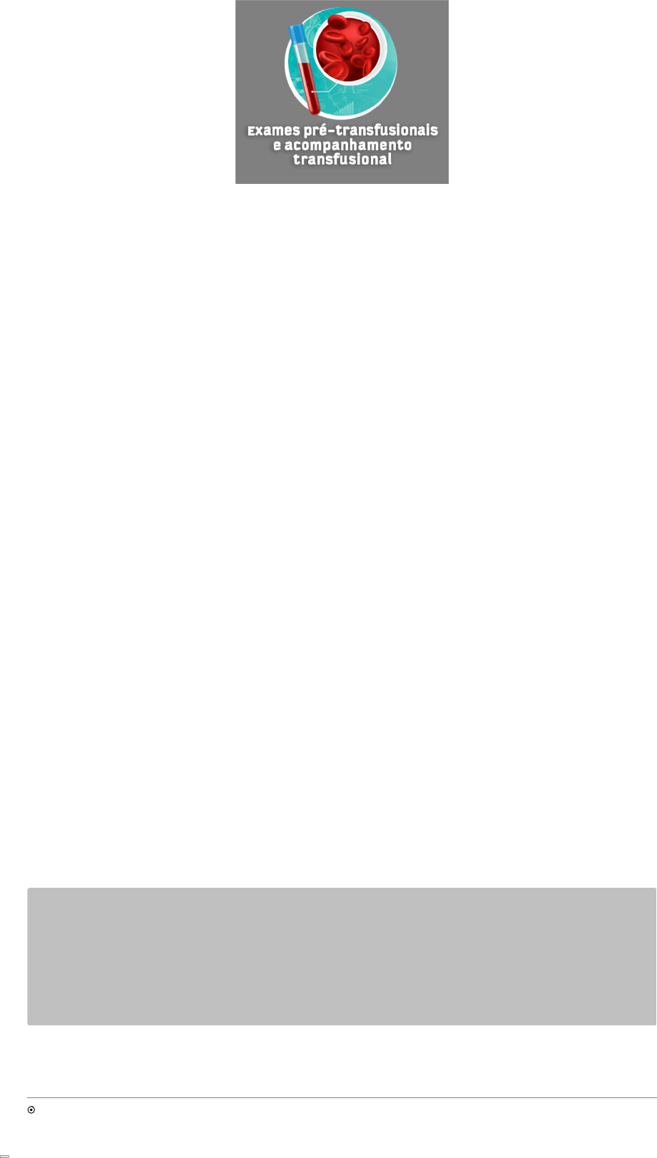 DESCRIÇÃO Exames pré-transfusionais no doador e receptor do sangue e transfusão sanguínea. PROPÓSITO Compreender os testes pré-transfusionais no doador e receptor, as principais reações adversas à transfusão, o manejo em casos de reação e o sistema de hemovigilância é importante para garantir a segurança transfusional. OBJETIVOS MÓDULO 1 Descrever os exames realizados nos doadores de sangue MÓDULO 2 Reconhecer os testes pré-transfusionais e as indicações de transfusão dos hemocomponentes MÓDULO 3 Descrever a instalação e administração dos hemocomponentes, o acompanhamento transfusional e as reações transfusionais INTRODUÇÃO Você sabia que os testes transfusionais variam de acordo com o tipo de hemocomponente utilizado? Você sabe o que é anticorpo irregular? Você sabia que em casos de extrema urgência, quando não temos nem tempo de confirmar a classificação sanguínea do receptor, utilizamos concentrados de hemácia O negativo, mas o plasma utilizado é o AB, e que nesse caso tanto faz o Rh? Você imagina por quê? Ao longo deste conteúdo, vamos entender quais são os exames realizados no doador, para garantir que esteja apto à doação, qual a indicação de cada hemocomponente, os exames realizados no receptor e quais os componentes utilizados, sempre pensando na segurança do paciente. Além disso, aprenderemos que o ato transfusional pode gerar benefícios ao paciente, revertendo de forma rápida a não produção ou perda de componentes sanguíneos, mas também pode trazer malefícios, como as reações transfusionais que, em alguns casos, podem ser fatais, como, por exemplo, a doença do enxerto versus hospedeiro transfusional. AVISO: orientações sobre unidades de medida. AVISO Em nosso material, unidades de medida e números são escritos juntos (ex.: 25km) por questões de tecnologia e didáticas. No entanto, o Inmetro estabelece que deve existir um espaço entre o número e a unidade (ex.: 25 km). Logo, os relatórios técnicos e demais materiais escritos por você devem seguir o padrão internacional de separação dos números e das unidades. MÓDULO 1 Descrever os exames realizados nos doadores de sangue INTRODUÇÃO AOS EXAMES PRÉ-TRANSFUSIONAIS DO DOADOR No ciclo do sangue, após o recrutamento, a triagem e a doação de sangue, as bolsas de aférese são armazenadas de acordo com as condições preconizadas e as bolsas de sangue total são encaminhadas para o processamento e a separação dos hemocomponentes (concentrado de hemácias, concentrado de plaquetas e plasma fresco congelado, por exemplo). Em ambos os casos, os tubos coletados desses doadores são encaminhados para exames de classificação sanguínea, triagem sorológica (HIV, hepatite B, hepatite C, sífilis, doença de Chagas e HTLV), pesquisa de anticorpos irregulares, fenotipagem (opcional) e pesquisa de hemoglobinopatias. Apenas após a realização desses exames é que os hemocomponentes estão liberados para sua utilização. No entanto, eles ainda não estão liberados para a administração, pois antes da transfusão propriamente dita, devemos realizar alguns testes nos pacientes, que chamaremos de receptores. COMENTÁRIO Todos os processos e as etapas encontrados no ciclo do sangue estão contemplados na Portaria de Consolidação n° 5, de 28 de setembro de 2017, que junto com a RDC n° 34 de 2014 servem de base à execução das atividades técnicas e sanitárias em qualquer serviço de hemoterapia. Na rotina dos exames realizados nas amostras dos doadores, a classificação sanguínea é a primeira a ser abordada, pelo fato de o sistema ABO e RhD serem os mais importantes no contexto transfusional. Entretanto, inicialmente abordaremos as principais metodologias em imuno-hematologia. TESTES IMUNO-HEMATOLÓGICOS Existem várias metodologias para a realização dos testes de imuno-hematologia (testes de hemoaglutinação), que consistem na interação antígeno e anticorpo e aglutinação desses complexos, que podem ser detectados a olho nu, com a formação de botões de hemácias. De forma bem resumida, abordaremos os três principais métodos mais empregados. METODOLOGIA DE MICROPLACA A microplaca consiste em uma placa plana com múltiplos “poços” usados cada um como um pequeno tubo de ensaio. Esses vasos possuem fundo em “U”, “V” ou confeccionados no formato plano. As microplacas são fabricadas normalmente em poliestireno incolor e possuem 96 poços. Podem ser reaproveitadas se devidamente limpas e secas. São ótimas para grandes rotinas de doadores, pois muitas amostras podem ter seus testes executados de maneira mais ágil e barata, com pouco volume e ainda podem ser automatizadas; assim como os reagentes de tubos (antissoros e hemácias-testes) podem ser utilizados nelas de acordo com a validação da instituição. Foto: Shutterstock.com Classificação sanguínea pela técnica da microplaca. METODOLOGIA DE TUBO É considerada o padrão ouro na imuno-hematologia laboratorial, pois é simples de ser executada, extremamente barata e tem uma infinidade de fabricantes. A desvantagem desta metodologia é que não é passível de automação completa. São utilizados tubos de vidro ou plástico, medindo 10mm ou 12mm x 75mm, onde são dispensados reagentes (antissoros e hemácias-teste) e amostras. Após a centrifugação, procede-se a análise da aglutinação. Foto: Shutterstock.com Classificação sanguínea pela técnica do tubo. Essa é uma reação semiquantitativa, em que a intensidade de reação, ou seja, a ligação antígeno e anticorpo é qualificada como presente ou ausente, e pode ser mensurada por cruzes que vão de 4+ até 1+. Na figura a seguir, conseguimos visualizar melhor como é mensurada a interação por meio das cruzes. Imagem: Jaye Parsley\Ministério da Saúde\CC BY 4.0. Quantificação da reação é feita em cruzes em que 4+ representa a maior reação. Esses tubos de hemólise podem ser reaproveitados na maioria das