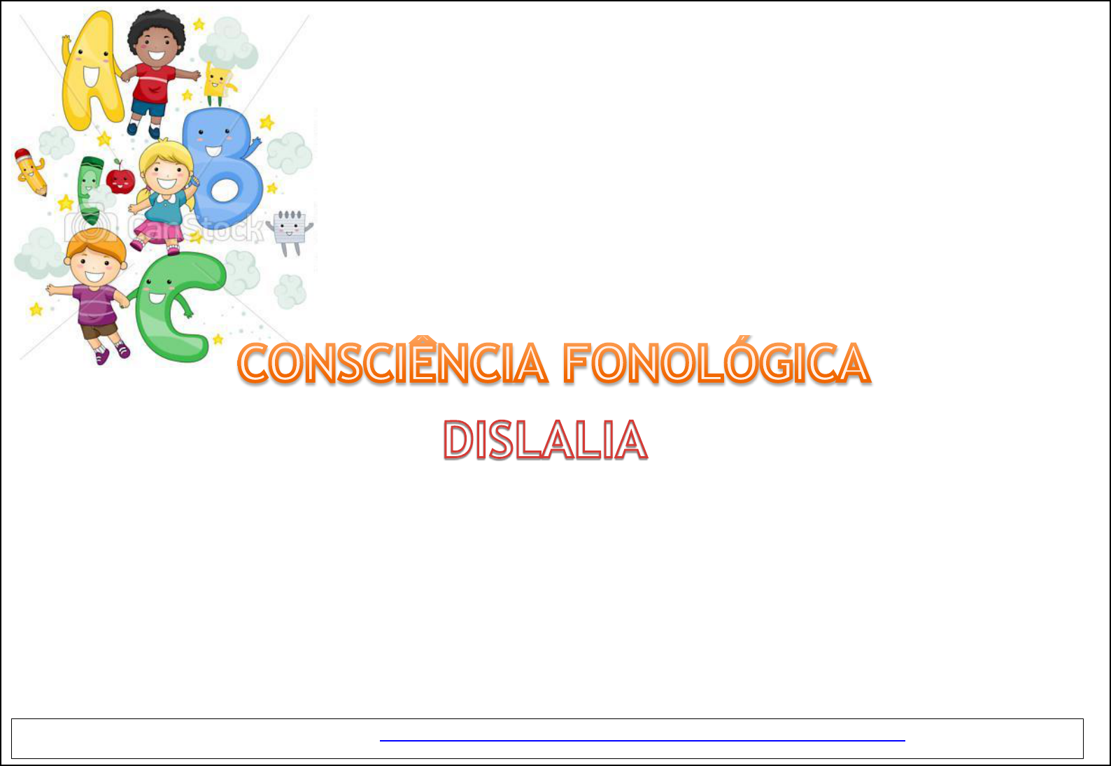 ESCOLA ESTADUAL GOV. IVANHOE GONÇÃLVES MARTINS ATENDIMENTO EDUCACIONAL ESPECIALIZADO - AEE FAZENDINHA – MACAPÁ- AP 2017 Material adaptado por Marlon Santos. Retirado do site http://psicopedagogialudica.blogspot.com.br/p/consciencia-fonologica.html?m=1. Acesso em 07/11/2017 Escola Estadual Gov Ivanhoe Gonçalves Martins Professor: Marlon Santos Aluno:___________________________________ Idade: _______________ Série: ______________ Professores e profissionais na área de alfabetização já devem estar cientes da importância e do enfoque atual voltado à Consciência Fonológica principalmente para o processo inicial de leitura e de escrita de alunos com deficiência ou distúrbios – principalmente na linguagem (Dislalia). Este material mostra ser uma proposta ou alternativa de trabalho para alunos com dificuldades na leitura escrita e oralidade, pois visa auxiliar as crianças que demandam de mais tempo para compreensão e significado dos processos simbólicos e seus signos. Assim, este material sucinto, esclarecedor e prático que pode auxiliar muito sobre o tema CONSCIÊNCIA FONOLÓGICA. Bom proveito e sucesso! Material adaptado por Marlon Santos. Retirado do site http://psicopedagogialudica.blogspot.com.br/p/consciencia-fonologica.html?m=1. Acesso em 07/11/2017 Material adaptado por Marlon Santos. Retirado do site http://psicopedagogialudica.blogspot.com.br/p/consciencia-fonologica.html?m=1. Acesso em 07/11/2017 Material adaptado por Marlon Santos. Retirado do site http://psicopedagogialudica.blogspot.com.br/p/consciencia-fonologica.html?m=1. Acesso em 07/11/2017 Material adaptado por Marlon Santos. Retirado do site http://psicopedagogialudica.blogspot.com.br/p/consciencia-fonologica.html?m=1. Acesso em 07/11/2017 Material adaptado por Marlon Santos. Retirado do site http://psicopedagogialudica.blogspot.com.br/p/consciencia-fonologica.html?m=1. Acesso em 07/11/2017 Material adaptado por Marlon Santos. Retirado do site http://psicopedagogialudica.blogspot.com.br/p/consciencia-fonologica.html?m=1. Acesso em 07/11/2017 Material adaptado por Marlon Santos. Retirado do site http://psicopedagogialudica.blogspot.com.br/p/consciencia-fonologica.html?m=1. Acesso em 07/11/2017 Material adaptado por Marlon Santos. Retirado do site http://psicopedagogialudica.blogspot.com.br/p/consciencia-fonologica.html?m=1. Acesso em 07/11/2017 Material adaptado por Marlon Santos. Retirado do site http://psicopedagogialudica.blogspot.com.br/p/consciencia-fonologica.html?m=1. Acesso em 07/11/2017 Material adaptado por Marlon Santos. Retirado do site http://psicopedagogialudica.blogspot.com.br/p/consciencia-fonologica.html?m=1. Acesso em 07/11/2017 Material adaptado por Marlon Santos. Retirado do site http://psicopedagogialudica.blogspot.com.br/p/consciencia-fonologica.html?m=1. Acesso em 07/11/2017 Material adaptado por Marlon Santos. Retirado do site http://psicopedagogialudica.blogspot.com.br/p/consciencia-fonologica.html?m=1. Acesso em 07/11/2017 Material adaptado por Marlon Santos. Retirado do site http://psicopedagogialudica.blogspot.com.br/p/consciencia-fonologica.html?m=1. Acesso em 07/11/2017 Material adaptado por Marlon Santos. Retirado do site http://psicopedagogialudica.blogspot.com.br/p/consciencia-fonologica.html?m=1. Acesso em 07/11/2017