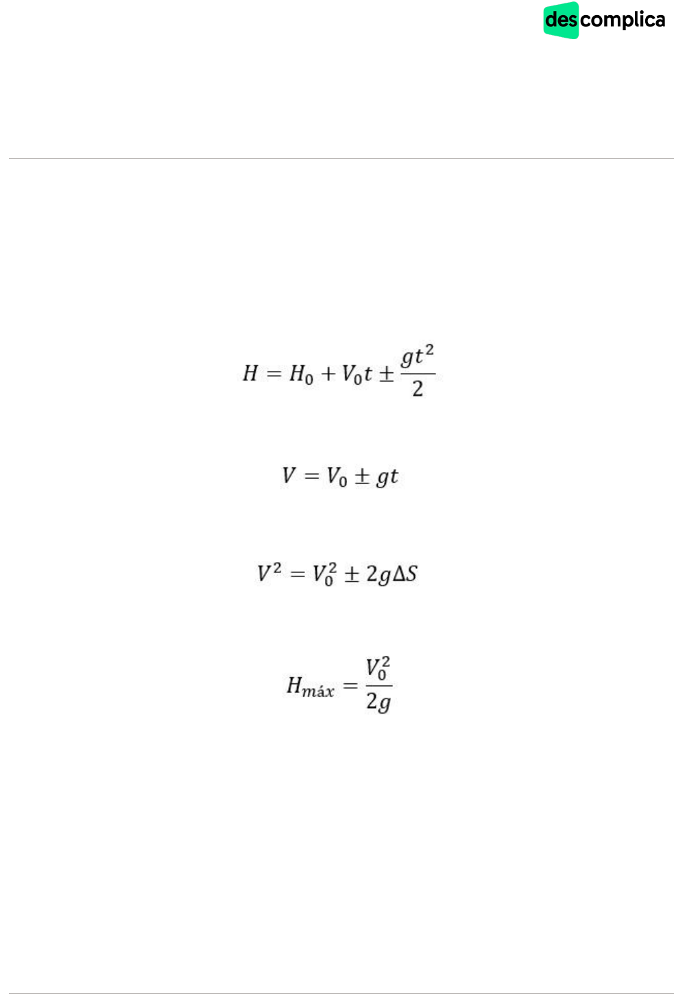 1 Física Lançamento vertical e queda livre Resumo Lançamento Vertical: movimento realizado na vertical com velocidade inicial diferente de zero. Pode ser lançamento para cima ou para baixo. Queda Livre: movimento realizado na vertical com velocidade inicial sempre igual a zero. Apenas movimentos para baixo (queda). Como trata-se de um MUV, as equações que regem tal movimento são: Equação da posição: Equação da velocidade: Torricelli: Altura máxima: Algumas coisas mudaram em relação ao MUV: H é a altura que o corpo está, g é a aceleração da gravidade e o ± indica se a gravidade está a favor ou contra o movimento. Lembre-se de sempre adotar um referencial antes de começar a resolver as questões. É interessante usar tudo que está para cima positivo e tudo que está para baixo negativo. A altura máxima é atingida quando o corpo não consegue mais subir. Nessa situação, a velocidade do corpo é igual a zero. A gravidade tem o va lor aproximado g=9,81m/ s ², mas para a lgumas ques tões é pos s ível utilizar g=10m/ s ² (a própria ques tão va i informar is s o). 2 Física Gráficos Lançamento Vertical para cima (g contra o movimento) Lançamento Vertical para baixo (g a favor do movimento) Queda Livre (g a favor do movimento) 3 Física Exercícios 1. Um corpo ca i em queda livre de uma a ltura de 45 metros em um ambiente onde a gravidade pode s er cons iderada 10m/ s ² . Des preando a res is tência do a r, ca lcule: a) O tempo de queda; b) A velocidade do corpo no ins tante em que ele toca no s olo; c) A dis tância percorrida ao longo do s º s egundo. 2. Um corpo abandonado em queda livre no mes mo ins tante em que outro é lançado para cima com velocidade de 20m/ s . Cons iderando que os dois corpos es tejam na mes ma vertica l, que a dis tância entre eles no início do experimento s eja de 20m e que g=10m/ s ² , determine o ins tante em que ocorrerá o encontro dos dois corpos . 3. De um ponto loca lizado a uma a ltura h do s olo, lança - s e uma pedra vertica lmente para cima num loca l onde g=10m/ s ² . A figura a s eguir repres enta , em gráfico ca rtes iano, como a velocidade es ca la r da pedra varia , em função do tempo, entre o ins tante do lançamento (t = 0) e o ins tante em que chegta ao s olo (t = 3s ). a) Em que ins tante a pedra retoma ao ponto de partida? J us tifique s ua res pos ta . b) Calcule de que a ltura h, em relação ao s olo, a pedra foi lançada . 4. Um objeto é lançado vertica lmente para cima e retorna ao ponto de partida em 2,0s . Des prezando- s e a res is tência do a r e cons iderando g = 10 m/ s ² , a a ltura a tingida pelo objeto é, em metros : a) 2,5. b) 5,0. c) 10. d) 20. e) 40. 4 Física 5. Para ca lcular a a ltura de uma ponte s obre o leito de um rio, um garoto abandonou uma pedra da ponte, a partir do repous o, e mediu o tempo trans corrido a té que ela a tingis s e a s uperfície da água . Cons iderando a aceleração da gravidade igua l a 10m/ s ² e s abendo que o tempo de queda da pedra foi de 2,2 s egundos , pode- s e a firmar que a a ltura da ponte, em metros , é um va lor mais próximo de: a) 16. b) 20. c) 22. d) 24. e) 48. 6. Atira- s e em um poço uma pedra vertica lmente para ba ixo, com uma velocidade inicia l V0=10m/ s . Sendo a aceleração loca l da gravidade igua l a 10 m/ s ² e s abendo- s e que a pedra gas ta 2s para chegar ao fundo do poço, podemos concluir que a profundidade des te é, em metros : a) 30. b) 40. c) 50. d) 20. e) Nenhuma das res pos tas anteriores . 5 Física 7. Para medir o tempo de reação de uma pes s oa , pode- s e rea lizar a s eguinte experiência : I. Mantenha uma régua (com cerca de 30 cm) sus pens a vertica lmente, s egurando-a pela extremidade s uperior, de modo que o zero da régua es teja s ituado na extremidade inferior. II. A pes s oa deve colocar os dedos de s ua mão, em forma de pinça , próximos do zero da régua , s em tocá- la . III. Sem avis o prévio, a pes s oa que es tiver s egurando a régua deve s oltá - la . A outra pes s oa deve procurar s egurá- la o mais rapidamente pos s ível e obs ervar a pos ição onde cons eguiu s egurar a régua , is to é, a dis tância que ela percorre durante a queda . O quadro s eguinte mos tra a pos ição em que três pes s oas cons eguiram s egurar a régua e os res pectivos tempos de reação A dis tância percorrida pela régua aumenta mais rapidamente que o tempo de reação porque a a) energia mecânica da régua aumenta , o que a faz ca ir mais rápido. b) res is tência do a r aumenta , o que faz a régua ca ir com menor velocidade. c) aceleração de queda da régua varia , o que provoca um movimento acelerado. d) força pes o da régua tem va lor cons tante, o que gera um movimento acelerado. e) velocidade da régua é cons tante, o que provoca uma pas s agem linear de tempo. 6 Física 8. Do terraço de um edifício, você s olta , s uces s ivamente, com velocidade inicia l nula , três bolinhas de aço, a 0,50s de interva lo. No ins tante em que você s olta a terceira , as duas primeiras s e encontram nas pos ições s indicadas na opção: a) c) e) b) d) 9. Um corpo é lançado de ba ixo para cima com velocidade inicia l de 100m/ s . Qual a a ltura em que ele para e o tempo que demora depois para ca ir? Dado g=10m/ s ² . a) 1000m; 100s b) 750m; 50s c) 500m; 25s d) 500m; 10s e) 350m; 5s 10. De um helicóptero que des ce vertica lmente é abandonada uma pedra , quando o mes mo s e encontra a 100m do s olo. Sabendo que a pedra leva 4 s egundos para a tingir o s olo e s upondo g=10m/ s ² , a velocidade de des cida do helicóptero, no momento em que a pedra é abandonada , tem va lor: a) 25m/ s b) 20m/ s c) 15m/ s d) 10m/ s e) 5m/ s 7 Física 11. Um jogador de bas quetebol cons egue dar um grande impuls o ao s a lta r e s eus pés a tingem a a ltura de 1,25 m. A aceleração da gravidade no loca l tem o va lor de g = 10 m/ s 2. O tempo que o jogador fica no a r, aproximadamente, é: a) 1 