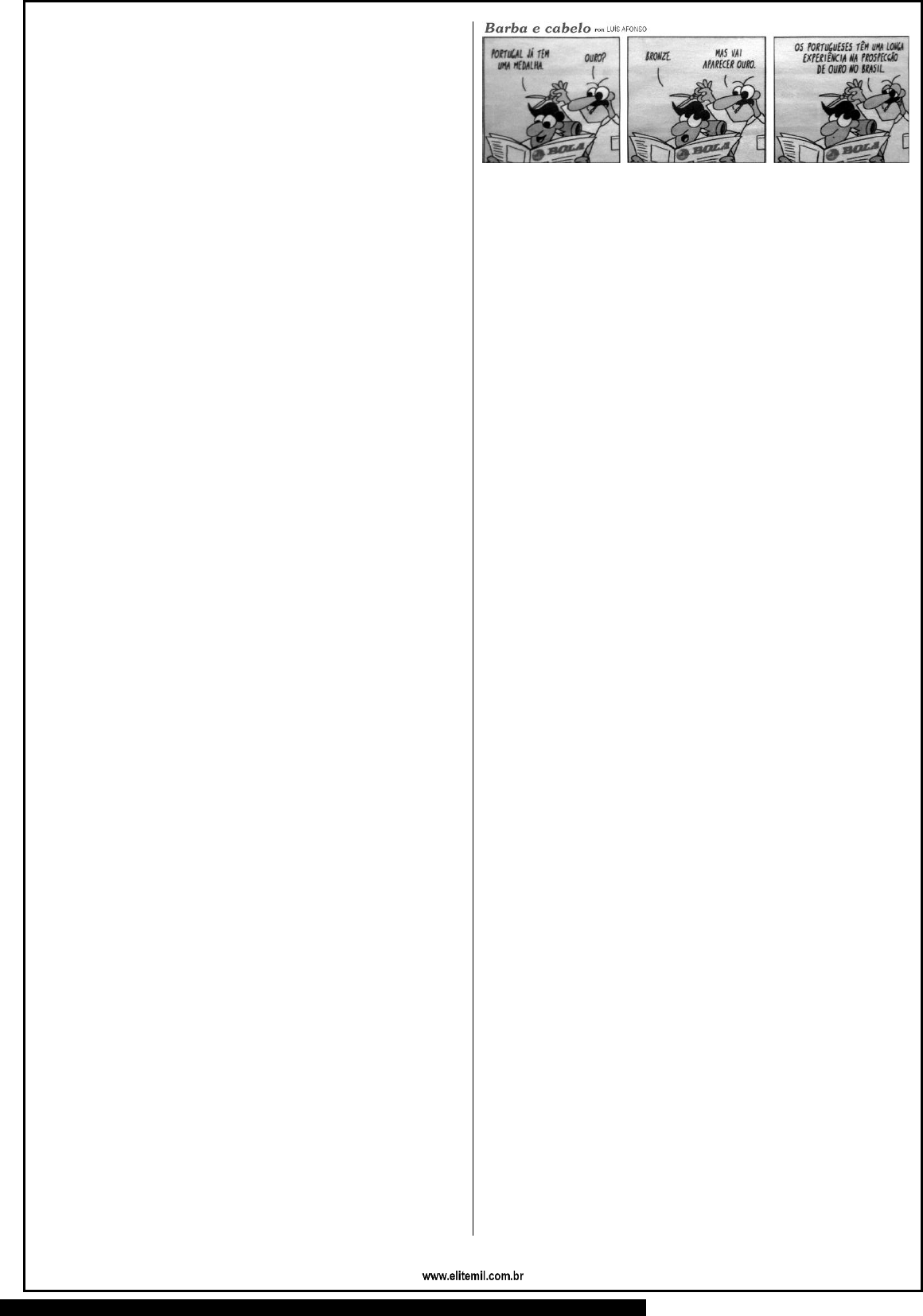 56 Disponível em: <https://www.significados.com.br/carpe-diem/>. Acesso em: 19 set. 17. (Parcial e adaptado.) Carpe diem é uma convenção do período literário denominado a) Parnasianismo. b) Romantismo. c) Realismo. d) Modernismo. e) Arcadismo. 3- Leia o poema de Tomás Antônio Gonzaga, transcrito a seguir, e marque a alternativa que aponta três características do Arcadismo brasileiro que nele podem ser observadas. Lira I Eu, Marília, não sou algum vaqueiro, Que viva de guardar alheio gado; De tosco trato, d’expressões grosseiro, Dos frios gelos, e dos sóis queimado. Tenho próprio casal, e nele assisto; Dá-me vinho, legume, fruta, azeite; Das brancas ovelhinhas tiro o leite, E mais as finas lãs, de que me visto. Graças, Marília bela, Graças à minha Estrela! a) Vulgarização da figura da mulher; medievalismo; egocentrismo. b) Denúncia social; exaltação da vida no campo; temas urbanos. c) Exaltação da vida no campo; linguagem simples; pastoralismo. d) Temas urbanos; linguagem simples; medievalismo. e) Egocentrismo; pastoralismo; denúncia social. 4) Dirceu e Marília são dois personagens icônicos da poesia árcade brasileira. A descrição de Marília por Dirceu oscila de um verso para outro: ora seus cabelos são pretos, ora são loiros. O mesmo ocorre com o próprio Dirceu: ora ele encarna o pastor, ora o juiz. Quem é o autor desse poema que, nada obstante ser árcade, já sinaliza para o amor romântico? a) Cláudio Manuel da Costa. b) Castro Alves. c) Tomás Antônio Gonzaga. d) José de Alencar. e) Gregório de Matos. 5- Em 09/08/2016, durante as Olimpíadas, o jornal português “A Bola” publicou a seguinte charge de Luís Afonso: A expressão “prospecção de ouro no Brasil”, mencionada no último quadrinho, está associada historicamente a um período literário brasileiro, qual seja: a) Ao Barroco, com Gregório de Matos, seu verso sobre a formosura de uma moça: “Ouro encrespado sobre a prata fina.” (...). b) Ao Arcadismo, representado por Cláudio Manuel da Costa: “Turvo banhando as pálidas areias / Nas porções do riquíssimo tesouro / O vasto campo da ambição recreias.” c) Ao Parnasianismo, como no verso de Olavo Bilac: “O ouro fulvo do ocaso as velhas casas cobre”(...). d) Ao Simbolismo, de Cruz e Sousa, e seus versos sobre a Rainha do Capitólio: “Como tem flores, como traz o braço / Farto de joias, como pisa o sólio.” e) À 2.ª geração modernista, na poesia de Carlos Drummond de Andrade: “Tive ouro, tive gado, tive fazendas. / Hoje sou funcionário público.” (...). 6- No século XVIII, o centro econômico da colônia portuguesa deslocou-se do Nordeste para o Sudeste do Brasil (Vila Rica e Rio de Janeiro). Uma pequena burguesia culta faz ecoar nos trópicos as ideias do Iluminismo francês e da Revolução Americana (1776). Tais circunstâncias coincidem como um movimento de grande expressão na Literatura Brasileira. Trata-se do: a) Barroco. b) Arcadismo. c) Romantismo. d) Realismo. e) Modernismo. 7- Sobre as características dos estilos de época da literatura brasileira, assinale a alternativa CORRETA. a) No Brasil, o Parnasianismo foi um movimento artístico que teve como objetivo devolver a beleza formal à poesia, eliminando os excessos sentimentais. b) A arte naturalista produzida por Cruz e Sousa pretendia obstruir os sentidos humanos e, desse modo, permitir a apreensão da realidade de modo sugestivo. c) O Simbolismo foi um movimento literário surgido na década de 1950 na Inglaterra e que teve seu auge no Brasil, especificamente em São Paulo, na década de 1960. d) É considerada árcade a literatura brasileira produzida entre 1902 e 1922, ano da realização da Semana de Arte Moderna, marco da chegada do Modernismo. http://www.elitemil.com.br/ 57 Romancismo 1- Um dos principais temas do Romantismo brasileiro foi o indigenismo. Poetas e prosadores como Gonçalves Dias, Machado de Assis e José de Alencar exploraram em suas obras, dentro de uma perspectiva mítica, a figura do índio. No caso de José de Alencar, quais dos seus romances versam sobre a temática indigenista? a) Iracema, o Guarani e De Ierecê a Guaná. b) Ubirajara, Confederação dos Tamoios e Ocidentais. c) O Guarani, Iracema e Vozes d’África. d) Iracema, O Guarani e Ubirajara. e) Ubirajara, Ocidentais e Confederação dos Tamoios. 2- Os __________ haviam “civilizado” a imagem do índio, injetando nele os padrões do cavalheirismo convencional. Os __________ , ao contrário, procuraram nele e no negro o primitivismo, que injetaram nos padrões da civilização dominante como renovação e quebra das convenções acadêmicas. (Antonio Candido. Iniciação à literatura brasileira, 2010. Adaptado.) As lacunas do texto devem ser preenchidas, respectivamente, por a) românticos e simbolistas. b) árcades e simbolistas. c) árcades e modernistas. d) românticos e modernistas. e) simbolistas e modernistas. 3- Sobre as escolas literárias e respectivos escritores, relacione a primeira coluna com a segunda coluna. (1) Contos Gauchescos é o segundo livro desse escritor gaúcho, que também escreveu Cancioneiro Guasca, Lendas do Sul e Casos do Romualdo. O autor viveu 51 anos e publicou apenas quatro livros. (2) O Navio Negreiro é uma poesia que integra um grande poema épico chamado Os Escravos. Escrita em na cidade de São Paulo, a poesia relata a situação sofrida pelos africanos vítimas do tráfico de escravos nas viagens de navio da África para o Brasil. (3) Grande crítico das vanguardas europeias que fomentaram a fase heroica do Modernismo, escreveu, em, um artigo, no qual tecia duros comentários à exposição da artista plástica Anita Malfatti, intitulado “Paranoia ou Mistificação?”. (4) Com seu livro “Broquéis, publicado em, deu início ao Simbolismo no Brasil. Seus poemas são marcados pela musicalidade, individualismo e também pela cor branca. (5) Seu único romance Grande Sertão: Veredas é uma rica epop