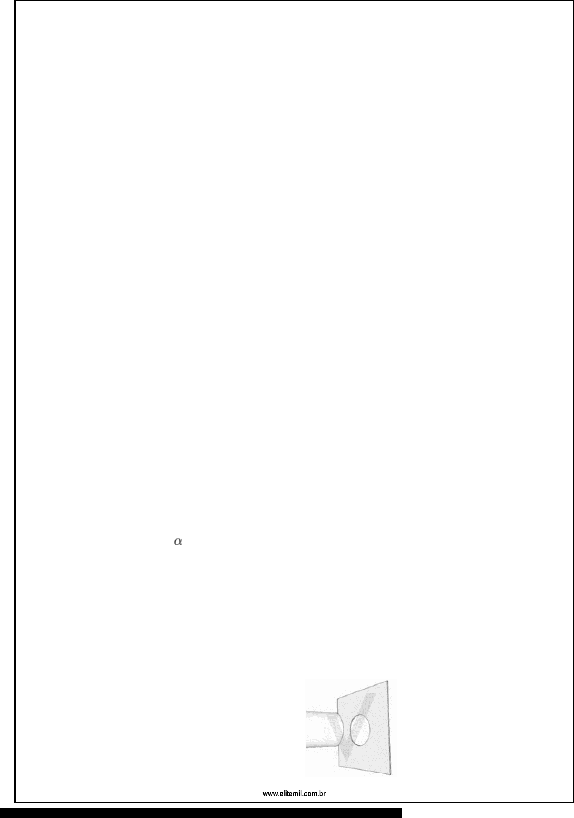147 b) 3,25 cm c) 6,15 cm d) 2,75 cm e) 1,95 cm 2) Um recipiente de alumínio com capacidade de 2 litros está cheio de glicerina até a sua borda a uma temperatura de 10oC. Se a temperatura for aumentada para 70oC, a quantidade de glicerina que irá derramar do recipiente será de aproximadamente: DADOS: coeficiente de dilatação da glicerina γ = 5,1 x 10-4/ºc. coeficiente de dilatação linear do alumínio α = 23 . 10 -6/ 0c a) 0,053 ml b) 0,52 ml c) 52,92 l d) 0,52 l e) 52,92 ml 3) Uma placa metálica inicialmente possui área igual a 2 m2 quando a temperatura é igual a 0°C. Aquecendo a placa até a temperatura de 100 °C, sua área aumenta de 2 cm2. É correto afirmar que o coeficiente de dilatação superficial do material que constitui a placa é igual a: a) 1,0×10−6 ˚ C−1 b) 2,0×10−4 ˚C−1 c) 2,4×10−4 ˚ C−1 d) 4,0×10−6 ˚C−1 e) 2,5×10−4 ˚C−1 4) Uma chapa quadrada, feita de um material encontrado no planeta Marte, tem área A = 100,0 cm2 a uma temperatura de 100 °C. A uma temperatura de 0,0 °C, qual será a área da chapa em cm2? Considere que o coeficiente de expansão linear do material é = 2,0 × 10-3/ °C a) 74,0 b) 64,0 c) 54,0 d) 44,0 e) 34,0 4) Uma chapa circular com 1m de raio, confeccionada com a utilização de certo metal, ficou exposta ao sol. Em consequência, a chapa sofreu uma dilatação de 1% na dimensão do seu raio. Em metros quadrados, a área dessa chapa, após a dilatação, teve um aumento a) de 1%. b) maior do que 1% e menor do que 2%. c) de 2%. d) maior do que 2% e menor do que 20%. e) maior do que 20%. 5) À temperatura de 0ºC, uma barra metálica A (aa = 2,0 • 10-5 °C-1) tem comprimento de 202,0 milímetros, e outra barra metálica B (ab = 5,0 • 10-5 °C-1) tem comprimento de 200,8 milímetros. Aquecendo-se essas barras, elas apresentarão o mesmo comprimento à temperatura de: a) 100ºC b) 150ºC c) 180ºC d) 200ºC e) 220ºC 6) Devido à enorme quantidade de descargas elétricas, o Cristo Redentor do Rio de Janeiro recebeu proteção especial, de forma a amenizar a dilatação térmica sofrida com eventuais relâmpagos. Supondo que o coeficiente de dilatação volumétrica do aço seja 6,0.10-6 °C-1, que a variação de temperatura seja igual a 180 graus Fahrenheits e o comprimento inicial da uma haste metálica de aço seja igual a 100 metros. Encontre a variação do comprimento da haste sofrida durante tal aquecimento a) 2cm. b) 3cm. c) 4cm. d) 5cm. e) 6cm. 7) Um barra metálica com comprimento de 100 cm é aquecida e observa-se que durante o aquecimento ocorreu um aumento de 20% em seu comprimento. A variação de temperatura registrada foi de 300oC. Qual das alternativas representa o valor do coeficiente de dilatação do material que costitui a barra, em oC -1? a) 0,7 x 10-4 b) 6,5 x 10-4 c) 7,5 x 10-5 d) 7,0 x 10-4 e) 9,0 x 10-4 8) Um técnico deve transpassar um cano cilíndrico com área de seção transversal de 40 mm² , por um orifício circular de mesma área. Para fazer o trabalho ele aquece a chapa de aço até que a área do orifício alcance 40,22 mm2. O coeficiente de dilatação superficial do aço é de 2,2.10-5 ºC-1 e, a temperatura inicial da chapa e do cano é de 20ºC. http://www.elitemil.com.br/ 148 a) 180°C. b) 190°C. c) 290°C. d) 480°C. 9) Um engenheiro, para calcular a espessura ideal do pavimento asfáltico de 5000 m2 , transfere uma quantidade de calor de 4,3 · 107 kJ para esse pavimento no intervalo entre 8h e 13h, provocando uma variação de temperatura de 24°C. Desprezando as perdas de calor no meio, pode-se afirmar que a espessura aproximada da camada asfáltica será Dados: asfalto = 2.300 kg/m3 e casfalto = 0,75 kJ/kg °C. a) 0,003 m. b) 0,5 dam. c) 1,5 dm. d) 21 cm. e) 150 mm. 10) A um marceneiro foi solicitado que fizesse uma roda de madeira com 100,0 cm de diâmetro para que fosse adaptada em um anel de ferro com 5,0 mm menor que o diâmetro da roda. Para essa adaptação, foi-se necessário aquecer em um forno o anel de ferro, cujo coeficiente de dilatação linear vale 12 x 10-6 °C -1. Assim, considerando que a temperatura no ambiente da marcenaria fosse de 30,0 °C, de quanto deveria ser, aproximadamente, a temperatura final do anel, para que a adaptação fosse bem sucedida? a) 430,0 °C b) 450,0 °C c) 530,0 °C d) 390,0 °C e) 405,0 °C Termologia: Dilatação volumétrica 1) Paulo precisa encaixar um eixo de aço em um anel desse mesmo material. À temperatura ambiente, o diâmetro do eixo é um pouco maior que o diâmetro do orifício do anel. Para conseguir encaixar o eixo no anel, Paulo deve a) esfriar o eixo e o anel igualmente. b) esquentar o eixo e o anel igualmente. c) esquentar somente o anel. d) esquentar somente o eixo. 2) André e Antonio são amigos de infância e passaram os últimos tempos preparando-se para o vestibular. Chegado o dia, eles decidem ir juntos ao local da prova. O meio de transporte será o automóvel de Antonio. Folgados, deixam para sair na última hora. O líquido de arrefecimento do motor do carro de Antonio sofre uma variação de temperatura dos 22 ºC no ato da partida até 92 ºC quando a ventoinha passa a funcionar. Observa-se uma dilatação de 10% no volume desse líquido. Desprezando-se a dilatação do radiador e dos tubos de condução do líquido, o coeficiente de dilatação volumétrico do líquido entre as temperaturas citadas vale, em ºC–1, a) 1/700 b) 1/350 c) 1/140 d) 1/100 e) 9/700 3) Para abrir um pote de geleia que possui tampa de aço do tipo rosca e corpo de vidro, com mais facilidade, basta despejar sobre a tampa água quente. Esse procedimento é eficaz porque a) a água quente dilata mais a tampa de aço do que o pote de vidro, reduzindo o atrito entre eles. b) o calor da água aquecida aumenta a pressão no interior do pote, facilitando a remoção da tampa. c) a água quente dilata mais o pote de vidro do que a tampa de aço, forçando sua abertura. d) a infiltração de água quente entre a t