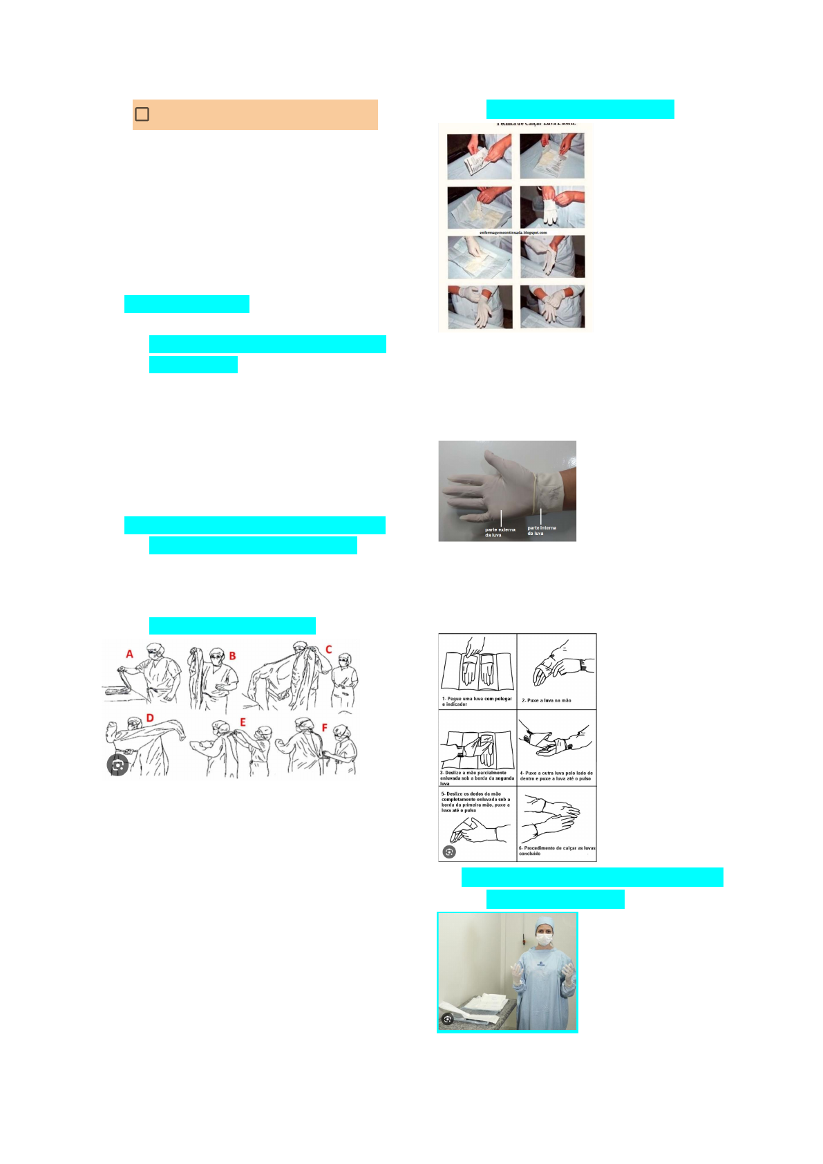 Clínica cirúrgica 1 / Osce/ Isabella Afonso Paramentação cirúrgica Você está de plantão em um Hospital Municipal e realizará um procedimento cirúrgico. Considere que tenha realizado a técnica correta de lavagem da mão cirúrgica, conduza os próximos passos da paramentação e colocação da luva cirúrgica. 1. Apresentação 2. Considerar Higienização das mãos prévia ▪Se tiver higienizado as mãos, pedir para abrir os materiais=>pacote do capote/ avental cirúrgico e das luvas estéreis . ▪Se no comando, não especificar, abrir os pacotes do capote e luvas sem contaminar=> considerar lavar as mãos 》 retornar para próxima etapa 3. Secar as mãos com a compressa dentro do capote ▪secar cada dedo, palma, dorso, punhos e antebraços sem tocar no cotovelo, somente até o terço médio do antebraço 4. vestir avental cirúrgico ☑ Pegar o capote, sem tocar na mesa ou em qualquer outro objeto=> Vestir o capote => pedir para auxiliar amarrar o capote ☑LEMBRANDO NÃO ABRIR PACOTE DO AVENTAL SE TIVER LAVADO AS MÃOS ☑ se tiver cordas de amarração na cintura, inclinar um pouco o tronco pra frente=> entregar as pontas para o auxiliar => auxiliar que amarra !!! 5. Calçar as luvas estéreis ☑lembrar que no pacote está escrito o lado : direito ou esquerdo, iniciar sempre pegando pela parte interna da luva, introduzir, deixando pra organizar os dedos depois que colocar a segunda luva -Pedir a luva estéril de acordo com sua numeração, exemplo 7.5. -LEMBRANDO NÃO ABRIR PACOTE DA LUVA SE TIVER LAVADO AS MÃOS 6. Terminou: mãos pra cima, sem tocar nada!!! Clínica cirúrgica 1 / Osce/ Isabella Afonso Sutura Paciente, 20 anos, chega ao PS após ter cortado a ponta do dedo com uma faca há 30 minutos. Apresenta ferida em falange distal, medindo 2 cm de comprimento. Realize a técnica de sutura com pontos simples. 1- Apresentar 2- informar que está com as mãos higienizadas +EPI's+ confirmar material utilizado ☑ Luva, capote, gorro, máscara, óculos, etc.. ☑Pedir os materiais necessários- fio, lâmina de bisturi, cabo, Campos estéreis e caixa de sutura 3- Macrodegermação ou degermação grosseira ☑água e sabão caso no comando citar grande sujidade no local da lesão ( aqui pode ser feito com luvas de procedimento, mas ao terminar Macrodegermação, lavar as mãos e calçar luvas estéreis) 4- Antissepsia ☑ antisséptico clorexidina ou PVPI, utilizando gazes, pinça cheron, Cuba rim ☑ movimento circulares : do centro para extremidades 5. Colocar campos estéreis 6. Anestesia ☑ Sem vaso=> ponta de nariz, dedos e lóbulo da orelha ☑ COM Vaso=> restante ☑ não abrir nenhum material pedir pro auxiliar abrir, exemplo seringas e agulhas ☑Seringa + agulha rosa 40x12=> aspirar ☑ Pedir o anestésico, não tocar!!! ☑ Lidocaína a 2% ☑Trocar a agulha pela preta. ☑Lembrar que ao trocar de agulha NÃO REENCAPAR COM A MÃO O BISEL DA AGULHA, UTILIZAR A TÉCNICA DE “MERGULHO/ PESCAR” ☑Realizar Botão anestésico no vértice da ferida , não esquecer de aspirar, para confirmar que não pegou vasos . Depois ir infiltrando toda a lesão, sempre aspirando antes de injetar o anestésico 7. Sutura ☑Montar o porta agulha de forma certa ( porta agulha no meio da agulha, na ponta do porta agulha) ☑Segurou a pinça e o porta agulha corretamente=> 1° e 4° dedo ☑Usar um porta agulha, pinça anatômica, preferencialmente dente de rato, tesoura de mayo ou metzembaum ☑se só estiver a pinça anatomica, mesmo assim peça a dente de rato ! ☑Ponto simples - tracionar uma borda a lesão com a pinça, entra/sai com a agulha=> na outra borda entra/ sai. - porta agulha no centro da lesão, na vertical, 02 voltas com o fio/ sentido horário=> porta agulha no mesmo lugar!! só movimenta a mao que segura o fiooo! => 01 volta com o fio/ sentido antihorario=> 01 volta/ horário => lateraliza o ponto e cortar com a tesoura Sutura interrompida simples - Como… ☑Donatti-> áreas de grande tensão-> áreas articulares=> longe/ longe perto/perto=> Finaliza com o ponto simples Sutura de Donatti - Como realizar https://www.youtube.com/watch?v=ViXSCQBqigk https://www.youtube.com/watch?v=OSeg9dg8_q0 Clínica cirúrgica 1 / Osce/ Isabella Afonso Drenagem torácica ♡técnica cirúrgica que consiste em acesso à cavidade pleural ou mediastínica, com inserção de dreno acoplado a um sistema de drenagem》 a manutenção ou restabelecimento da pressão negativa do espaço pleural. Com isso, é possível a remoção de ar, líquidos e sólidos (fibrina) do espaço pleural e mediastino. ☑Indicações ▪ Pneumotórax ▪ Hemopneumotórax ▪ Derrame pleural ▪Quilotórax ☑Contra-Indicações ▪relativas: coagulopatias, pacientes em uso de anticoagulantes. 1. Separar Materiais ☑Avental, máscara, gorro, luvas ☑ Solução antisséptica para a pele (clorexidina alcoólica) ☑Seringa 20ml ☑ Agulhas rosa e preta ☑ Anestésico local (lidocaína a 2%) ☑ Lâmina de bisturi 22/23/24 ☑ Kit de pequena cirurgia ☑ Luvas esterilizadas + campo fenestrado + dreno torácico ☑Frascos de drenagem; água esterilizada se for com selo d’água ☑ Fios de sutura 2. Posicionamento ☑Decúbito dorsal, cabeceira em 45°, MMSS atrás da cabeça 3. Macrodegermação + antissepsia+ campo estéril ☑ todo o hemitórax, incluindo a região lateral e axila, movimento em um círculo concêntricos 4. Local da punção ☑Limites de segurança: “Triângulo de Safety” => Borda anterior do latíssimo do dorso, borda inferior do peitoral maior e o centro da axila. ☑O sítio de punção deve se localizar no 4°/5° EI, entre a linha axilar média e anterior. 5. Anestesia ☑ 3 “Ps”: pele, periósteo e pleura. ☑ Com uma seringa de 10-20 ml, faça um botão superficial para anestesia da pele + profundo. ☑ Anestesie generosamente os tecidos subcutâneos e prossiga com a agulha até sentir “bater a costela”. 6. Incisão ☑ Incisão vertical de 1,5-2cm (deve entrar 