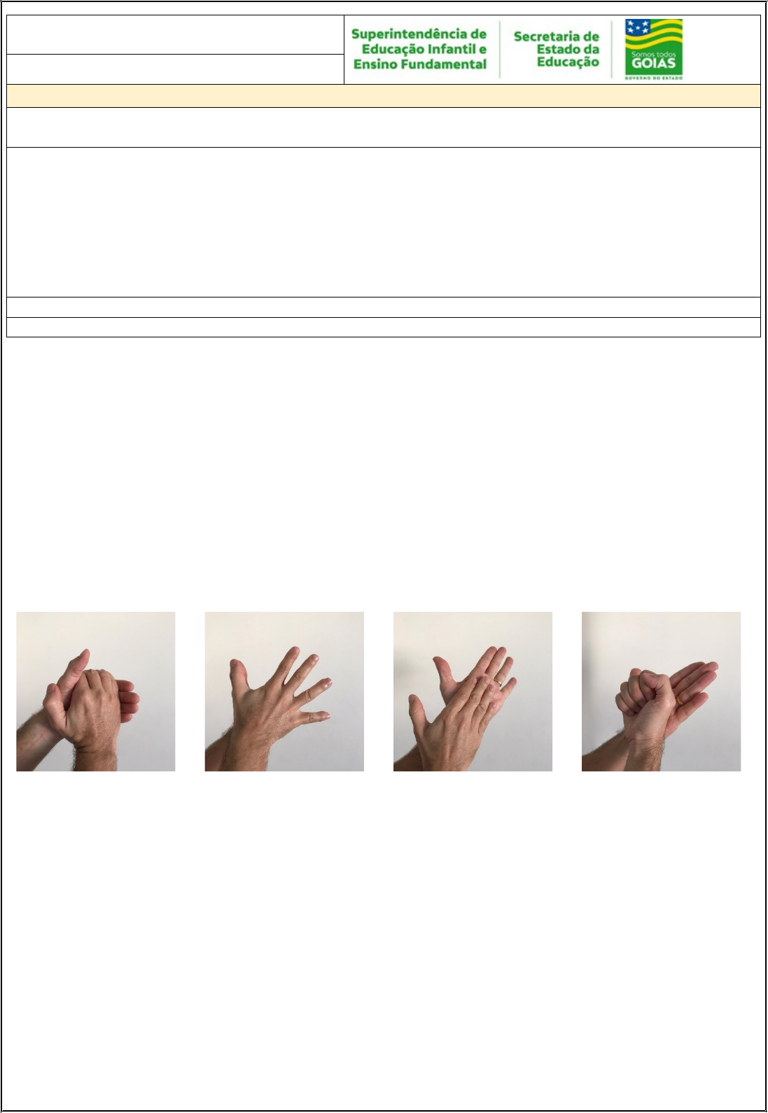 6º ANO MÚSICA ATIVIDADE 5 Tema: Os parâmetros sonoros Habilidades: (GO-EF06AR14-A) Vivenciar e entender que a matéria-prima da música é o som e que ele possui diferentes parâmetros: altura, duração, timbre e intensidade. NOME: UNIDADE ESCOLAR: ATIVIDADES SOM ATIVIDADE I O nosso corpo pode produzir os mais diferentes tipos de sons. Para esta atividade, vamos utilizar alguns sons que podemos reproduzir com nosso corpo: Sons de Palmas. Podemos realizar diferentes tipos de palmas como a palma estrela, palma concha, palma estalada, palma com as costas da mão, dentre outras. Observe as imagens a seguir e tente reproduzir os diferentes tipos de palmas. PALMA CONCHA PALMA ESTRELA PALMA ESTALADA PALMA COM AS COSTAS DA MÃO Agora tente ordenar de 1 a 4 os tipos de palmas segundo o parâmetro altura, sendo o número 1 a mais aguda até o número 4 que seria a palma mais grave. 1. _________________________________________ 2. _________________________________________ 3. _________________________________________ 4. _________________________________________ ATIVIDADE II a) Vamos praticar? Execute a sequência abaixo observando os parâmetros Altura e Intensidade conforme a legenda abaixo. Se possível, grave a sua apresentação. Legenda: · SOM PIANO (SOM FRACO) – P · SOM MEZZO FORTE (SOM MEDIANO; MEIO FORTE) - MF · SOM FORTÍSSIMO (SOM BEM FORTE) - FF Sequência: P MF P MF FF MF P MF P FF FF Para conhecer melhor sobre a sonoridade das palmas assista os vídeos a seguir: Fernando Barba – Percussão Corporal https://www.youtube.com/watch?v=pFaWQhzaBJw Fernando Barba – Percussão Corporal Pt 2 https://www.youtube.com/watch?v=Za5-W5jJp_U RESPOSTAS COMENTADAS (GABARITO) ATIVIDIDADE I & II – PEÇA AOS ESTUDANTES QUE PRATIQUEM AS SEQUÊNCIAS PROPOSTAS.