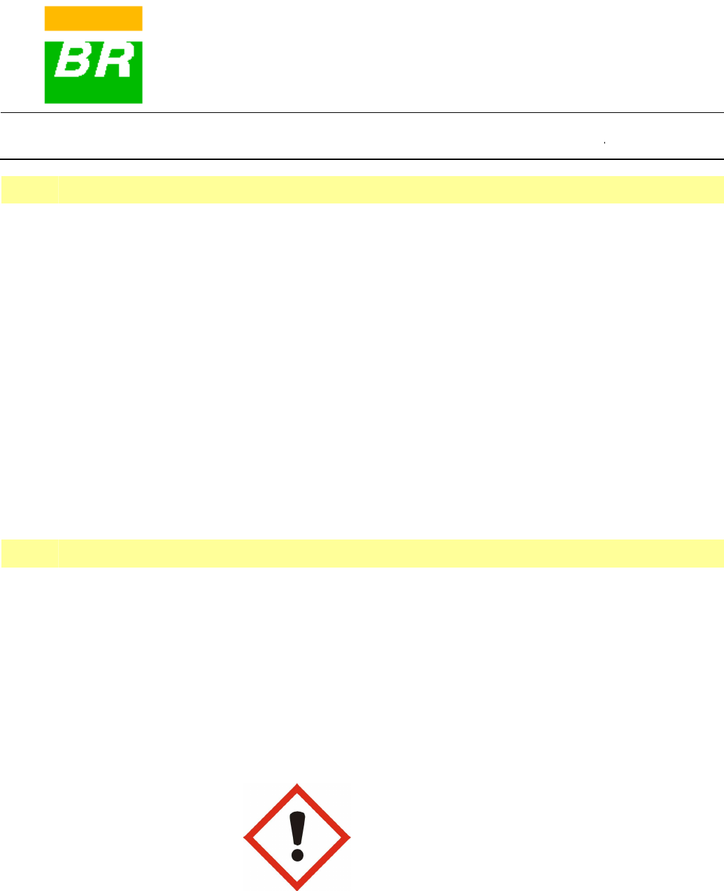 Ficha de Informações de Segurança de Produtos Químicos - FISPQ PRODUTO: LUBRAX Calcium ECO 2 Página 1 de 10 Data: 04/04/2016 Nº FISPQ: BR0006 Versão: 0.1P Anul a e substitui versão: TTodas as anteriores 1 - IDENTIFICAÇÃO Nome do produto: LUBRAX CALCIUM ECO 2 Código interno de identificação: BR0006 Principais usos recomendados para a substância ou mistura: Graxa lubrificante à base complexo de cálcio, para múltiplas aplicações automotivas. Disponível no grau NLGI 2. Nome da empresa: Petrobras Distribuidora S.A. Endereço: Av. Fabor, S/N, Campos Elíseos Duque de Caxias - RJ - Brasil CEP: 25.225-030 Telefone: Telefone para emergências: 0800 0244433 Fax: - 2 - IDENTIFICAÇÃO DE PERIGOS Classificação de perigo do produto: Corrosão/irritação à pele – Categoria 2 Sistema de classificação utilizado: Norma ABNT-NBR 14725-2:2009 – versão corrigida 2:2010. Sistema Globalmente Harmonizado para a Classificação e Rotulagem de Produtos Químicos, ONU. Outros perigos que não resultam em uma classificação: Tóxico aos organismos aquáticos. ELEMENTOS APROPRIADOS DA ROTULAGEM Pictogramas: Palavra de advertência: ATENÇÃO Frases de perigo: Provoca irritação à pele. Frases de precaução: Mantenha fora do alcance de crianças. Leio o rótulo antes de utilizar o produto.Eliminar o conteúdo/recipiente de acordo com as normas locais. Ficha de Informações de Segurança de Produtos Químicos - FISPQ PRODUTO: LUBRAX Calcium ECO 2 Página 2 de 10 Data: 04/04/2016 Nº FISPQ: BR0006 Versão: 0.1P Anul a e substitui versão: TTodas as anteriores Lave as mãos cuidadosamente após o manuseio. EM CASO DE CONTATO COM A PELE: Lave com água e sabão em abundância. Em caso de irritação cutânea: Consulte um médico. Retire toda a roupa contaminada e lave-a ante de usá-la novamente. Tratamento específico: Em caso de derramamento entre em contato através do 0800 0244433. 3 - COMPOSIÇÃO E INFORMAÇÕES SOBRE OS INGREDIENTES >>>MISTURA Natureza química: Graxa lubrificante biodegradável à base de sabão complexo de cálcio. Ingredientes ou impurezas que contribuam para o perigo: Componentes Concentração (%) Nº CAS Classificação de perigo conforme ABNT NBR 14725 - 2 Antioxidante 1,0 – 2 1305-62-0 - 4 - MEDIDAS DE PRIMEIROS-SOCORROS Inalação: Remover a pessoa para o ar fresco e aplicar respiração artificial se necessário. Consultar um médico. Leve esta FISPQ. Contato com a pele: Lavar meticulosamente com água e sabão. Em caso de irritação cutânea: Consulte um médico. Leve esta FISPQ. Contato com os olhos: Enxaguar imediatamente os olhos com água corrente durante pelo menos 15 minutos, mantendo as pálpebras bem abertas. Consultar um oftalmologista.. Leve esta FISPQ. Ingestão: Não induzir o vômito, em caso de vômito espontâneo certificar-se de que possa fluir livremente devido ao perigo de sufocamento. Caso sinta indisposição, contate um CENTRO DE INFORMAÇÃO TOXICOLÓGICA ou um médico. Leve esta FISPQ. Sintomas e efeitos mais importantes, agudos ou tardios: Vapores do produto aquecido podem provocar náuseas, tonturas e distúrbios gastrintestinais. Notas para médico: Tratamento sintomático. Contatar se possível, um centro de Ficha de Informações de Segurança de Produtos Químicos - FISPQ PRODUTO: LUBRAX Calcium ECO 2 Página 3 de 10 Data: 04/04/2016 Nº FISPQ: BR0006 Versão: 0.1P Anul a e substitui versão: TTodas as anteriores Toxicologia. 5 - MEDIDAS DE COMBATE A INCÊNDIO Meios de extinção: Apropriados: CO2, pó químico, Spray de água ou espuma mecânica. Perigos específicos da mistura ou substância: resfriamento deve atingi r toda a massa incendiada que se encontra na profundidade. Um serviço operado superficialmente não atingirá a parte interna do material incendiado, o qual continuará lentamente em combustão. Medidas de proteção da equipe de combate a incêndio: Em incêndios envolvendo esse produto não entrar em espaços confinados sem equipamento de proteção individual adequado, incluindo conjunto autônomo de ar. Perigos específicos da combustão do produto químico: Durante a queima ocorre a liberação de dióxido de carbono (CO2) e no caso de combustão incompleta pode ocorrer a formação e liberação de monóxido de carbono (CO). 6 - MEDIDAS DE CONTROLE PARA DERRAMAMENTO OU VAZAMENTO Precauções pessoais Para o pessoal que não faz parte dos serviços de emergência: Não fume. Não toque nos recipientes danificados ou no material derramado sem o uso de vestimentas adequadas. Evite exposição ao produto. Utilize equipamento de proteção individual conforme descrito na seção 8. Para pessoal de serviço de emergência: Utilizar EPI completo com óculos de proteção contra respingos, luvas de proteção do tipo PVC, polietileno ou neoprene, sapatos fechados e vestimenta de proteção adequada. Máscara de proteção com filtro contra vapores e névoas, se necessário. Isole o vazamento de fontes de ignição preventivamente. Mantenha as pessoas não autorizadas afastadas da área. Pare o vazamento, se isso puder ser feito sem risco. Precauções ao meio ambiente: Estancar o vazamento se isso puder ser feito sem risco. Não direcionar o material espalhado para quaisquer sistemas de drenagem publica. Evitar a possibilidade de contaminação de águas superficiais ou mananciais. Restringir o vazamento à menor área possível. O arraste com água deve levar em conta o tratamento posterior da água contaminada. Evitar fazer esse arraste. Métodos e materiais para contenção e limpeza: Recolher o produto de forma mecânica para recipiente de emergência, devidamente etiquetado e bem fechado. Conservar o produto recuperado para posterior eliminação. Não utilizar água para Ficha de Informações de Segurança de Produtos Químicos - FISPQ PRODUTO: LUBRAX Calcium ECO 2 Página 4 de 10 Data: 04/04/2016 Nº FISPQ: BR0006 Versão: 0.1P Anul a e substitui versão: TTodas as anteriores evitar o espalhamento