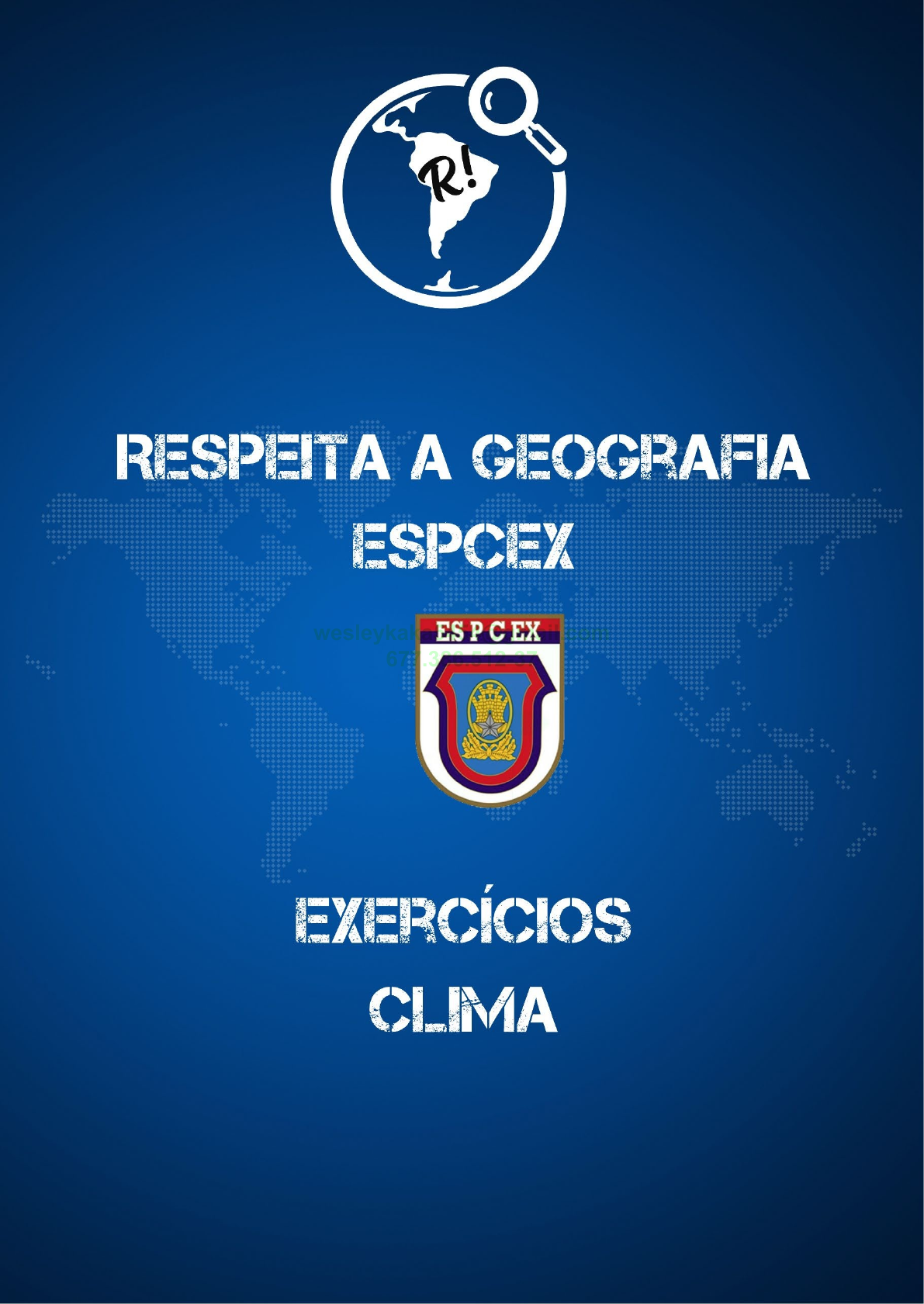 wesleykaka5454@gmail.com 677.386.512-37 Exercícios Clima � EsPCEx 1. (UFMT) Observe a figura. Fonte: http://www.not1.com.br/clima-e-massas-de-ar-do-brasil-mapas-e- climogramas-regioes-brasileiras/, 2012. Acesso em 20/07/2015.) Sobre as massas de ar que atuam no território brasileiro, analise as afirmativas. I - As massas de ar mPa e mTa possuem mais influŒncia no inverno. II - A mEa atua tanto no verªo quando no inverno brasileiro, em especial na regiªo Sul. III - As massas de ar de maior influŒncia no verªo sªo a mEc e a mTa, pois atingem em conjunto todas as regiıes brasileiras. IV - As massas de ar mPa e mTa deslocam-se pelos estados das regiıes Sul, Sudeste, Centro-Oeste e Nordeste brasileiro. Estªo corretas as afirmativas a) I, III, IV b) I, II, III c) I, II, IV d) II, III, IV e) III, apenas 2. (UEPB) Observe no mapa (abaixo) as massas de ar que atuam no território brasileiro. Com base no seu conhecimento sobre o assunto e com o auxílio do cartograma, assinale com V ou com F as proposiçıes, conforme sejam respectivamente Verdadeiras ou Falsas em relaçªo aos aspectos climÆticos do Brasil. wesleykaka5454@gmail.com 677.386.512-37 ( ) As chuvas no litoral nordestino se concentram no inverno quando a massa Polar Atlântica, que Ø fria, alcança o litoral do Nordeste oriental e entra em contato com a massa Tropical Atlântica, que Ø quente e œmida, provocando as chuvas frontais. ( ) A massa Equatorial Continental que se origina na Amazônia Ocidental Ø œmida devido à presença da floresta e da rica rede hidrogrÆfica amazônica. É a responsÆvel por provocar chuvas de verªo na maior parte do território brasileiro. ( ) A massa de ar Tropical Atlân tica tem sua atuaçªo mais restrita ao litoral quando encontra o planalto brasileiro ocasionando aí as chuvas orogrÆficas. Ao penetrar para o interior do continente, esta massa, jÆ sem umidade, apresenta significativa reduçªo dos índices pluviomØtricos. ( ) Os tipos de clima no Brasil sªo definidos apenas pela circulaçªo atmosfØrica, com os ventos alísios de sudeste que agem sobre todo o nosso território, visto que o nosso relevo tem altitudes modestas que sªo incapazes de interferir na atuaçªo das massas d e ar que se formam no hemisfØrio sul. Assinale a sequŒncia correta das assertivas: a) V, F, V, F wesleykaka5454@gmail.com 677.386.512-37 b) F, F, F, V c) V, V, V, F d) F, V, V, F e) V, F, F, V 3. (EsPCEx) Entre os meses de Abril e Julho, observa-se uma intensificaçªo das chuvas em cidades da Zona da Mata nordestina, tal como Maceió -AL e Recife- PE. Esse aumento estÆ relacionado, principalmente, à ocorrŒncia das chuvas a) frontais provocadas pelo avanço da massa Polar Atlântica (mPa) ao longo do litoral e o seu contato com a massa Tropical atlâ ntica (mTa), quente e carregada de umidade. b) orogrÆficas provocadas, sobretudo, pela umidade da massa Equatorial atlântica (mEa) que se desloca do Oceano Atlântico e defronta -se com a planície costeira. c) convectivas, que se caracterizam por serem extremamente violentas e causadas pela atuaçªo da massa Equatorial continental (mEc). d) de verªo, que sªo precipitaçıes torrenciais provocadas pelo movimento convectivo de ventos quentes e œmidos provenientes da massa Tropical continental (mTc). e) sazonais, que se intensificam nesse período graças à expansªo da atuaçªo da massa Equatorial continental (mEc) sobre todo o território brasileiro. 4. (EsPCEx) Domingo do ga e geada. PORTO ALEGRE � O domingo foi de frio em todo o Rio Grande do Sul. Em Porto Alegre, a temperatura, nesta manhª, girou em torno de 6C” a 10C”. Na madrugada de sÆbado, as baixas temperaturas e geada atingiram a regiªo Nordeste do Estado. Segundo a Estaçªo de Climatologia Urbana de Sªo Leopoldo, o frio permanecerÆ no Estado atØ a próxima quinta-feira, com tempo bom e sol. Fonte: AgŒncia Jornal do Brasil. Domingo, 4 de Maio de 2003. Em virtude da Øpoca do ano em que ocorreram os fatos noticiados, eles podem ser associados a) à fase final da atuaçªo da massa polar atlântica (mPa), quando ela se apresenta fria e œmida, ocasionando fortes chuvas orogrÆficas. b) ao predomínio, durante o inverno, da massa polar atlânt ica (mPa), o que pode ser comprovado pela ocorrŒncia de fortes geadas no Nordeste do estado, devido à migraçªo de Æreas ciclonais para o sul. c) à atuaçªo de ventos alísios na regiªo, provocando as temperaturas anormais para a Øpoca do ano na regiªo. d) à plena atuaçªo da massa polar atlântica (mPa) sobre o Rio Grande do Sul, após as chuvas de convecçªo causadas pelo seu choque com massas de ar quente. e) à aproximaçªo de um fenômeno típico de inverno, quando o anticiclone polar migra para as menores latitudes. 5. (EsPCEx) A dinâmica dos oceanos Ø provocada, sobretudo, pela circulaçªo atmosfØrica e pela rotaçªo da Terra. A pressªo atmosfØrica e o vento explicam, muito acentuadamente, a existŒncia e a direçªo das correntes marítimas de superfície. wesleykaka5454@gmail.com 677.386.512-37 Considerando-se as características das correntes marítimas, pode-se afirmar que a) as correntes frias, empurradas pelos ventos em direçªo às baixas latitudes, nªo se misturam com as Æguas quentes, sendo novamente impelidas para as altas latitudes. b) as correntes marítimas influenciam as mØdias pluviomØtricas e tØrmicas, limitando-se, porØm, ao litoral. c) as correntes marítimas no HemisfØrio Sul seguem o sentido Leste-Oeste, seguindo o movimento dos ventos alísios, que ocorre em sentido horÆrio. d) as correntes marítimas quentes restringem-se às regiıes intertropicais, ou seja, na faixa entre os trópicos de Capricórnio e Câncer. e) correntes marítimas de diferentes temperaturas podem provocar, em latitudes iguais, pluviosidades diferentes. 6. (EsPCEx) Assinale a alternativa que apresenta o clima que ocorre em latitudes de 45° a 55°, aproximadamente, e que se caracteriza por apresentar 