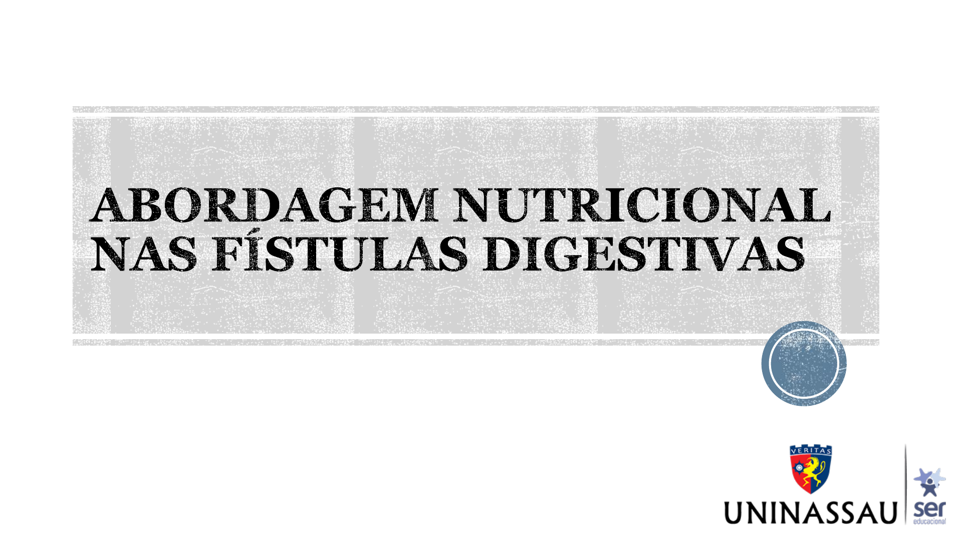 NUTRIÇÃO CLÍNICA Profª Ma. Marilene Magalhães de Brito As fístulas digestivas são conceituadas como sendo o estabelecimento de uma comunicação anormal entre o tubo digestivo e qualquer outra víscera oca intra- abdominal ou em cavidade livre (fístula interna), ou, ainda, com a superfície cutânea (fístula externa), através da qual ocorre drenagem de secreção digestiva. Taxa de mortalidade: 10% a 60%. Desnutrição Desequilíbrio hidroeletrolítico Sepse Alto débito inicial pela fístula Baixo débito: < 500 mL /dia Alto débito: > 500 mL/dia Dentre as várias etiologias, a deiscência de anastomoses digestivas é a mais frequente (~ 80%), ocorrendo habitualmente entre o 4º e 10º dia da operação. Doença de Crohn Radioterapia Perfurações inadvertidas em ato operatório Trauma Países em desenvolvimento: tuberculose e a amebíase Desnutrição Corpos estranhos deixados na cavidade acidentalmente ou de forma intencional Cirurgias do tubo digestivo em locais com processo inflamatório ou neoplásico A gravidade depende de uma série de variáveis: Etiologia Tipo de fístula (drenagem interna ou externa) Localização anatômica Débito da fístula (qualidade e quantidade do líquido perdido). Qualidade do líquido drenado: determinado pela localização anatômica da fístula. Perda de eletrólitos e proteínas espoliadas. Ação lesiva direta dos líquidos digestivos sobre os tecidos. Lesão proteolítica na ferida: favorece a infecção e a deiscência da parede abdominal com alto risco de evisceração. A pele em contato direto com estes líquidos sofre queimadura química: pode gerar processo infeccioso grave. As fístulas biliares podem ser espontâneas (raras) ou pós-intervenção cirúrgica ou trauma As fístulas espontâneas internas em geral se associam com litíase da árvore biliar O débito da fístula igualmente determina o prognóstico Estado geral e nutricional muito importância Repouso do trato digestivo pelo uso da NPT, em princípio, não é necessário. Fístula Colecistoentérica As fístulas esofágicas, em geral, são complicações cirúrgicas pós-esofagectomia com anastomoses que podem ser cervical, intra-torácica ou abdominal, ou ainda de traumas penetrantes em região cervical, de perfuração pela ingestão de corpos estranhos com arestas ou de endoscopia. A exclusão do trânsito alimentar é medida importante Cerca de 85 a 90 % das fístulas gástricas são complicações cirúrgicas. Causas menos comuns, de ocorrência espontânea, são inflamações, isquemias, câncer e irradiação. Ocorrem em cerca de 6 a 8 % das anastomoses gástricas por ressecções oncológicas e determinam uma mortalidade de 50 a 70%. Nas doenças benignas, se o débito for superior a 200 ml/ dia, é esperada uma mortalidade em torno de 40 %. São fístulas de grande morbimortalidade, em geral, de alto débito com importante perda hidroeletrolítica e de bicarbonato, levando a importante acidose metabólica. Resultam, quase sempre, de intervenções cirúrgicas, sendo que cerca de 85% ocorrem após ressecções gástricas, operações biliares, duodenais, pancreáticas ou em cólon direito. Duplicação Pilórica (Fístula Antro-Duodenal) https://www.google.com/url?sa=i&url=http://www.scielo.mec.pt/scielo.php?script%3Dsci_arttext%26pid%3DS0872-81782010000100008&psig=AOvVaw3tVkVDgQgozPdH3uWcQM0Z&ust=1589825948708000&source=images&cd=vfe&ved=0CA0QjhxqFwoTCKDI2rDBu-kCFQAAAAAdAAAAABAW Os outros 15 % ocorrem por neoplasia, trauma ou complicações de doença ulcerosa benigna. A mortalidade global varia de 5 a 67%. Mesmo com NPT, a mortalidade permanece elevada, devido a grande perda de líquido, com grave distúrbio hidroeletrolítico. O líquido proveniente do intestino delgado é alcalino e tem alto poder proteolítico por si só. Acrescido das secreções duodenal e biliar e suco pancreático ativado Uma fístula do intestino delgado pode ser extremamente agressiva para o peritônio, trajeto fistuloso da ferida cirúrgica e pele da parede abdominal. (CONRADO etal, 2010) Podem ser complicação de uma operação prévia, ou, mais raramente, espontâneas, como na Doença de Crohn, enterite actínica, ou corrosão pela presença de corpos estranhos. As fístulas das doenças inflamatórias intestinais são de tratamento mais difícil, assim como aquelas originadas em intestino previamente irradiado. Se estiverem localizadas próximo ao ângulo de Treitz, apresentarão débito alto com importante perda hidroeletrolítica. As fístulas localizadas mais distalmente, próximas à válvula íleocecal, podem apresentar comportamento benigno com pequeno débito, inclusive com possibilidade de abordagem nutricional por via oral. Podem ser espontâneas como consequência de doenças inflamatórias inespecíficas Diverticulites Perfuração por corpos estranhos ingeridos ou introduzidos pelo ânus Complicação de intervenção cirúrgica abdominal Em geral, apresentam baixo débito, permitindo o uso do trato digestivo sem grandes problemas. Espera-se seu fechamento espontâneo em cerca de 90 % dos casos em um período de 40 a 50 dias. Fístula gastrocolônica: A - vista do estômago. B – vista do cólon DESNUTRIÇÃO (55 - 90%): Grande catabolismo Desnutrição prévia Perdas aumentadas Jejum imposto pelo tratamento Nutrição ineciente. Índices de mortalidade Anos 80: 40 - 65% Últimos anos: 10 - 15% OBJETIVOS Primário: impedir a desnutrição ou seu agravamento. 1) minimizar o trânsito pela região da fístula, para acelerar a cicatrização e promover fechamento espontâneo; 2) dar TN para eventual operação corretiva da fístula num segundo tempo; 3) modular a reação imunoinflamatória, diminuindo o excesso de inflamação e de imunossupressão. Diminuir a morbidade, acelerar o fechamento da fístula e diminuir a mortalidade. A escolha do suporte depende da localização da fístula. TNE é a preferencial sempre que possível Fístulas de alto débito: TNP Respon