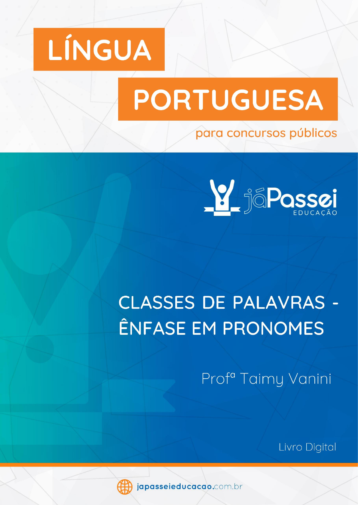 1 www.japasseieducacao.com.br LÍNGUA PORTUGUESA – PRONOMES PROFESSORA TAIMY VANINI Patrícia Simone Gomes de Paula - patriciadepaula01@gmail.com - IP: 45.184.143.21 http://www.japasseieducacao.com.br/ 2 www.japasseieducacao.com.br LÍNGUA PORTUGUESA – PRONOMES PROFESSORA TAIMY VANINI TAIMY VANNI Graduada em Letras – Português/ Inglês em 2011, atua na área de educação desde o segundo semestre da faculdade, contando com mais de 12 anos de experiência em sala de aula. Com concursos e vestibulares, a jornada iniciou em 2014, trabalhando como professora de Inglês na plataforma Ari de Sá. Atualmente, é professora de Língua Portuguesa e Redação no JáPassei Educação e comenta questões no Estratégia Concursos. Olá, professor (a)! Hoje faremos nossa aula sobre pronomes – que são palavras cujo principal objetivo é substituir os substantivos dentro da linguagem escrita ou falada. E apesar de usarmos pronomes o tempo todo – eu, ela, senhor, nós, aquele, esse, etc., sua aplicação por vezes é confundida, uma vez que estamos habituados a utilizar muitos deles de maneiras diferentes daquelas exigidas pela gramática. Por exemplo, normalmente não falamos “empreste-me o livro”, certo? Mas essa, de acordo com a gramática, é a construção correta, com o pronome oblíquo sendo colocado após o verbo no início das orações. Bom, estamos aqui justamente para esclarecer tudo isso! Os pronomes representam um grupo grande dentro da gramática e são divididos em sete tópicos: Retos, oblíquos, possessivos, demonstrativos, relativos, indefinidos e interrogativos, o que acaba tornando o estudo um pouco extenso. Por isso, preparamos um material objetivo, que demonstra o que aparece com mais frequência nas provas de concursos. E para demonstrar toda a relevância desse conteúdo, apresentamos aqui uma análise dos últimos certames: Verificadas as provas para os cargos de Professor de Educação Básica I e Professor de Educação Infantil, dos anos de 2019 a 2022, observou-se que a disciplina de Língua Portuguesa esteve presente em todos os certames, ocupando cerca de 34% das provas. Os pronomes, que fazem parte dos estudos de Morfologia, fizeram parte de todas as avaliações, ocupando em média 4% das provas de Língua Portuguesa. O mais comum é que haja uma questão sobre pronomes, mas muitas provas apresentaram duas. INVESTIGAÇÃO JÁPASSEI Patrícia Simone Gomes de Paula - patriciadepaula01@gmail.com - IP: 45.184.143.21 http://www.japasseieducacao.com.br/ 3 www.japasseieducacao.com.br LÍNGUA PORTUGUESA – PRONOMES PROFESSORA TAIMY VANINI Nesse contexto, a colocação pronominal é o tópico mais relevante, representando 3% da prova de Língua Portuguesa. Os pronomes pessoais oblíquos ocupam cerca de 0,7% das provas; também com 0,7% aparecem os pronomes pessoais oblíquos. Os pronomes demonstrativos, por sua vez, representam 0,3% das provas. Vale lembrar que os pronomes relativos também se associam a outro conteúdo – o da Regência Verbal, que representa em média 1,3% da prova de Língua Portuguesa. Entendida a relevância do conteúdo, é hora de conhecer as regras mais pertinentes de cada tópico e estar pronto para um dos assuntos mais importantes do edital de Língua Portuguesa. Patrícia Simone Gomes de Paula - patriciadepaula01@gmail.com - IP: 45.184.143.21 http://www.japasseieducacao.com.br/ 4 www.japasseieducacao.com.br LÍNGUA PORTUGUESA – PRONOMES PROFESSORA TAIMY VANINI ENTENDENDO OS PRONOMES Como o nome diz, pronomes são as palavras que substituem os nomes – e na Língua Portuguesa, os nomes são os substantivos. É uma classe variada e bem importante para os concursos públicos. Dentro do conteúdo, os tópicos que merecem mais atenção são: os pronomes oblíquos, junto à colocação pronominal e os pronomes relativos, que são reforçados nos estudos de Regência verbal. Por isso, falaremos sobre todos eles, mas com uma ênfase maior nesses dois tópicos. Para começarmos, observe as seguintes orações: Eu encontrei minha irmã, ela estava com meu livro de poesia. As palavras grifadas são todas pronomes. Perceba que “eu” substitui o nome da pessoa que fala. “Minha” é um pronome possessivo e acompanha o substantivo irmã, assim como “meu”, que acompanha o substantivo livro. “Ela” substitui o nome da pessoa com quem se fala. Perceba, com isso, que o pronome, além de estar em toda parte, tem três funções principais: substituir, acompanhar e retomar os nomes. Veja agora alguns exemplos focados nas funções acima: Eu sou uma pessoa competente – Aqui, o pronome substitui o nome de alguém. Vi Daniela ontem, ela estava linda – Aqui, o pronome retoma o substantivo Daniela. Não mexa nas minhas coisas – Aqui, o pronome acompanha o substantivo coisas, dando a ela ideia de posse. Entendido o que os pronomes representam, vamos agora conhecer suas variações. PRONOMES – APLICAÇÃO E COLOCAÇÃO Patrícia Simone Gomes de Paula - patriciadepaula01@gmail.com - IP: 45.184.143.21 http://www.japasseieducacao.com.br/ 5 www.japasseieducacao.com.br LÍNGUA PORTUGUESA – PRONOMES PROFESSORA TAIMY VANINI PRONOMES PESSOAIS RETOS Os retos são os pronomes mais básicos e conhecidos da gramática. São os seguintes: 1° pessoa do singular – EU 2° pessoa do singular – TU 3° pessoa do singular – ELE/ELA 1° pessoa do plural – NÓS 2° pessoa do plural – VÓS 3° pessoa do plural – ELES/ELAS Esses pronomes sempre são sujeitos de ações, os responsáveis por conjugar os verbos. As primeiras pessoas são as que falam; as segundas pessoas são com quem se fala e as terceiras pessoas são sobre quem se fala. Pronomes retos nunca devem ser usados como complementos de verbos - ainda que estejamos acostumados a usá-los dessa forma. Como é o caso das construções a seguir, que estão erradas: Eu vi ele na feira. Manoel encontrou elas na escola. Eu perguntei a eles sobre a maquete. Observe que os grifos foram feitos no