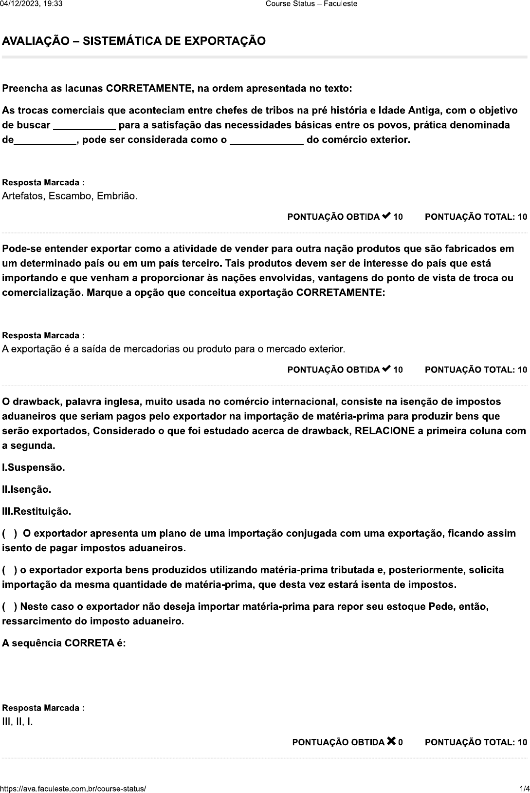 PROVA DISCURSIVA SISTEMÁTICA DE EXPORTAÇÃO E DRAWBACK