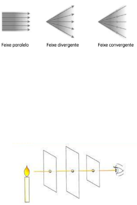 EEM PADRE RODOLFO FERREIRA DA CUNHA Física- Óptica Geométrica/Prof. Arnaldo Alves O que é a óptica geométrica A óptica geométrica é um dos ramos da Física. Em específico, ela é um sub-ramo da óptica. Dessa maneira, por definição, a óptica geométrica considera que a luz se propaga por meio de raios de luz. Esse modelo confere um comportamento geométrico à luz. Óptica A óptica é o ramo da Física responsável pelo estudo da luz e dos fenômenos relacionados a ela. Entre eles, estão a propagação retilínea dos raios de luz, a polarização, a interferência etc. Ilusão de ótica Você já viu uma imagem e se perguntou o que realmente estava vendo? Provavelmente era uma ilusão de ótica. Esse tipo de figura é capaz de enganar os sentidos humanos. Óptica física Quando se considera a natureza ondulatória da luz; Fibra óptica A fibra óptica permite a transmissão de informação sem que haja muita perda de sinal ou interferências. Ela funciona com base no fenômeno físico da reflexão total da luz. Além disso, a luz possui um comportamento dual. Ou seja, ela pode ser onda e partícula, dependendo do meio de detecção. Por isso, também há a óptica física. A qual considera a natureza ondulatória da luz e suas origens. Portanto, de maneira geral, é possível definir a óptica geométrica como: o ramo da óptica que se baseia na noção de raio de luz para descrever os fenômenos como reflexão, refração e formação de imagens a partir dos conceitos de geometria. Além disso, esse ramo da Física não se preocupa com a natureza da luz. Definições importantes da Óptica Geométrica Como o foco deste texto é apenas a Óptica Geométrica, antes de conhecermos seus princípios, vejamos algumas definições importantes: Os raios de luz são segmentos de reta que representam a direção e o sentido de propagação da luz. Eles podem ser emitidos por dois tipos de fonte: Fontes primárias: que emitem luz própria, como o sol, a chama de uma vela ou uma lâmpada; Fontes secundárias: que refletem a luz que recebem de uma fonte primária, como a lua que reflete a luz que recebe do sol, ou um livro, que só pode ser visto se refletir a luz que recebe de uma lâmpada. As fontes luminosas também podem ser classificadas em relação à sua dimensão: Fontes extensas: quando possuem dimensões consideráveis se comparadas às dimensões do objeto a ser iluminado. Por exemplo: uma lâmpada acesa perto de um livro; Fontes pontuais: se as dimensões da fonte de luz forem consideradas desprezíveis em relação ao objeto a ser iluminado. Formas de propagação da luz A luz se propaga na forma de três tipos de feixes de luminosos que são formados por vários raios de luz ou pincéis de luz. Estes são algo como linhas de luz, a forma mais básica de propagação. Os três tipos de feixe de luz são: Feixe paralelo: os raios de luz são paralelos uns com outros, sem ângulos de abertura para separá-los no decorrer da propagação no meio. Essa forma é muito utilizada em holofotes ou lanternas para mergulho. Feixe divergente: há um ângulo de abertura entre os raios de luz que faz com eles se separem à medida que se propagam no meio. Exemplos desse feixe são as lâmpadas domésticas ou lanternas comuns. Feixe convergente: ocorre quando raios de luz se aproximam no decorrer da propagação. Para esse efeito, é necessário algum tipo de lente. Projetar a luz do Sol em uma lupa para causar a combustão em pequenos pontos é um exemplo disso. Princípios da Óptica Geométrica A Óptica Geométrica possui três princípios (leis) que demonstram como ocorre a propagação da luz em um meio. Primeira lei — Propagação retilínea da luz: seu enunciado diz que “em um meio homogêneo, a luz sempre percorre uma linha reta”. Portanto, a menos que a luz troque de meio (do ar para a água, por exemplo) ou se aproxime de algo que distorça grandemente o meio, como um buraco negro ou um corpo muito massivo, ela não faz curvas, se mantendo sempre retilínea. Segunda lei — Independência dos feixes de luz: seu enunciado diz que “quando se cruzam, dois ou mais raios de luz não se interferem”. Quando dois feixes luminosos se cruzam, não acontece interferência destrutiva. O que ocorre, no máximo, é uma superposição de ondas. Quando dois feixes incidem no mesmo lugar, ele só ficará mais iluminado. Terceira lei — Reversibilidade do trajeto da luz: seu enunciado diz que “a trajetória de um raio de luz não muda quando seu sentido é invertido”. Isso significa que o caminho que a luz percorre para ir do ponto A até o ponto B é exatamente o mesmo que ela faz para ir de B até A. Tipos de meios ou superfícies na Óptica Geométrica Para a Óptica Geométrica, as superfícies onde a luz é incidida são classificadas de três formas. A classificação varia de acordo com a forma como elas possibilitam que a luz as transpassem. Superfícies transparentes: são aquelas que permitem que os raios de luz passem totalmente. Para uma superfície ser considerada transparente, a imagem vista através dela e sem ela deve ser exatamente a mesma, sem deformação alguma. Alguns exemplos são o ar, o vácuo (meio com ausência até mesmo de gases) e certos tipos de vidro. Superfícies translúcidas: caracterizadas por permitir parcialmente a passagem dos raios de luz. Exemplos delas são os óculos de Sol, vidros coloridos e sacolas de plástico. Superfícies opacas: são as superfícies que não permitem a passagem dos raios de luz. Exemplos desse tipo de meio são tijolos, madeira, PVC e cerâmicas. Fenômenos da Óptica Geométrica Quando a luz é projetada sobre uma superfície, é possível observar alguns tipos de fenômenos. Os principais deles são reflexão, refração e absorção. Reflexão Na reflexão, a luz incide em uma superfície e retorna ao mesmo meio. Quando o ângulo formado pelo raio incidente é igual ao do raio refletido, ocorre a reflexão regu