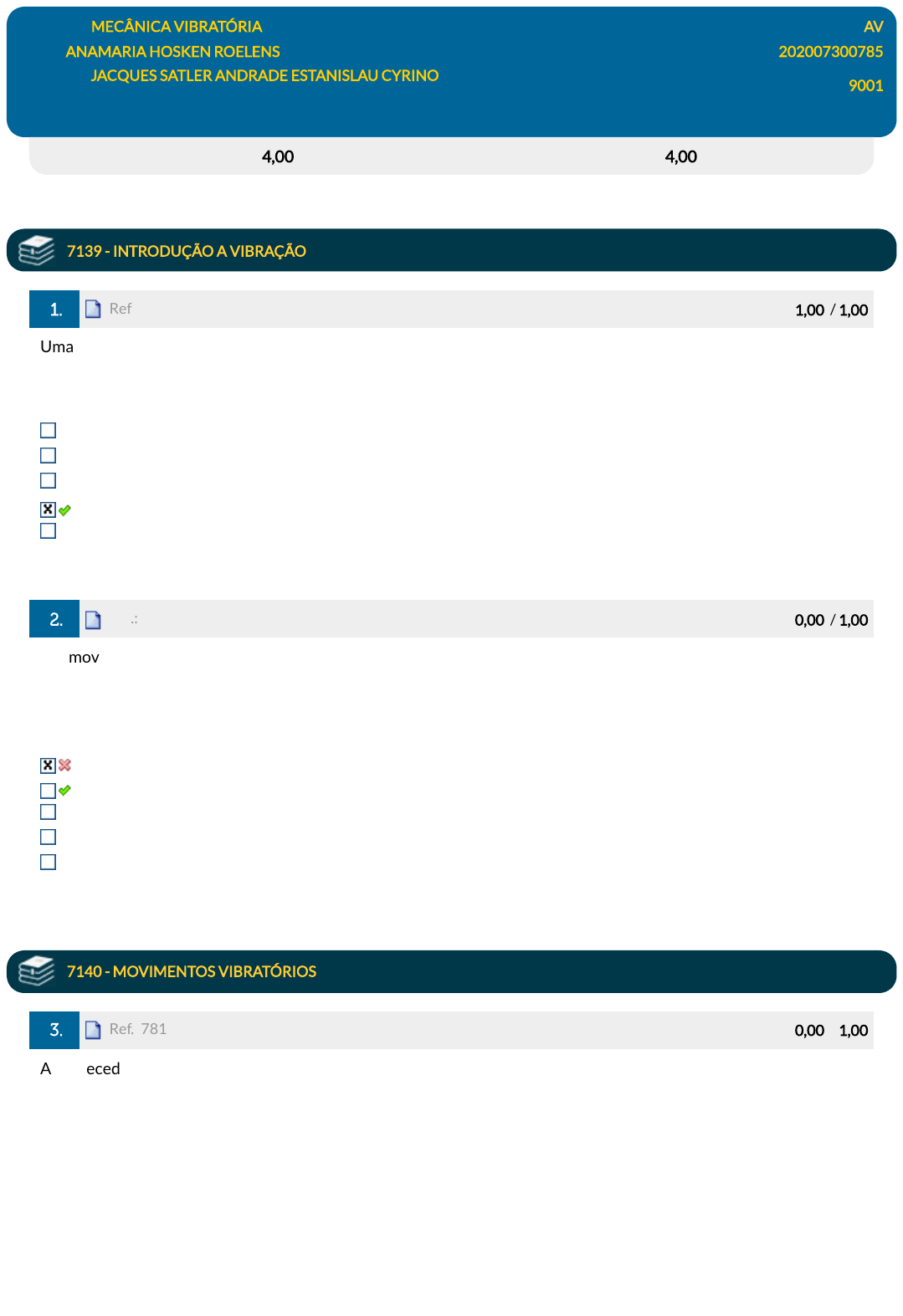 Disciplina: MECÂNICA VIBRATÓRIA AV
