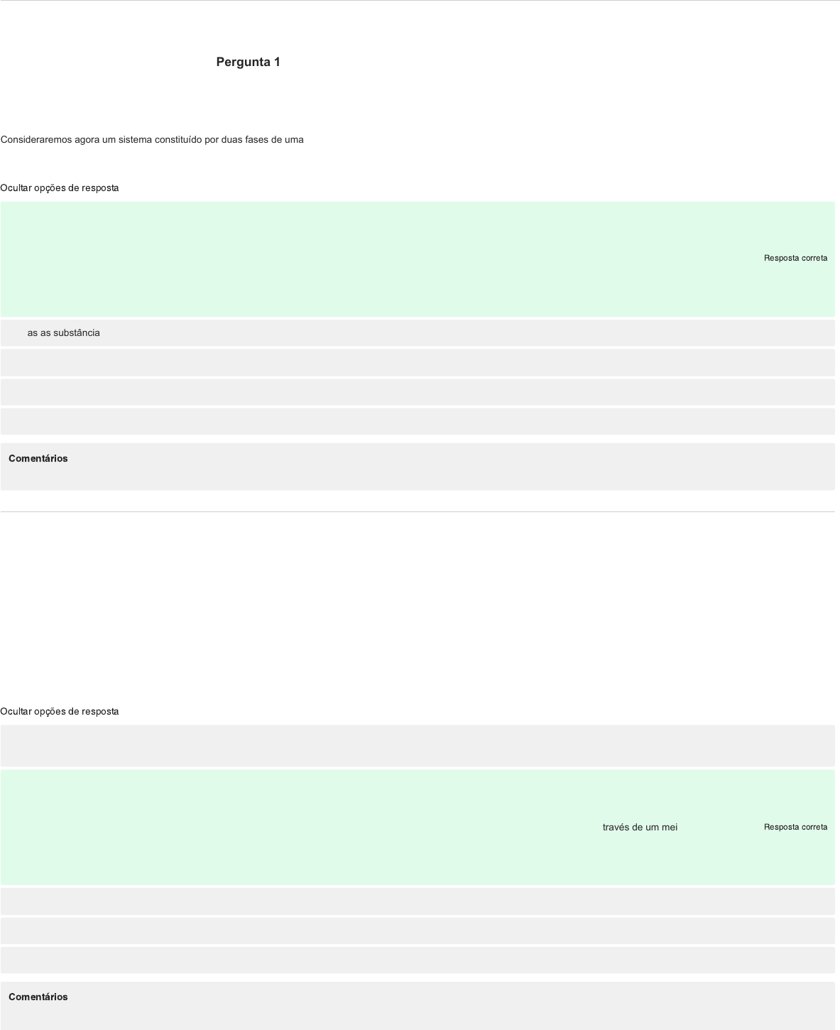 Conteúdo do exercício Ocultar opções de resposta Comentários Ocultar opções de resposta Comentários Pergunta 1 Consideraremos agora um sistema constituído por duas fases de uma substância pura em equilíbrio (água no estado sólido e água no estado líquido, por exemplo). Uma vez que o sistema está em equilíbrio, obrigatoriamente: Resposta correta Correta: Ambas as substâncias devem estar na mesma temperatura e pressão. Ambas as substâncias devem estar em diferentes temperatura e pressão. Ambas as substâncias podem estar em temperaturas diferentes. Ambas as substâncias devem estar apenas na mesma temperatura. Ambas as substâncias podem estar a pressões diferentes. Ambas as substâncias devem estar na mesma temperatura e pressão. Pergunta 2 A velocidade do som, também conhecida como velocidade sônica, é um importante parâmetro do estudo do escoamento compressível. Marque a alternativa que apresenta uma explicação correta do que é velocidade do som. É a velocidade com a qual uma onda de pressão infinitesimalmente pequena percorre através de um meio e que pode ser calculada devido à grande perturbação que é criada na pressão local. Resposta correta Correta: É a velocidade com a qual uma onda de pressão infinitesimalmente pequena percorre através de um meio e que pode ser calculada devido à pequena perturbação que é criada na pressão local. É a velocidade com a qual uma onda com elevada pressão percorre através de um meio e que pode ser calculada devido à pequena perturbação que é criada na pressão local. É a velocidade com a qual uma onda de pressão infinitesimalmente pequena percorre através de um meio e que não pode ser calculada. É a velocidade com a qual uma onda com elevada pressão percorre através de um meio e que pode ser calculada devido à grande perturbação que é criada na pressão local. Ocultar opções de resposta Comentários Ocultar opções de resposta Comentários É a velocidade com a qual uma onda de pressão infinitesimalmente pequena percorre através de um meio e que pode ser calculada devido à pequena perturbação que é criada na pressão local. Pergunta 3 Dizemos que o estado de estagnação é um estado isentrópico quando o processo de estagnação é: Isotérmico e reversível Isotérmico Resposta correta Correta: Adiabático e reversível Somente reversível Somente adiabático Adiabático e reversível Pergunta 4 A entalpia de estagnação na ausência de qualquer interação de calor, de trabalho e de energia potencial, durante um escoamento permanente, irá permanecer: Será considerada desprezível Em constante crescimento Em constante decrescimento Igual a entalpia estática (h) Resposta correta Correta: Constante Constante Ocultar opções de resposta Comentários Pergunta 5 Um avião voa à velocidade de cruzeiro de 250 m/s a uma altitude de 5000 m na qual a pressão atmosférica é de 54,05 kPa, e a temperatura do ar ambiente é 255,7 K. O ar ambiente primeiro é desacelerado em um difusor antes de entrar no compressor, de acordo a Figura abaixo. Considerando que o difusor e o compressor sejam isentrópicos, determina a pressão de estagnação na entrada do compressor. Propriedades: O calor específico a pressão constante, cp, e a razão de calor específico k do ar à temperatura ambiente são: Cp = 1,005 kJ/kg. K e k = 1,4 8,077 kPa Resposta correta Correta: 80,77 kPa 8077 kPa 233,9 kJ/kg 807,7 kPa 80,77 kPa