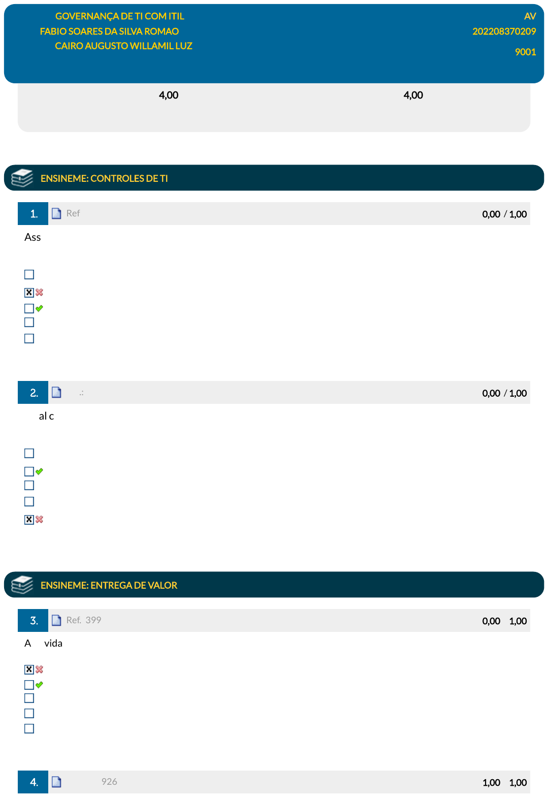 Disciplina: GOVERNANÇA DE TI COM ITIL  AV