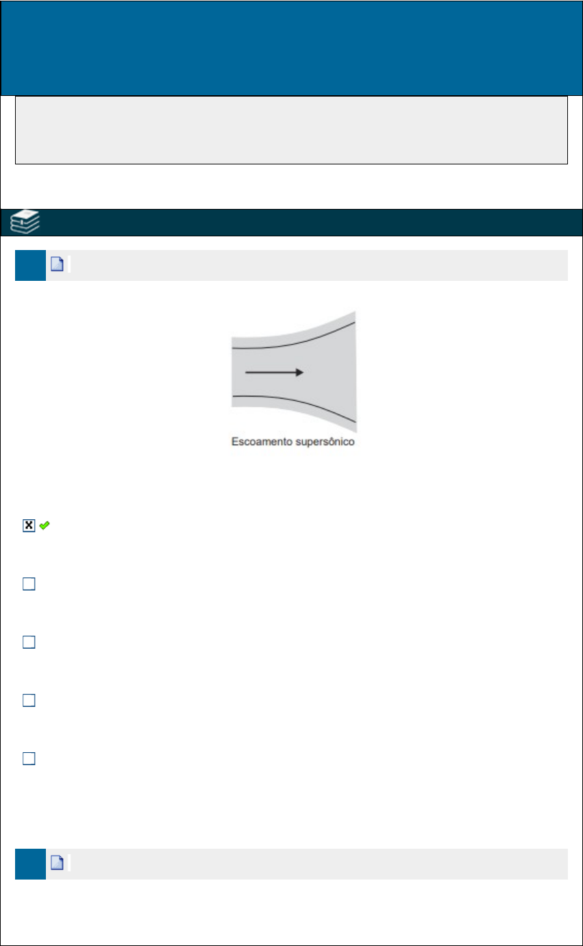 Disciplina: MECÂNICA DOS FLUIDOS AV Aluno: WILLIAN LISBOA DOS SANTOS 202004126083 Professor: LUANDER BERNARDES Turma: 9001 DGT1104_AV_202004126083 (AG) 05/10/2023 09:06:34 (F) Avaliação: 1,00 pts Nota SIA: 1,00 pts Estação de trabalho liberada pelo CPF 09480065959 com o token 747998 em 05/10/2023 09:03:36. EM2120125 - DINÂMICA DOS FLUIDOS 1. Ref.: 5433766 Pontos: 1,00 / 1,00 Em um escoamento supersônico divergente, conforme a figura acima, tem-se Diminuição da pressão e aumento da velocidade. Aumento da pressão e diminuição da velocidade. Diminuição da pressão e diminuição da velocidade. Pressão e velocidade constantes. Aumento da pressão e aumento da velocidade. 2. Ref.: 5433828 Pontos: 0,00 / 1,00 Um fluido escoa em uma tubulação horizontal com comprimento igual a 50m50� e diâmetro igual a 0,05m0,05�. O escoamento ocorre em regime permanente e está hidrodinamicamente desenvolvido. Sabendo-se que o número de Reynolds é igual a 1.000 e que a velocidade média do fluido é igual a 2m/s2�/�, a perda de carga, em m2/s2�2/�2, é de: 64 16 256 32 128 4386 - PROPRIEDADE DOS FLUIDOS 3. Ref.: 7737614 Pontos: 0,00 / 1,00 (CESGRANRIO - 2014 - Adaptada). Os conceitos da mecânica dos fluidos são extremamente importantes em diversas aplicações de engenharia. Ser capaz de expressar fenômenos por meio de descrições quantitativas é fundamental. Nesse contexto, uma variação de pressão ∆P aplicada a um volume de fluido produz uma variação volumétrica relativa. Essa relação é expressa por: O sinal negativo nessa equação indica que um(a) aumento na pressão resulta em um aumento no volume. variação de pressão é sempre negativa. aumento na pressão resulta em uma diminuição no volume. diminuição na pressão resulta em uma redução de volume. variação no volume deve apresentar o mesmo sinal da variação da pressão. 4. Ref.: 7737595 Pontos: 0,00 / 1,00 (CESGRANRIO - 2011 - Adaptada). Os conceitos da mecânica dos fluidos são extremamente importantes em diversas aplicações de engenharia. Ser capaz de expressar fenômenos por meio de descrições quantitativas é fundamental. Nesse contexto, entre os grupos adimensionais importantes na mecânica dos fluidos estão o número de Weber (We) e o número de Euler (Eu): Esses grupos correspondem respectivamente, à razão entre as forças de Inércia e as de tensão superficial; e de pressão e as de inércia. Tensão superficial e as de compressibilidade; e de inércia e as viscosas. Inércia e as de tensão superficial; e de gravidade e as de inércia. Pressão e as de inércia; e de inércia e as de compressibilidade. Inércia e as viscosas; e de pressão e as de inércia. 4387 - ESTÁTICA DOS FLUIDOS 5. Ref.: 7773711 Pontos: 0,00 / 1,00 (CESGRANRIO - 2010 - Adaptado). A Mecânica dos Fluidos é a ciência que estuda o comportamento físico dos fluidos, assim como as leis que regem esse comportamento, seja dinâmico ou estático. Fonte: CESGRANRIO - Petrobras - 2010 - Engenheiro(a) de Equipamentos Júnior - Terminais e Dutos. A figura acima representa um tanque fechado e pressurizado, exposto ao ar atmosférico, contendo ar e óleo (peso específico igual a 8 kN/m3). O tanque possui uma janela de inspeção quadrada com 0,5 m de lado, cuja borda superior está localizada a 2 m abaixo da superfície do óleo. Um manômetro instalado no topo do tanque indica uma pressão de 64 kPa. Nessa situação, afirma-se que o módulo da força resultante (kN) que atua na janela é de: 15,5 20,5 18,5 45,5 82,0 6. Ref.: 7773805 Pontos: 0,00 / 1,00 (CESGRANRIO - 2008 - Adaptado). A Mecânica dos Fluidos é a ciência que estuda o comportamento físico dos fluidos, assim como as leis que regem esse comportamento, seja dinâmico ou estático. Fonte: CESGRANRIO - Petrobras - 2008 - Engenheiro de Petróleo Júnior. Uma comporta quadrada 1 m x 1 m é posicionada a 1 m de profundidade, conforme mostrado na figura. Considerando que para a água ρ=1000 kgm3 e fazendo g=10ms2, a força da água sobre a comporta, em kN, vale: 2 20 5 15 10 4389 - EQUAÇÕES DIFERENCIAIS DE MOVIMENTO DE FLUIDOS 7. Ref.: 7796467 Pontos: 0,00 / 1,00 (Fonte: IE/EA Exame de Admissão ao Estágio de Adaptação de Oficiais Engenheiros da Aeronáutica (EAOEAR) - Versão A, Processo seletivo público, aplicado em 2016, para o cargo de Engenharia Mecânica) Sabe-se que um escoamento incompressível é descrito por: u=Ax2+3 v=Bxy-1 onde A=2 m-1s-1. Sendo as coordenadas em metros, o valor de B é: -2 m-1S-1 2 m-1S-1 3 m-1S-1 1 m-1S-1 -4 m-1S-1 8. Ref.: 7796265 Pontos: 0,00 / 1,00 Para as tensões representada abaixo, assinale a opção que contém somente tensões relacionadas aos efeitos viscosos. (Fonte: Figura 11.7, p. 360, COELHO, J. C. M. Energia e Fluidos: Mecânica dos Fluidos. São Paulo: Blucher, 2016, Vol 2) τxy, τxz. Somente σxx. σxy, τxy. σxx, τxz. σxx, τxy. 4390 - ESCOAMENTO INTERNO 9. Ref.: 7796770 Pontos: 0,00 / 1,00 1,88 0,32 0,64 1,74 0,82 10. Ref.: 7796769 Pontos: 0,00 / 1,00 (Fonte: Fundação CESGRANRIO PETROBRAS TRANSPORTE S.A., Processo seletivo público, aplicado em 09/05/2018, para o cargo de Engenheiro(a) Júnior Processamento - Químico) Um engenheiro precisa transportar água de massa específica 1000 kg/m3 e viscosidade μ = 1 × 10-5Pa ∙ s por uma tubulação com diâmetro de 0,1 m. A bomba entrega a água em um reservatório aberto 10 m acima da bomba. Na seção de recalque da bomba, com 100 m de comprimento linear, existem duas válvulas abertas com comprimento equivalent Leq/D = 8, cada. Além disso, para levar o fluido até o reservatório, foi necessário o uso de dois cotovelos de 90o com Leq/D = 52, cada. Considere o escoamento plenamente turbulento, fator de atrito f = 0,02 e g = 10m/s2. A perda de carga na seção de recalque da bomba, quando a vazão volumétrica na tubulação é de 7,85 × 10-3m3/s, é igual a 7,7 m 5,1 m 1,1 m 4,4 m 3,5 m