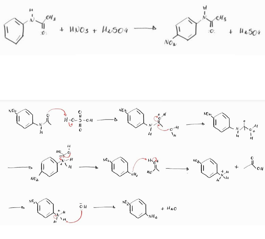 1 UNIVERSIDADE FEDERAL FLUMINENSE INSTITUTO DE QUÍMICA DEPARTAMENTO DE QUÍMICA ORGÂNICA DOCENTE: RODOLFO GOETZE FIOROT DISCENTE: LAÍS MARQUES PIMENTA PRÉ-RELATÓRIO 2: SÍNTESE DE P-NITROACETANILIDA 1. Experimento Síntese da P-Nitroacetanilida 2. Reação Figura 1. Reação da síntese da p-nitroacetanilida, a partir da acetanilida. 3. Mecanismo de reação Figura 2. Mecanismo de reação da p-nitroacetanilida. Fonte: Adaptação de RAGASSI et al, 2016. Fonte: Adaptação de RAGASSI et al, 2016. 2 4. Constantes Físicas dos Reagentes e Produtos Tabela 1. Dados físico-químicos dos reagentes e produtos Ponto de Fusão(ºC) Ponto de Ebulição(ºC) Densidade (g/mL) P-nitroacetanilida 215 Não encontrado 1,39 Acetanilida 113-115 304 1,219 Ácido Sulfúrico 10,31 335 1,84 Ácido Nítrico -41 122 1.41 Ácido acético 16.64 116-118 1.051 Fonte: Merck Millipore 5. Cálculos de massas e volumes utilizados 6. Toxidez dos reagentes e produtos - P-nitroacetanilina: Provoca irritação ocular grave e cutânea; irritação nas vias respiratórias se inalado. 3 - Acetanilida: Toxicidade aguda (categoria 4); nocivo se ingerido; pode causar lesões em contato com a pele; - Ácido Sulfúrico: Provoca queimaduras na pele e lesões oculares graves - Ácido nítrico: Pode causar lesões cutâneas; tóxico por inalação; lesões oculares graves; 7. Reação do teste de confirmação Figura 3. Reação de confirmação para p-nitroacetanilida Mormente, foram adicionados 2 mL de uma solução aquosa 5% de sulfato de ferroso amoniacal, em seguida foi adicionada 1 gota da solução aquosa 10% de ácido sulfúrico e 1 mL da solução de hidróxido de potássio 10% no tubo, seguiu para agitação e será observado uma cor castanho-avermelhado, indicando a presença do grupo nitro. Bibliografia Dados Físicos-Químicos da P-nitroacetanilida. Disponível em https://www.merckmillipore.com/BR/pt/product/4-Nitroacetanilide,MDA_CHEM-820880 [ acesso em 20 de setembro de 2023]. Dados físico-químicos da acetanilida- Merck Millipore. Disponível em: https://www.merckmillipore.com/BR/pt/product/Acetanilide,MDA_CHEM-822344 [acesso em 20 de setembro de 2023] Dados físico-químicos do ácido nítrico. Disponível em: https://www.merckmillipore.com/BR/pt/product/Nitric-acid-690-0,MDA_CHEM-101832 Fonte: Imagem autoral https://www.merckmillipore.com/BR/pt/product/4-Nitroacetanilide,MDA_CHEM-820880 https://www.merckmillipore.com/BR/pt/product/Acetanilide,MDA_CHEM-822344 https://www.merckmillipore.com/BR/pt/product/Nitric-acid-690-0,MDA_CHEM-101832 4 [acesso em 20 de setembro de 2023] Dados físico-químicos do ácido sulfúrico. Disponível em: https://www.merckmillipore.com/BR/pt/product/Sulfuric-acid-95-970-0,MDA_CHEM- 100732 [ acesso em 20 de setembro de 2023] Dados físicos-quimicos do ácido acético- Merck Millipore. Disponível em: https://www.merckmillipore.com/BR/pt/product/Acetic-acid-glacial-1000- 0,MDA_CHEM-100063[ acesso em 20 de setembro de 2023] FICHA DE INFORMAÇÃO DE SEGURANÇA DE PRODUTO QUÍMICO- Acetanilida. Disponível em: file:///C:/Users/Windows/Downloads/822344_SDS_BR_Z9.PDF [ acesso em 20 de setembro de 2023] RAGASSI, Marcelo Victor. Redução e acetilação de nitroaromáticos como proposta de reações na água vermelha (Red water). 2016. 49 f. Trabalho de Conclusão de Curso (Graduação) - Universidade Tecnológica Federal do Paraná, Pato Branco, 2016. https://www.merckmillipore.com/BR/pt/product/Sulfuric-acid-95-970-0,MDA_CHEM-100732 https://www.merckmillipore.com/BR/pt/product/Sulfuric-acid-95-970-0,MDA_CHEM-100732 file:///C:/Users/Windows/Downloads/822344_SDS_BR_Z9.PDF