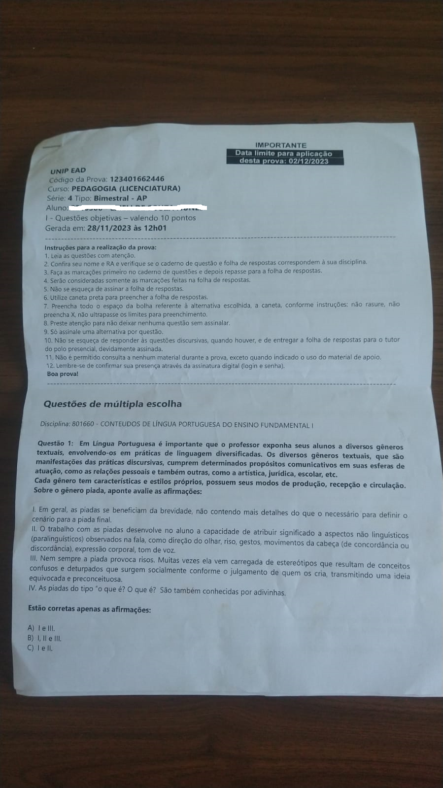 Sobre gênero piada, aponte avalie as afirmacoes: 1. Em geral, as piadas se beneficiam da brevidade, não contendo mais detalhes do que necessário para definir cenário para a piada II. trabalho com as piadas desenvolve no aluno a capacidade de atribuir significado a aspectos não linguísticos (paralinguísticos) observados na fala, como direção do olhar, riso, gestos, movimentos da cabeça (de concordância ou expressão corporal, tom de voz. III. Nem sempre a piada provoca risos. Muitas vezes ela vem carregada de estereótipos que resultam de conceitos confusos e deturpados que surgem socialmente conforme julgamento de quem os cria, transmitindo uma ideia equivocada e preconceituosa. IV. As piadas do tipo "o que é? que é? São também conhecidas por Estão corretas apenas as afirmações:
