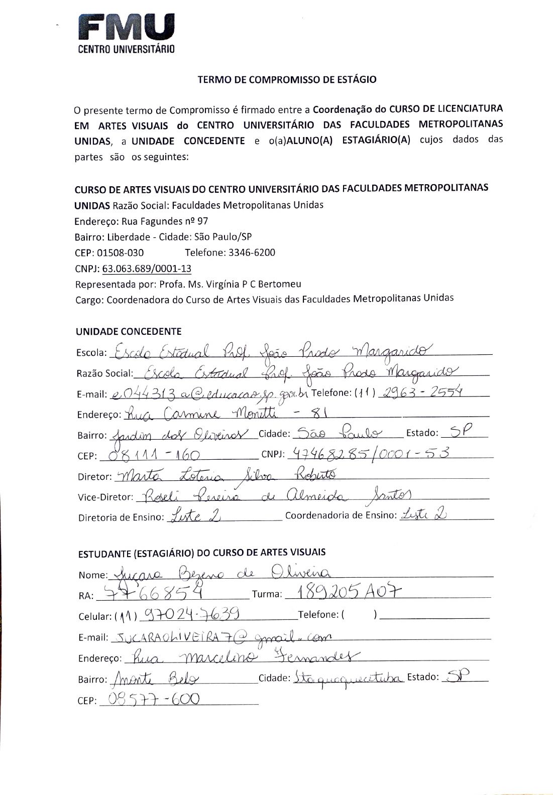 EM ARTES VISUAIS do CENTRO UNIVERSITÁRIO DAS FACULDADES METROPOLITANAS