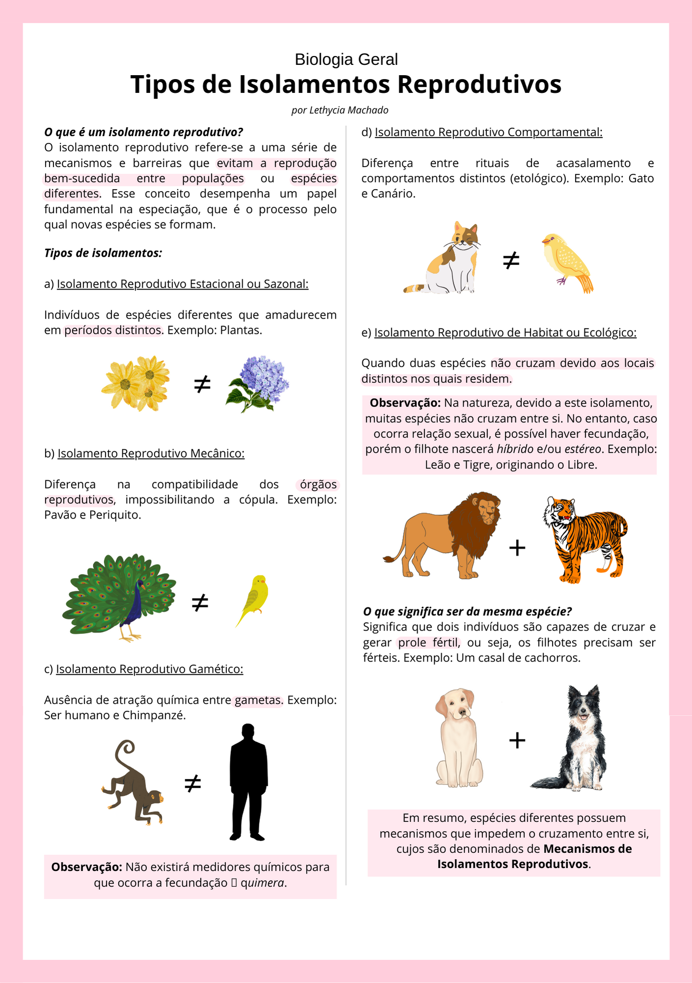 Biologia Geral- Tipos de Isolamentos Reprodutivos [Lethycia Machado]