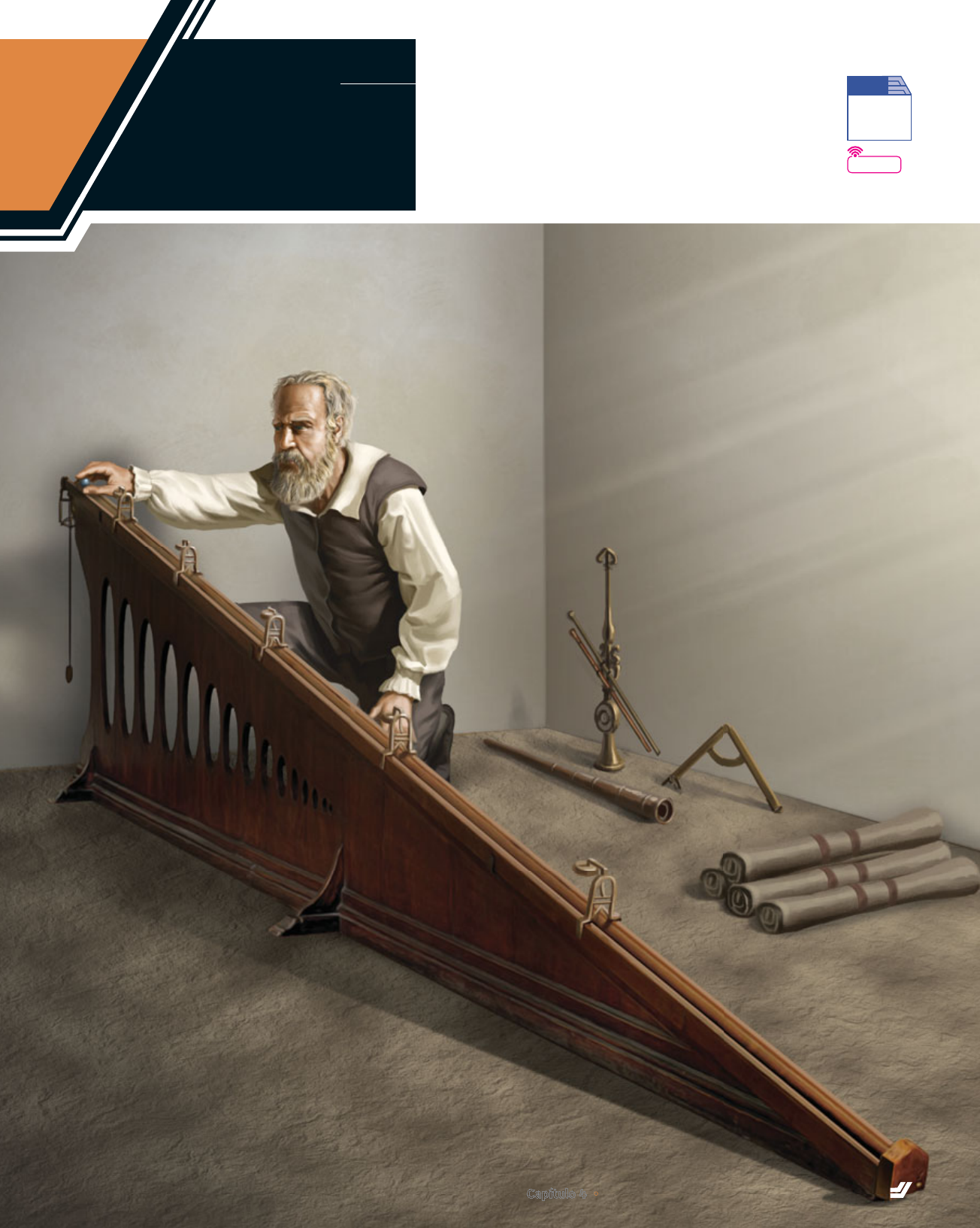 Suspeitando da exatidão da ideia de Aristóteles de que corpos mais pesados caem mais rapidamente que os mais leves, Galileu Galilei realizou vários experimentos sobre a queda dos corpos. Segundo crença não comprovada, ele abandonou bolas do alto da Torre de Pisa. Na verdade, para reduzir a influência de fatores externos que afetam a queda dos corpos, muito difíceis de contornar até hoje, Galileu teria utilizado um plano inclinado, como o que se vê na imagem, uma réplica está em expo- sição no Museo Galileo em Florença. Ao longo de uma rampa retilínea, o movimento de uma esfera é uniformemente variado. Esse movimento é o tema deste capítulo. E B E R E VA N G E LI S TA Capítulo 4 Movimento uniformemente variado (MUV) 49 Movimento uniformemente variado (MUV)4 Capítulo Enem C1: H3 C5: H17 C6: H20 Anotações t = 0 t = 1 s t = 3 s t = 4 s t = 5 s t = 2 s 1 Introdução Um movimento que ocorre com aceleração escalar constante e não nula é denominado movimento unifor- memente variado (MUV). Em linguagem matemática, para um MUV, temos: Uma bola descendo livremente por uma rampa plana e lisa (fig. 1) ou um objeto abandonado sob ação exclusiva da gravidade (fig. 2) são situações nas quais a aceleração escalar dos corpos é constante. Portanto, esses corpos descrevem movimentos uniformemente variados. Figura 1. A aceleração escalar de um corpo em um plano inclinado é constante, porém de valor menor que a aceleração da gravidade. Figura 2. Queda de um corpo com aceleração constante devido à ação exclusiva da gravidade, considerando-se desprezível a resistência do ar. Identificar movimentos com aceleração escalar constante. Reconhecer o movimento uniformemente variado (MUV) quando representado por gráficos, tabelas e funções. Resolver qualitativa e quantitativamente situações que envolvam movimentos uniformemente variados (MUV). Objetivos do capítulo a 5 constante Þ 0 O movimento uniformemente variado pode ocorrer em qualquer formato de trajetória. Se a trajetória for reti- línea, o movimento será chamado de movimento retilíneo uniformemente variado (MRUV). Se a trajetória for uma circunferência, temos um movimento circular uniforme- mente variado (MCUV). Na cinemática escalar, a forma da trajetória não é determinante para a descrição dos movimentos. No es- tudo vetorial dos movimentos, a forma da trajetória está diretamente relacionada a características e propriedades relevantes desses movimentos. 2 Função horária da velocidade do MUV Sendo constante a aceleração escalar nos movimentos uniformemente variados, ela sempre pode ser calculada pela razão D D t v , que representa a aceleração escalar média em um intervalo de tempo qualquer, uma vez que o valor médio de uma constante é o próprio valor da constante. Assim, para um instante t qualquer a partir do instante inicial t0 5 0, em que a velocidade escalar é v0 (denominada velocidade inicial), temos: a 5 D D t v ⇒ Dv 5 a ? Dt ⇒ v 2 v0 5 a ? (t 2 0) ⇒ ⇒ v 5 v0 1 at � A expressão �, acima, é denominada função horária da velocidade do MUV. Gráficos velocidade 3 tempo do MUV Observe que a expressão � é uma função do primeiro grau em t, cuja representação gráfica é uma reta oblíqua. Por esse motivo, dizemos que: No MUV, a velocidade escalar varia linearmente com o tempo. A velocidade inicial v0 é o coeficiente linear da função e a aceleração a é o coeficiente angular, que determina o crescimento ou o decrescimento da função.ILU S TR A Ç Õ E S : L U IZ R U B IO R ep ro d uç ão p ro ib id a. A rt .1 84 d o C ód ig o P en al e L ei 9 .6 10 d e 19 d e fe ve re iro d e 19 98 . Física – Nicolau Torres Penteado50 a . 0 v a b c t0 v0 5 0 a � 0 v a’ b’ c’ t0 v0 � 0 v t0 Δs1 . 0 t1 t2 Δs2 , 0 Δs � 0 v t0 As figuras 3 e 4 mostram as possíveis representações gráficas, em função dos parâmetros v0 e a. As retas a e a’ correspondem a v0 . 0; as retas b e b’ correspondem a v0 5 0; e as retas c e c’ correspondem a v0 , 0. Como já vimos no capítulo 3, no diagrama v 3 t, a área entre a reta e o eixo t , num dado intervalo de tempo, é numericamente igual à variação de espaço Ds do móvel nesse intervalo. Veja as figuras 5 e 6 a seguir. Se, no intervalo de tempo considerado, houver uma parte da área abaixo do eixo de tempo, como na figura 6, essa área representará um deslocamento escalar ne- gativo (Ds , 0).Figura 3. Aceleração escalar positiva. Figura 4. Aceleração escalar negativa. Figura 5. Deslocamento escalar positivo. Figura 6. Entre os instantes 0 e t1, o deslocamento escalar é positivo; entre os instantes t1 e t2, o deslocamento escalar é negativo. Exercícios resolvidos 1. Um móvel, em MRUV, partindo da posição de espaço s0 5 210 m, em t0 5 0, varia sua velocidade escalar com o tempo segundo a função v 5 2 1 4t (SI). Para esse móvel: a) determinar os valores da velocidade inicial v0 e da acele- ração escalar a; b) construir o gráfico v 3 t, para o intervalo 0 < t < 3 s; c) determinar o deslocamento escalar Ds entre os instantes t0 5 0 e t 5 3 s; d) determinar o espaço s correspondente à sua posição em t 5 3 s. Solução a) Pela comparação entre a função horária da velocidade dada e a função v 5 v0 1 at, temos: v0 5 2 m/s e a 5 4 m/s 2 b) Como a função horária da velocidade do MUV é do pri- meiro grau, em t, seu gráfico será linear, bastando apenas dois pontos para obtê-lo. A tabela abaixo mostra os valores usados para isso. t (s) v (m/s) 0 2 3 14 v (m/s) 0 1 2 3 t (s) 14 12 10 8 6 4 2 IL U S TR A Ç Õ E S : L U IZ R U B IO R ep ro d uç ão p ro ib id a. A rt .1 84 d o C ód ig o P en al e L ei 9 .6 10 d e 19 d e fe ve re iro d e 19 98 . Capítulo 4 Movimento uniformemente variado (MUV) 51 c) O deslocamento escalar é numericamente igual à área A do trapézio destacado no gráfico abaixo. v (m/s) 0 1 2 3 t (s) s = AN 14 12 10 8 6 4 2 Assim: Ds 5 A 5 ( ) 2 5 3base ma