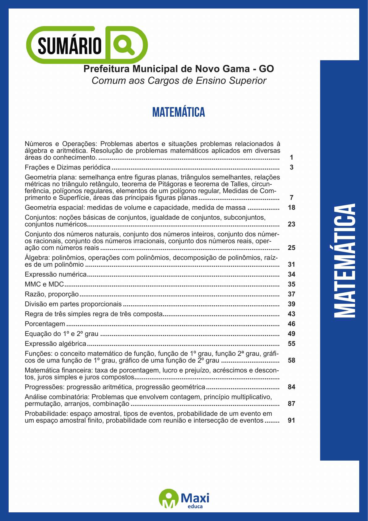 Progressões: progressão aritmética, progressão geométrica ....................................... 84