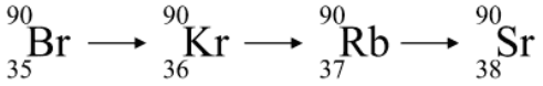 1. IFSP 2011 Estudando o poder de penetração das emissões radioativas, nota-se que as radiações ________ tem alto poder de penetração, podendo atravessar paredes de concreto. As radiações _______ conseguem atravessar tecidos de roupas, papelão, mas não atravessam paredes. Já as radiações _______ tem baixo poder de penetração, conseguindo atravessar objetos muito pouco espessos como folhas de papel. As lacunas desse texto são preenchidas corretamente, na ordem em que aparecem, com as palavras a. alfa, beta e gama. b. alfa, gama e beta. c. beta, gama e alfa. d. beta, alfa e gama. e. gama, beta e alfa. 2. ENEM 2016 A energia nuclear é uma alternativa aos combustíveis fósseis que, se não gerenciada de forma correta, pode causar impactos ambientais graves. O principio da geração dessa energia pode se basear na reação de fissão controlada do urânio por bombardeio de nêutrons. como ilustrado: 235U + n → 95Sr + 139Xe + 2 n + energia Um grande risco decorre da geração do chamado lixo atômico, que exige condições muito rígidas de tratamento e armazenamento para evitar vazamentos para o meio ambiente. Esse lixo é prejudicial, pois a. favorece a proliferação de microrganismos termófilos. b. produz nêutrons livres que ionizam o ar, tornando-o condutor. c. libera gases que alteram a composição da atmosfera terrestre. d. acentua o efeito estufa decorrente do calor produzido na fissão. e. emite radiação capaz de provocar danos à saúde dos seres vivos. 3. Stoodi A emissão de radiações alfa, beta e gama ocorre devido à a. alta estabilidade dos elementos químicos. b. instabilidade de alguns núcleos atômicos. c. formação de compostos moleculares. d. doação de elétrons da eletrosfera. e. quebra de ligações químicas. 4. Stoodi A fusão nuclear, também conhecida como reação termonuclear, é um processo que necessita de grande quantidade de energia para ocorrer. Por definição a fusão nuclear consiste em: a. Junção de núcleos maiores para formação de núcleos pequenos b. Quebra de núcleos grandes e geração de grande quantidade de energia c. Junção de núcleos pequenos para formação de núcleos maiores com grande liberação de energia d. Reação de transformação de um elemento em outro através de liberação de radiação e. Reação que ocorre no sol e nas estrelas pela transformação de núcleos de hidrogênio em núcleos de neônio 5. UNESP 2014 Água coletada em Fukushima em 2013 revela radioatividade recorde A empresa responsável pela operação da usina nuclear de Fukushima, Tokyo Electric Power (Tepco), informou que as amostras de água coletadas na central em julho de 2013 continham um nível recorde de radioatividade, cinco vezes maior que o detectado originalmente. A Tepco explicou que uma nova medição revelou que o líquido, coletado de um poço de observação entre os reatores 1 e 2 da fábrica, continha nível recorde do isótopo radioativo estrôncio-90. (www.folha.uol.com.br. Adaptado.) O isótopo radioativo Sr-90 não existe na natureza, sua formação ocorre principalmente em virtude da desintegração do Br-90 resultante do processo de fissão do urânio e do plutônio em reatores nucleares ou em explosões de bombas atômicas. Observe a série radioativa, a partir do Br-90, até a formação do Sr-90: A análise dos dados exibidos nessa série permite concluir que, nesse processo de desintegração, são emitidas a. partículas alfa. b. partículas alfa e partículas beta. c. apenas radiações gama. d. partículas alfa e nêutrons. e. partículas beta. 6. UNESP 2011 (Adaptada) Em 2011 comemoramos o Ano Internacional da Química (AIQ). Com o tema "Química: nossa vida, nosso futuro", o AIQ-2011 tem como objetivos aumentar o conhecimento do público sobre a química, despertar o interesse entre os jovens e realçar as contribuições das mulheres para a ciência. Daí a justa homenagem a cientista polonesa Marie Curie (1867- 1934), que há 100 anos conquistava o Prémio Nobel da Química com a descoberta dos elementos polônio e rádio. O polônio resulta do decaimento radiativo do bismuto, quando este núcleo emite uma partícula ; em seguida, o polônio emite uma partícula , resultando em um núcleo de chumbo, como mostra a reação. O número atômico X, o número de massa Y e o número de massa M, respectivamente, são: a. 82, 207, 210. b. 83, 206, 206. c. 83, 210, 210. d. 84, 210, 206. e. 84, 207, 208. 7. MACKENZIE 2016 O urânio-238, após uma série de emissões nucleares de partículas alfa e beta, transforma-se no elemento químico chumbo-206 que não mais se desintegra, pelo fato de possuir um núcleo estável. Dessa forma, é fornecida a equação global que representa o decaimento radioativo ocorrido. Assim, analisando a equação acima, é correto afirmar-se que foram emitidas a. 8 partículas α e 6 partículas β. b. 7 partículas α e 7 partículas β. c. 6 partículas α e 8 partículas β. d. 5 partículas α e 9 partículas β. e. 4 partículas α e 10 partículas β. 8. IFCE 2012 Um dos campos da química, largamente utilizado pela medicina é a radiatividade, que é usada na quimioterapia e na radioterapia. Através destes processos, procura-se destruir as células cancerígenas e debelar a doença. Ao se desintegrar, o átomo 86Rn 222 consegue emitir 3 partículas do tipo (alfa) e 4 partículas do tipo (beta). Os números atômicos e de massa do átomo resultante serão, respectivamente, a. Z=211 e A=82. b. Z=82 e A=210. c. Z=82 e A=211. d. Z=84 e A=210. e. Z=211 e A=84. 9. UERJ 2012 Uma das consequencias do acidente nuclear ocorrido no Japão em março de 2011 foi o vazamento de isótopos radioativos que podem aumentar a incidência de certos tumores glandulares. Para minimizar essa probabilidade, foram prescritas pastilhas de iodeto de potássio à população mais atingida pela radiação. A meia-vida é o parâmetro que indica o tempo necessário para que a massa de uma certa qua