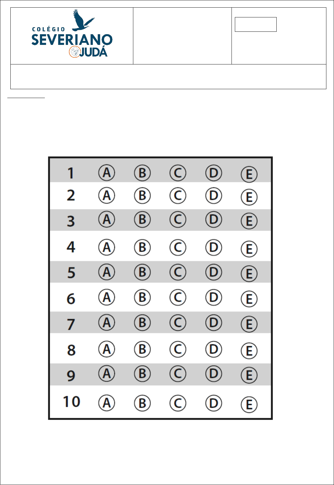 PROVA: Mensal DISCIPLINA: Arte BIMESTRE: 2º Bimestre TURMA: 1EM PROFESSORA Fernanda Colli NOTA _____________________ NOME:________________________________________________________________________Data____________ Instruções: A avaliação será realizada individualmente. Será permitido o uso apenas do mapa mental, produzido em folha específica como componente da avaliação. Preencha o gabarito com caneta azul ou preta. Questões rasuradas não serão consideradas. Questão sem preenchimento no gabarito também não serão consideradas. Prova 2 1- Movimento artístico europeu ocorrido nas primeiras décadas do século XX. O movimento foi iniciado na literatura, através das poesias do escritor Filippo Marinetti: a) Dadaísmo b) Futurismo c) Surrealismo d) Expressionismo e) Cubismo 2- Movimento artístico de caráter anárquico, que surgiu na Suíça em 1916. Principais características: uso de artefatos do cotidiano, retirados contexto, em obras de arte; uso do humor e irreverência; posição contrária ao capitalismo, rompimento com as tradições artísticas: a)Dadaísmo b) Futurismo c) Surrealismo d) Expressionismo e) Cubismo 3- Este movimento de vanguarda artística surgiu em Paris na década de 1920. Principais características: influência da Psicanálise, valorização dos sonhos e imagens inconscientes na elaboração de obras de arte; arte sem relação com a lógica e a razão. a)Dadaísmo b) Futurismo c) Surrealismo d) Expressionismo e) Cubismo 4- Assinale a opção em que todos os movimentos artísticos listados, façam parte da Vanguarda Europeia. a) Simbolismo, Cubismo, Dadaísmo, Expressionismo e Realismo. b) Realismo, Cubismo, Simbolismo, Impressionismo e Futurismo. c) Surrealismo, Cubismo, Naturalismo, Expressionismo e Futurismo. d) Surrealismo, Romantismo, Realismo, Expressionismo e Futurismo. e) Surrealismo, Cubismo, Dadaísmo, Expressionismo e Futurismo. 5- PICASSO, P. Guernica . Óleo sobre tela. 349 × 777 cm. Museu Reina Sofia, Espanha, 1937. O pintor espanhol Pablo Picasso (1881-1973), um dos mais valorizados no mundo artístico, tanto em termos financeiros quanto históricos, criou a obra Guernica em protesto ao ataque aéreo à pequena cidade basca de mesmo nome. A obra, feita para integrar o Salão Internacional de Artes Plásticas de Paris, percorreu toda a Europa, chegando aos EUA e instalando-se no MoMA, de onde sairia apenas em 1981. Essa obra cubista apresenta elementos plásticos identificados pelo: a) painel ideográfico, que enfoca várias dimensões de um evento, renunciando à realidade, colocando-se em plano frontal ao espectador, o que faz com que as imagens fiquem distorcidas. b) horror da guerra de forma fotográfica, com o uso da perspectiva clássica, envolvendo o espectador nesse exemplo brutal de crueldade do ser humano. c) uso das formas geométricas no mesmo plano, sem emoção e expressão, despreocupado com o volume, a perspectiva e a sensação escultórica. d) esfacelamento dos objetos abordados na mesma narrativa, minimizando a dor humana a serviço da objetividade, observada pelo uso do claro-escuro. e) uso de vários ícones que representam personagens fragmentados bidimensionalmente, de forma fotográfica livre de sentimentalismo. 6- (ESPM/2015) -O autor foi o criador do Ready-made, termo criado para designar um tipo de objeto, por ele inventado, que consiste em um ou mais artigos de uso cotidiano, produzidos em massa, selecionados sem critério estético e expostos como obras de arte em espaços especializados como museus e galerias. Ao transformar qualquer objeto em obra de arte, o artista realiza uma crítica radical ao sistema da arte. Assinale a alternativa que mencione respectivamente o nome do artista responsável pelos trabalhos apresentados na questão e o movimento artístico que adotava os procedimentos expostos no enunciado, levando muitos a exclamarem: “Isso não é arte!” Fonte: Carol Strickland. Arte Comentada. a) Marcel Duchamp – Dadaísmo b) Georges Braque – Expressionismo; c) Alberto Giacometti – Surrealismo; d) Henri Moore – Surrealismo; e) Franz Arp – Cubismo 7-( UFPE/2008)- As artes, com suas vanguardas e seus desafios estatísticos, ganharam espaços históricos no mundo capitalista. Picasso, Van Gogh, Salvador Dali, Miró e tantos outros pertencentes a essas vanguardas: a) mantiveram as tradições culturais do Ocidente, reafirmando o valor da estética do classicismo. b) romperam com modelos acadêmicos da época, mudando as regras no mercado das artes. c) foram muito bem aceitos pelos críticos europeus da época, sendo exaltados pelas suas ousadias. d) conseguiram espaço imediato nos grandes museus, tendo uma aceitação popular indiscutível e surpreendente. e) renovaram a forma de fazer arte no Ocidente, mas ficaram restritos ao mundo acadêmico e intelectual do século XX. 8- (Enem/2016) A obra Les demoiselles d’Avignon, do pintor espanhol Pablo Picasso, é um dos marcos iniciais do movimento cubista. Essa obra filia-se também ao Primitivismo, uma vez que sua composição recorre à manifestação cultural de um determinado grupo étnico, que se caracteriza por: a) produção de máscaras ritualísticas africanas. b) rituais de fertilidade das comunidades celtas. c) festas profanas dos povos mediterrâneos. d) culto à nudez de populações aborígenes. e) danças ciganas do sul da Espanha. 9- São informações relacionadas à vanguarda futurista: a) Surgimento a partir de uma crítica de Louis Vauxcelles sobre uma exposição de arte no Salão de Outono, em 1905. b) valorização da cor e das misturas de tintas, que deviam ser feitas na própria tela, enfatizando a pesquisa dos efeitos óticos. c) visão questionadora e crítica da realidade, sugerindo um futuro em que a desigualdade social seja atenuada. d) a pintura futurista apoiava-se em elementos do inconsciente, baseada em teorias da psicanálise de Sigmund Freud. e) tal vanguarda enaltecia a velocidade e o dinamismo surgido 