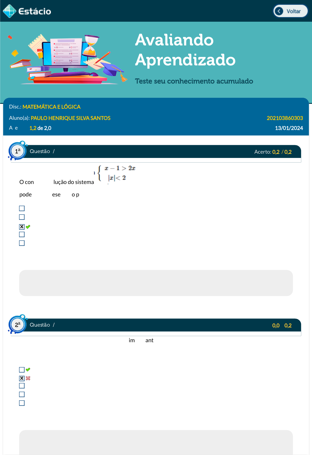 Acertos: 1,2 de 2,0 13/01/2024