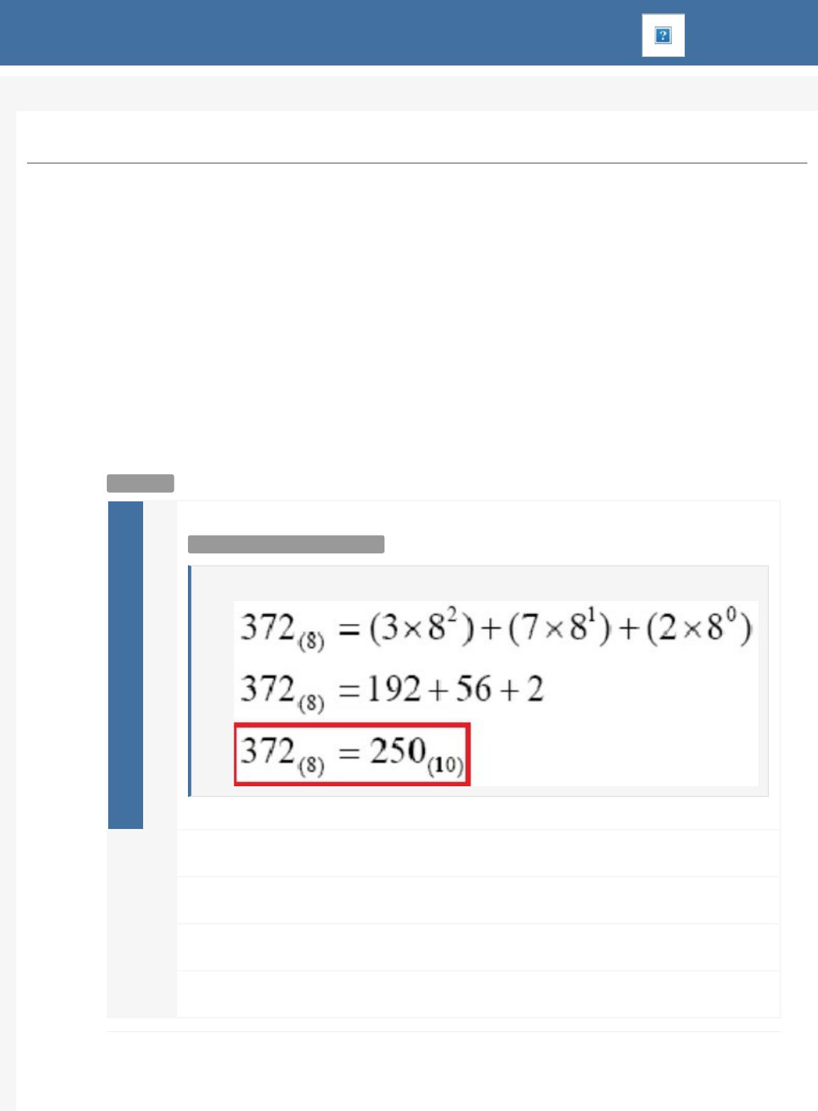 AVA UNIVIRTUS https://univirtus.uninter.com/...oHistorico/9eb%2BmC0TSoegFMxHMneGuA%3D%3D/novo/2/hORs0AHdXvpL4NitDRPWyw%3D%3D[16/09/2023 13:27:49] Voltar CURSO: TECNOLOGIA EM REDES DE COMPUTADORES - DISTÂNCIA Created with Raphaël 2.1.0 AVALIAÇÃO » NOVO Atenção. Este gabarito é para uso exclusivo do aluno e não deve ser publicado ou compartilhado em redes sociais ou grupo de mensagens. O seu compartilhamento infringe as políticas do Centro Universitário UNINTER e poderá implicar sanções disciplinares, com possibilidade de desligamento do quadro de alunos do Centro Universitário, bem como responder ações judiciais no âmbito cível e criminal. Questão 1/10 - Matemática Computacional Qual o resultado da conversão do número OCTAL 372 para DECIMAL Assinale a alternativa com a resposta CORRETA Nota: 10.0 A 250 Você assinalou essa alternativa (A) B 73 C 248 D 72 E 122 Questão 2/10 - Matemática Computacional Considerando os conteúdos ministrados no tema Lógica e Aritmética Binárias, responda: (8) (10) Você acertou! (10) (10) (10) (10) javascript: void(0) javascript:void(0) AVA UNIVIRTUS https://univirtus.uninter.com/...oHistorico/9eb%2BmC0TSoegFMxHMneGuA%3D%3D/novo/2/hORs0AHdXvpL4NitDRPWyw%3D%3D[16/09/2023 13:27:49] Qual a função da da operção XOR? Assinal a Alternativa CORRETA Nota: 10.0 A Detecta a desigualdade na entrada Você assinalou essa alternativa (A) B Somente apresenta um valor na saída quando qualquer dos operandos (entradas) tem valor “1” C Operação semelhante à soma D Operação semelhante a multiplicação E Operação semelhante a divisão Questão 3/10 - Matemática Computacional Com relação a matrizes, sabendo-se que os dados são acessados por sua posição através de chaves ou índices, assinale a alternativa correta que corresponde ao resultado obtido ao acessar os dados da matriz “Carros” apresentada abaixo, com o seguinte índice: Carro [2, 5] Você acertou! Como ilustra o Slide 7/21 da Aula 2 AVA UNIVIRTUS https://univirtus.uninter.com/...oHistorico/9eb%2BmC0TSoegFMxHMneGuA%3D%3D/novo/2/hORs0AHdXvpL4NitDRPWyw%3D%3D[16/09/2023 13:27:49] Nota: 10.0 A Prêmio; B Kadett; C Saveiro; Você assinalou essa alternativa (C) D Chevete; E Fiesta. Questão 4/10 - Matemática Computacional Nos vetores sabemos que os dados são acessados por sua posição através de chaves ou índices. Assinale a alternativa correta que corresponde ao resultado obtido ao acessar os dados do vetor “Carros” apresentado abaixo, com o seguinte índice: Carro [5] Nota: 10.0 A Corcel; B Uno; Você acertou! Resposta: O índice [2, 5] da matriz “Carros” apresentada na questão, indica que será selecionado o dado armazenado na posição da segunda coluna e quinta linha da matriz, ou seja, o valor “Saveiro”. Conforme exemplo abaixo. AVA UNIVIRTUS https://univirtus.uninter.com/...oHistorico/9eb%2BmC0TSoegFMxHMneGuA%3D%3D/novo/2/hORs0AHdXvpL4NitDRPWyw%3D%3D[16/09/2023 13:27:49] C Saveiro; Você assinalou essa alternativa (C) D Pampa; E Kombi. Questão 5/10 - Matemática Computacional Qual o resultado da conversão do número DECIMAL 1000 para HEXADECIMAL? Assinale a alternativa com a resposta CORRETA Nota: 10.0 A 3418 B 418 C 3E8 Você assinalou essa alternativa (C) D 1000 Você acertou! O índice [5] do vetor “Carros” apresentado na questão, indica que será selecionado o dado armazenado na posição 3 do vetor, ou seja, o valor “Saveiro”. Pois o índice [1] Kombi, [2] Chevete, [3] Corcel, [4] Pampa, [5] Saveiro, [6] Vectra, [7] Uno. (10) (16) (16) (16) Você acertou! (16) AVA UNIVIRTUS https://univirtus.uninter.com/...oHistorico/9eb%2BmC0TSoegFMxHMneGuA%3D%3D/novo/2/hORs0AHdXvpL4NitDRPWyw%3D%3D[16/09/2023 13:27:49] E A00 Questão 6/10 - Matemática Computacional Com base na Subtração Binária Assinale a alternativa CORRETA sobre as regras da Subtração Binária Nota: 10.0 A Operação típica de uma porta OR B Operação típica de uma porta AND C Operação típica de uma porta XOR Você assinalou essa alternativa (C) D Operação típica de uma porta XNOR E Operação típica de uma porta NOT Questão 7/10 - Matemática Computacional Com relação a matrizes, sabendo-se que os dados são acessados por sua posição através de chaves ou índices, assinale a alternativa correta que corresponde ao resultado obtido ao acessar os dados da matriz “Carros” apresentada abaixo, com o seguinte índice: Carro [3, 5] (16) Você acertou! Como ilustra o Slide 15/21 da Aula 2 AVA UNIVIRTUS https://univirtus.uninter.com/...oHistorico/9eb%2BmC0TSoegFMxHMneGuA%3D%3D/novo/2/hORs0AHdXvpL4NitDRPWyw%3D%3D[16/09/2023 13:27:49] Nota: 10.0 A Prêmio; B Kadett; C Saveiro; D Palio; Você assinalou essa alternativa (D) E Fiesta. Questão 8/10 - Matemática Computacional Com base no que foi exposto em relação ao uso de vetores e matrizes, analise as afirmativas abaixo e em seguida assinale a alternativa correta: I - Vetores e matrizes são estruturas de dados homogêneas, porém armazenam um número finito de dados; II - Vetores e Matrizes são estruturas de dados elementares na organização e na apresentação das informações; III - Vetores são estruturas homogêneas, pois possuem somente uma dimensão, por outro lado, matrizes são estruturas heterogêneas, pois cada dimensão possibilita armazenar um tipo de dados Você acertou! Resposta: O índice [3, 5] da matriz “Carros” apresentada na questão, indica que será selecionado o dado armazenado na posição da terceira linha e quinta coluna da matriz, ou seja, o valor “Palio”. AVA UNIVIRTUS https://univirtus.uninter.com/...oHistorico/9eb%2BmC0TSoegFMxHMneGuA%3D%3D/novo/2/hORs0AHdXvpL4NitDRPWyw%3D%3D[16/09/2023 13:27:49] diferente; IV - Permitem a construção e a execução de cálculos complexos e a manipulação de grandes volumes de dados em memória; V - São intensivamente utilizados em computação em geral, especialmente em finanças e computação gráfica. Nota: 0.0 A V, V, F, V, V; B F,