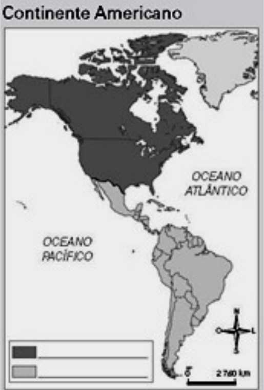 ESCOLA SÃO VICENTE DE PAULA - AVALIAÇÃO DE GEOGRAFIA EJA – 8º/9º ANO / TURMA: A ALUNO(A): ______________________________________ DATA: ____/ 09 / 2013 01. Quais os países que formam a America Anglo-Saxonica ? ___________________________________________ 02. O Continente Americano e dividido em quais partes ? ____________________________________________ ____________________________________________________________________________________________ 03. Observe o mapa e responda: a) A regionalização do mapa se baseia em qual critério? ( ) Geográfico ( ) Sócio-econômico b) Que porção do continente está indicada com cinza claro? __________________________________________ c) Que porção do continente está indicada com preto? ___________________________________________ d) Localize o território brasileiro no mapa e faça um X. e) Quais oceanos banham o continente americano ? _________________________________________ 04. A América Central pode ser dividida em duas partes. Quais são elas ? _________________________________________ 05. Relacione as colunas. ( A ) Desemprego Conjuntural ( ) Ocorre devido a crises econômicas no mercado. ( B ) Desemprego Estrutural ( ) Ocorre devido à mudança na mão de obra humana por máquinas. 06. Relacione a segunda coluna de acordo com a primeira. ( A ) Países Andinos ( ) Haiti e Cuba ( B ) Países Platinos ( ) Argentina e Uruguai ( C ) Guianas ( ) Peru e Chile ( D ) América do Norte ( ) Suriname e Guiana ( E ) América Central ( ) México e Canadá 07. Cite exemplos de dois países desenvolvidos do continente americano e dois países subdesenvolvidos. Países Desenvolvidos: _____________________________________________________ Países Subdesenvolvidos: __________________________________________________ 08. O Brasil faz fronteira com quase todos os países da América do Sul, menos dois. Cite os dois países que não fazem fronteira com o Brasil. ________________________________________________________________________ 09. Quais paises fazem fronteira com a Bolivia ? ____________________________________________________________________________________________________ 10. O estado do Amazonas faz fronteira com quais países ? ____________________________________________________________