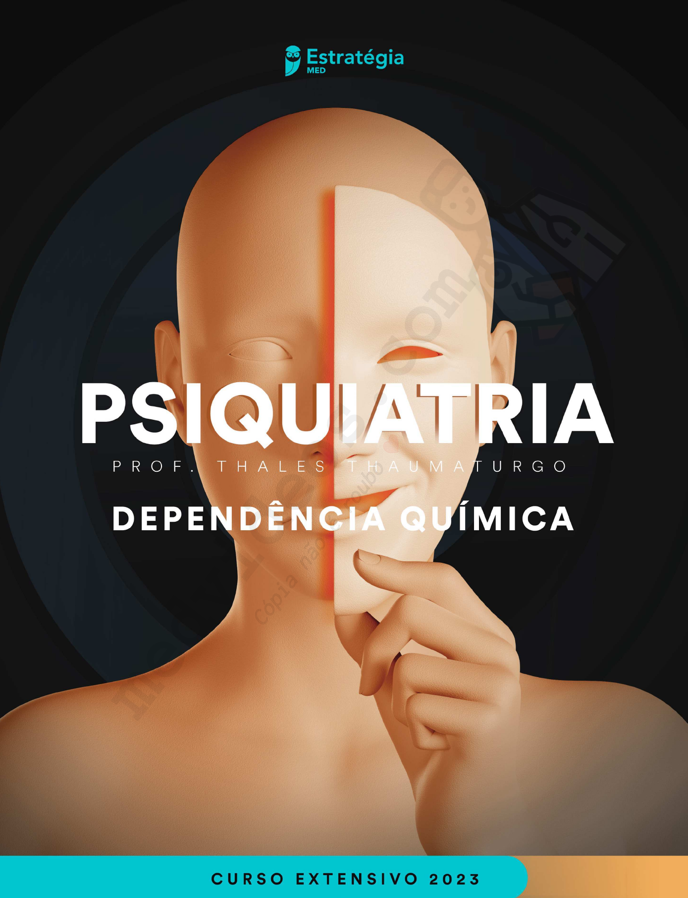 m e d v i d e o s . c o m Có pi a nã o é ro ub o ♥ m e d v i d e o s . c o m Có pi a nã o é ro ub o ♥ m e d v i d e o s . c o m Có pi a nã o é ro ub o ♥ Estratégia MED Prof. Thales Thaumaturgo | Dependência química 2PSIQUIATRIA PROF. THALES THAUMATURGO @thales.thaumaturgo APRESENTAÇÃO: Seja muito bem-vindo, caro Aluno do Estratégia Med e futuro Residente! Sou o professor Thales Thaumaturgo, de Foz do Iguaçu, Paraná, médico formado pela Universidade do Planalto Catarinense – UNIPLAC, em Lages, Santa Catarina, e especialista em Psiquiatria pelo Instituto de Psiquiatria de Santa Catarina – IPq - SC. Como muitos de vocês, estudei em uma faculdade particular, em uma cidade pequena (e muito fria) do interior, localizada na serra catarinense. Ao mesmo tempo que isso me distanciou um pouco dos grandes polos acadêmicos, centros de pesquisa e das instituições mais renomadas do país, também me deu a chance de colocar “a mão na massa”. Isso aconteceu porque os alunos da faculdade em que estudei prestavam assistência médica para quase toda a cidade, com muitas oportunidades de aprendizado na “vida real”, associado a uma ótima carga teórica de ensino e grandes professores, que se tornaram amigos e colegas de profissão. Após minha formação na faculdade, resolvi partir logo para a Residência Médica. Prestei muitas provas, em diversos estados do país, e conheci inúmeras bancas organizadoras durante minha preparação para entrar na Residência Médica. Vou contar para você: quando saí da faculdade, não tinha certeza de que carreira médica deveria seguir, por isso prestei provas para diversas especialidades. Na época, fui aprovado em Psiquiatria, Neurologia, Radiologia e Diagnóstico por Imagem, além de Clínica Médica. m e d v i d e o s . c o m Có pi a nã o é ro ub o ♥ https://www.instagram.com/thales.thaumaturgo/ https://www.instagram.com/thales.thaumaturgo/ m e d v i d e o s . c o m Có pi a nã o é ro ub o ♥ Estratégia MED Prof. Thales Thaumaturgo | Dependência química 3PSIQUIATRIA Dentre todas as opções em que havia sido aprovado, escolhi a especialidade que considerava a mais cômoda para os meus planos de vida: Radiologia e Diagnóstico por Imagem. Era na minha cidade, eu estaria perto da minha família, dos meus amigos, com o hospital a poucos quilômetros da minha casa, na cidade onde eu já tinha contatos profissionais e já estava trabalhando em plantões nas emergências dos serviços de toda a região. Na verdade, já estava aprovado e prestes a iniciar a Residência de Psiquiatria, quando um amigo me perguntou durante um plantão: “você vai prestar a prova para Radio?” – eu nem sabia que, naquela altura, meados de fevereiro, ainda haveria uma prova de Residência Médica na cidade. Resolvi tentar. Poderia ter escolhido entre tentar a Radio, Gineco ou Anestesio. Passei em segundo lugar em Rádio. Mas, rapidamente, descobri na prática que o comodismo pode ser um grande erro. E, para mim, foi. Não havia escolhido o que, de fato, queria fazer, havia sido seduzido por uma aparente comodidade. Após a empolgação inicial, quando a fase da novidade já havia acabado, estava vivendo uma rotina que não me agradava e logo percebi que não estava feliz. Tive ainda mais certeza disso lá pelo meio do R1, quando estava dando um plantão noturno de ultrassom no hospital. Só pensava nas minhas possibilidades, culpava-me constantemente pelo meu “erro”, achava que tinha “jogado um ano inteiro da minha vida fora”, que tinha “ficado para trás”. Nessa noite, procurei um dos meus preceptores, que estava no plantão da tomografia, e perguntei de maneira direta: “Professor, quando você percebeu que fez a escolha certa com a Radiologia?” Ele me respondeu: “Desde o meu primeiro dia na Residência. Eu me encontrei nisso aqui. Minha mãe não entende direito o que eu faço, fala que eu sou raio-xizeiro”. Depois disso, ainda levei uns meses para criar a coragem necessária para recomeçar. Mas, um dia pela manhã, lá pelo fim do ano, fui até a direção do hospital e pedi meu desligamento da Residência. Foi um dos dias mais estranhos que tive na vida, estava muito triste por abandonar um curso que não gostava, mas senti que finalmente tinha feito o que era preciso. Demorei alguns meses para perceber que tudo o que tinha vivido não foi uma perda de tempo. Aprendi muito profissionalmente, mas aprendi muito mais pessoalmente. O desconforto me fez crescer e isso não tem preço. A partir de então, voltei a dar plantões, estudei por algumas semanas na minha casa e encarei novamente as provas, dessa vez decidido: queria entrar na Residência de Psiquiatria. Entrei. Durante minha Residência em Psiquiatria, conheci uma outra realidade e tive a oportunidade de trabalhar em grandes hospitais na região de Florianópolis, como o Hospital Universitário da UFSC e meu querido IPq – SC, hospital de internação psiquiátrica, com cerca de 300 leitos, onde fiz grandes amigos, conheci profissionais incríveis, atendi pacientes que marcaram minha vida, aprendi o belo ofício da Psiquiatria (que hoje tenho o prazer de ensinar). Foi lá onde, finalmente, descobri o que gostaria de fazer para o resto de minha vida. Foi ali, a duras penas, que percebi que minha faculdade tinha me preparado à altura para encarar esse grande desafio profissional. Hoje, sou muito realizado com as minhas escolhas e muito grato por tudo que aprendi na faculdade e nos meus anos de Residência Médica, seja em Rádio ou Psiquiatria. Acredite em mim, uma boa Residência faz toda a diferença em nossa carreira, nossa vida e no que podemos proporcionar a nossos pacientes! Por isso, estou aqui para ajudá-lo a conquistar sua sonhada vaga e espero que, em alguns anos, você também possa olhar sua trajetória e sentir orgulho dela. Então, digo por experiência própria, siga o caminho que lhe trará realização profissional, mas, acima de tudo, que
