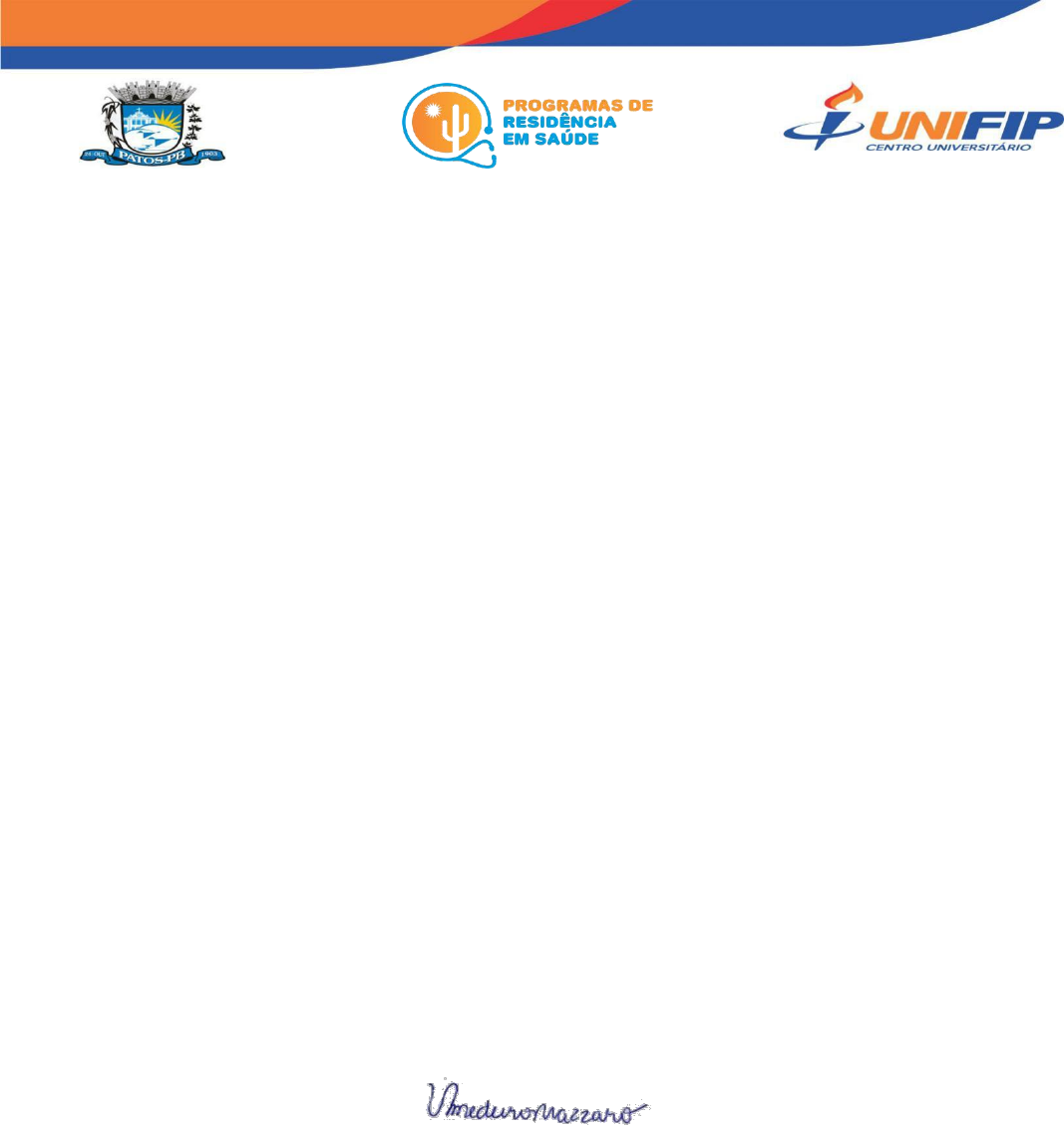 1 PREFEITURA MUNICIPAL DE PATOS CENTRO EDUCACIONAL DE ENSINO SUPERIOR DE PATOS LTDA CENTRO UNIVERSITÁRIO DE PATOS – UNIFIP COMISSÃO DE RESIDÊNCIA MÉDICA – COREME RETIFICAÇÃO DO ENSALAMENTO DA PROVA TEÓRICA OBJETIVA DO EDITAL Nº 002/2023/SMS/UNIFIP/PATOS A Secretaria Municipal de Saúde de Patos-PB (instituição proponente) e o Centro Universitário de Patos - UNIFIP (instituição formadora), por meio da Comissão Organizadora do Processo Seletivo para ingresso nos Programas de Residência Médica em Medicina de Família e Comunidade, Clínica Médica e Psiquiatria, no uso de suas atribuições legais, RESOLVE: 1. Retificar o ensalamento da prova teórica objetiva devido a uma reforma que acontecerá no bloco B. Segue no anexo 1 o ensalamento retificado. 2. Comunicar que todas as demais determinações/procedimentos constantes no referido Edital continuam válidos. Quaisquer outras informações serão veiculadas pelo site institucional: https://unifip.edu.br/inicio. Patos – PB, 19 de janeiro de 2024. VANDEZITA DANTAS DE MEDEIROS MAZZARO Presidente da COREME Presidente da Comissão Organizadora do Processo Seletivo 2 ANEXO 1 - ENSALAMENTO DA PROVA TEÓRICA OBJETIVA DO EDITAL Nº 002/2023/SMS/UNIFIP/PATOS A Comissão do Processo Seletivo ressalta que a aplicação da prova será no dia 21/01/2024, de forma presencial na sede do UNIFIP-Patos, situada a rua Horácio Nóbrega, S/N, Bairro Belo Horizonte – Patos/PB. Segue na tabela abaixo o detalhamento dos horários. O candidato deverá comparecer ao local de prova munido de caneta esferográfica transparente (tinta azul ou tinta preta) e portando documento de identificação com foto válido pelo presente edital. Não será publicado a versão virtual do caderno de questões no site oficial do UNIFIP, portanto, caso o candidato queira, após 2 (duas) horas do início da prova, ele poderá deixar o local da prova levando o caderno de questões (versão impressa). DATA DA PROVA: 21/01/2024 LOCAL DE REALIZAÇÃO DO EXAME: UNIFIP/BH/PATOS - Bloco H HORÁRIO DE ABERTURA DO PORTÃO DA GUARITA 1: 13h15 HORÁRIO DE FECHAMENTO DO PORTÃO DA GUARITA 1: 13h50 INÍCIO DA PROVA: 14h TÉRMINO DA PROVA: 18h SALA: H16 BLOCO: H (2ºANDAR) SEQ. NOME 1. AIRTON GUERREIRO VIDAL FILHO 2. ALICIA SUZANA CAVALCANTI ALVES 3. ALINE DANTAS BEZERRA GONÇALVES 4. AMANDA CÉLIA FERNANDES SAMPAIO 3 5. AMANDA FLORÊNCIO ALVES SILVA 6. AMARILES ARAUJO LACERDA 7. ANA BARBARA XAVIER LUCIANO LUCENA 8. ANA BEATRIZ ONIAS ALVES DA SILVA 9. ANA CAROLLYNE ABRANTES ESTRELA 10. ANA FLAVIA NIVARDO LÓSSIO ROCHA 11. ANA VITÓRIA DE SÁ CAVALCANTE 12. ANDERSON DE OLIVEIRA VIANA 13. ANDRÉ OLIVEIRA FERRO 14. ANDREZZA VASCONCELOS DO VALE AGUIAR 15. ANNA CAROLINNE ARAUJO ROCHA 16. ANTONIO DE PÁDUA BATISTA JÚNIOR 17. ARIAN SANTOS FIGUEIREDO 18. ARTHUR ARAUJO DA ROCHA SARMENTO 19. AUCELIA CRISTINA SOARES DE 20. AYSSA LETÍCIA VIEIRA PEREIRA TARGINO 21. BRUNO MORAIS BALDUINO DA NOBREGA 22. BRUNO NASCIMENTO BARBOSA 23. CAIO HENRIQUE DE OLIVEIRA ABRANTES 24. CINTHIA OLIVEIRA LIMA 25. CINTIA SILVA OLIVEIRA 26. DANIEL DE ARAÚJO PAULINO 27. DANILO NOGUEIRA DE CARVALHO 28. DAVID ALEX MAGALHÃES BARREIRA 29. DAVID DE SOUSA BEZERRA DE MENEZES 4 30. DAVYD LIMA NOGUEIRA 31. DAYWISON THALES SALES MARTINS 32. DIEGO DEHUEL JÁCOME ALVES 33. DIÓGENIS BARBOSA DE MOURA 34. EDNALDO SÁTIRO DE ALENCAR DANTAS 35. EDUARDO ALBERTO SOARES GALDINO SALA: H17 BLOCO: H (2ºANDAR) SEQ. NOME 1. ELIZANDRA MEDEIROS 2. ELIZÂNGELA ARAÚJO GAMBARRA 3. ELTON DE SOUZA LEITE 4. EMANUELLY GOMES DÁRIO SANTOS 5. EMERSON HELDER MEDEIROS TEIXEIRA 6. ÉRICO VALLÉRIO FERREIRA DE SOUZA 7. ERIKA RUANNA ALENCAR DA SILVA 8. FELIPE COUTINHO VASCONCELOS 9. FELIPE DIEGO SANTOS FONSECA 10. FLÁVIA THALIA GUEDES FARIAS 11. FRANCISCO EBIOSCLEBIO FURTADO 12. GABRIEL SANTOS DA CRUZ 13. GABRIELLA CORREIA OURO 14. GABRIELY ALVES DA COSTA 15. HELYSON DA NOBREGA DINIZ 16. HENRIQUE MELLO RAPOSO AZEVEDO 5 17. HIAGO ALVES DE FREITAS ROSADO 18. HUGO LEONARDO ANDRADE FEITOSA 19. IARLA FERREIRA PINHO DA SILVA 20. IGOR MENDES LIMA 21. INGRID JANINE GOMES VIEIRA DE 22. ISABEL CRISTINA MEDEIROS DANTAS 23. ISRAEL LEITE ALVES JUNIOR 24. ISRAEL SANTOS DE FIGUEIREDO 25. IVONETE FORMIGA GARCIA 26. JOÃO EDUARDO MIRANDA LIMA 27. JOSE AUGUSTO FERREIRA GURGEL 28. JOSE IDYGLEIKSON GUEDES MEDEIROS 29. JOSÉ NILSON SANTIAGO SEGUNDO 30. JULIANA EMÍDIA DO NASCIMENTO COSTA 31. KALINA LÍGIA ALVES DE MEDEIROS 32. KARLA KALENE FERNANDES MELO 33. KAROLINE NÓBREGA 34. KELVIN RENNER GARCIA 35. KLEBIANY DA SILVA QUIRINO ALMEIDA SALA: H18 BLOCO: H (2ºANDAR) SEQ. NOME 1. LAÍS DE OLIVEIRA BATISTA 2. LARA LOPES DE SOUZA 3. LARISSA THAÍS CRUZ 4. LENAR NUNES VEIGA FILHO 6 5. LILLIAN RODRIGUES FARIAS 6. LIZANDRA PINHEIRO DO NASCIMENTO 7. LOURINALDO GUIMARÃES MOTTA NETO 8. LUCAS DANTAS GOMES GOUVEIA 9. LUCAS ESMERALDO 10. LUCINARA MORAIS SANTOS 11. MANOEL VERAS DE FREITAS TERCEIRO 12. MARCUS WINICIUS MENDES FORMIGA 13. MARIA EDUARDA CABRAL CRISPIM 14. MARIA THEREZA DE FREITAS LEITE 15. MARIANA SOARES DE ARAÚJO 16. MARINA GOUVEIA SOUTO MAIA 17. MARINA LUIZ MOURA LEAL 18. MATHEUS DANTAS MORAES 19. MATHEUS HENRIQUE OLIVEIRA MARTINS 20. MAYRLLA MYRELLY VIEIRA FORMIGA 21. METTON RIBEIRO LOPES E SILVA 22. MIGUEL LOPEZ VALDES 23. MIRELE ESTRELA SILVESTRE 24. MYRNA MARCIONILA XENOFONTE 25. NAIR DE SOUZA LUSTOSA ANDRADE 26. NARA LUANNE SILVA SALES 27. NATÁLIA BARROS BARBOZA DINIZ 28. NATANYELLE DA SILVA BRAGA LEITE 29. NEYANDERSON GOMES LANDIM 30. PABLO ALMEIDA DE GÓIS 31. PALOMA LÍVIA ALMEIDA DE LUCENA 32. PAULA BARROS BORGES DE OLIVEIRA 33. PAULA CRISTINA MARTINS MARTINS 34. PAULO ROGÉRIO PEREIRA 7 35. PEDRO ELIODORO DE OLIVEIRA FILHO SALA: H19 BLOCO: H (2ºANDAR) SEQ. NOME 1. PEDRO HENRIQUE ALVES SILVA 2. PEDRO IKARO RODRIGUES DE ANDRADE 3. PRISCYLLA OLIVEIRA 4. RAFAEL EDUARDO DE ASSIS 5. RAFAEL GOMES DE LUCENA 6. RAFAEL MENDES 7. RAQUEL DANTAS ALVES FIGUEIREDO 8. REBECA DIAS RODRIGUES ARAUJO 9. RHISSIA BARBOSA PALMEIRA LIMEIRA 10. ROMARYO M. ALVES DE SÁ 11