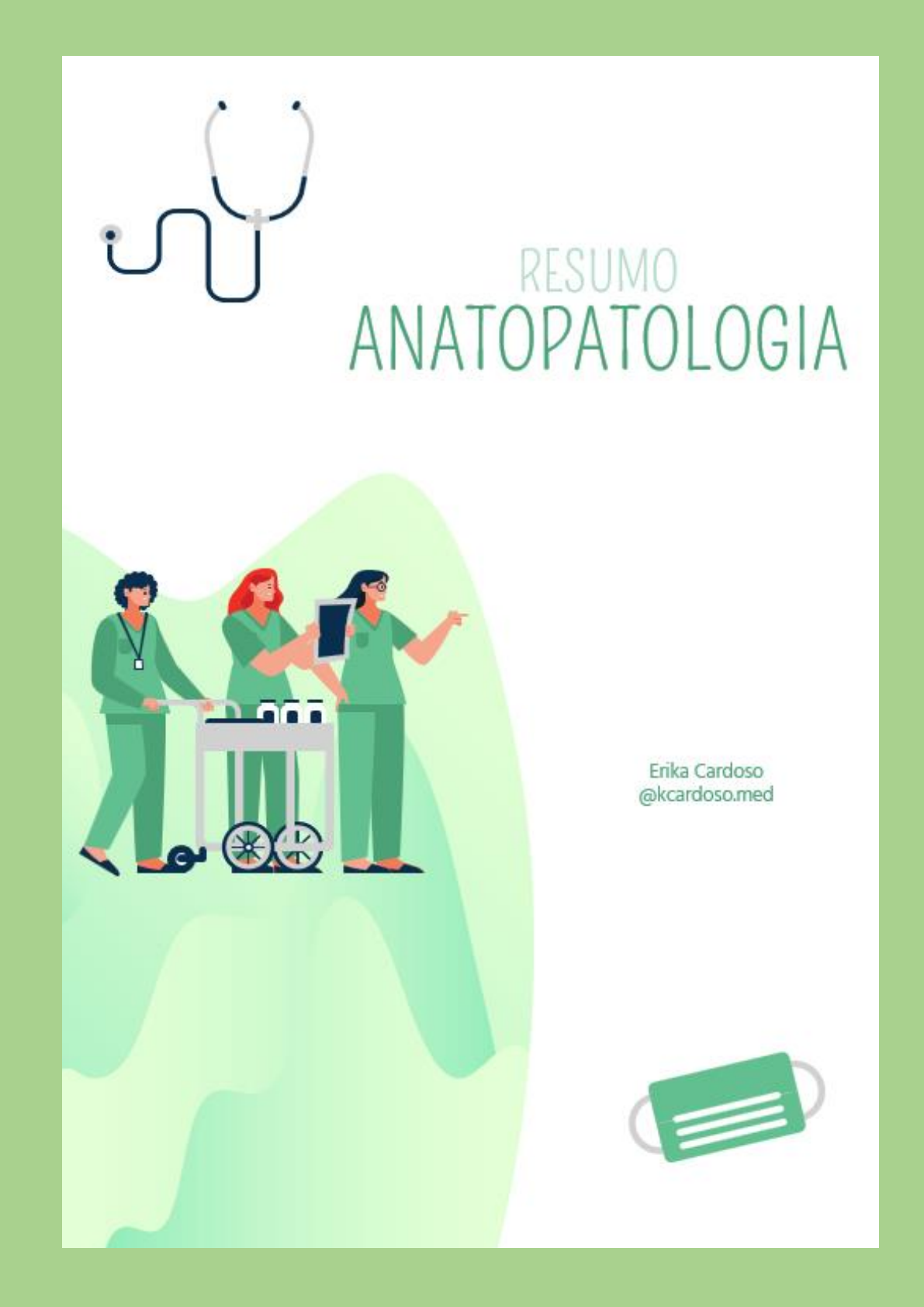Erika Cardoso @kcardoso.med / Licenciado p: Maria Luiza Duarte Saraiva 18/08/2022 1 Erika Cardoso @kcardoso.med / Licenciado p: Maria Luiza Duarte Saraiva 18/08/2022 2 Quanto ao compartilhamento não autorizado! Art. 28 e 29 da LEI N9.610 de 19 de FEVEREIRO DE 1998, eu Erika Ferraz dos Anjos Cardoso, venho declarar expressamente a PROIBIÇÃO de qualquer compartilhamento do material adquirido. Não haverá tolerância quanto a reprodução, cópia ou compartilhamento dos resumos sem prévia autorização. =) O conteúdo desse resumo é vedado (a), por quaisquer meios e a qualquer título, a sua reprodução, cópia, divulgação ou distribuição, sujeitando-se aos infratores à responsabilização civil e criminal Erika Cardoso @kcardoso.med / Licenciado p: Maria Luiza Duarte Saraiva 18/08/2022 3 Introdução 4 Lesão Celular 5 Fatores Inespecíficos da Lesão Celular 11 Adaptación: tipo de respuesta celular al stress 21 Acúmulos Celulares 26 Inflamação 34 Questionario P1 44 Transtornos Hemodinâmicos 51 Neoplasias 58 Questionario P2 63 Questionario Prova Final 71 Erika Cardoso @kcardoso.med / Licenciado p: Maria Luiza Duarte Saraiva 18/08/2022 4 Definição de anatomia patologia: é uma rama da patologia, que se encarga do estudo de cambios morfológicos / estruturais que aparecem nas células, tecidos ou órgãos como consequência das enfermidades A anatomia patológica pode estudar de duas formas: Macroscópica microscópica Por exemplo, na hipertensão tem uma insuficiência cardíaca diastólica, a parede do coração engrossa, as cavidades diminuem de tamanho, tem que bombear com mais força, com isso acaba não enviando sangue para a circulação, isso observamos de forma macroscópica Na semiologia vemos a anamnese e exame físico, na anatopato tem a autopsia e biopsia Na autopsia / neopsia vemos a causa de morte, na biopsia se determina a ciência certa a causa certa da patologia Na biopsia se pode tirar por: Raspado PAG - Punção por agulha grossa: feito em órgão maciço PAAF- Punção aspirativa por agulha fina: feito em órgãos superficiais Endoscopia Citologia: por exemplo o Papanicolau Aspiração citológica: feito pela boca Cirúrgica: tem que solidificar o tecido com parafina, cortar, tencionar, e ver no microscópio (pós-operatório), ou também é feito um congelamento durante a cirurgia (pré-operatório) O tratamento médico pode ser de 3 tipos: curar, calmar e consolar Definição de anatomia patologia? é uma rama da patologia, que se encarga do estudo de cambios morfológicos / estruturais que aparecem nas células, tecidos ou órgãos como consequência das enfermidades Quais outras áreas também são rama da patologia? etiologia, fisiopatologia, semiologia, clinica A anatomia patológica pode estudar de duas formas, quais são? forma macroscópica e microscópica Na semiologia vemos a anamnese e exame físico, na anatopato tem a autopsia e biopsia, explique cada uma? Autopsia / neopsia: vemos a causa de morte Biopsia: se determina a ciência certa a causa certa da patologia Na biopsia se pode tirar como? Raspado PAG - Punção por agulha grossa: feito em órgão maciço PAAF- Punção aspirativa por agulha fina: feito em órgãos superficiais Endoscopia Citologia: por exemplo o Papanicolau Aspiração citológica: feito pela boca Cirúrgica: tem que solidificar o tecido com parafina, cortar, tencionar, e ver no microscópio (pós-operatório), ou também é feito um congelamento durante a cirurgia (pré-operatório) Erika Cardoso @kcardoso.med / Licenciado p: Maria Luiza Duarte Saraiva 18/08/2022 5 A homeostase é um equilíbrio, é uma forma de vida que a célula tem, ou seja, ela trabalha de uma maneira boa A célula gasta energia para fazer suas funções, e também gasta energia para permanecer em homeostase (em equilíbrio) Estado de equilíbrio celular necessário para manter a função, tem que ter um equilíbrio de: pH Concentração de íons (Na, K, CI, bicarbonato) Glicemia Pressão parcial de O2 Temperatura: varia entre 35,5 e 36,9, se diminui a atividade enzimática diminui, se aumentar ela desnaturaliza Se isso muda, isso muda a sua homeostasia e a célula entra em um estado de estresse celular La célula posee un límite estrecho para cumplir su función, este límite viene dado por: Estado metabólico Um exemplo é, a célula intestinal, necessita de grandes quantidades de energia, já que o transporte na maioria das vezes é contracorrente, para conseguir ATP tem que romper a molécula de glicose e degradar Já a célula adiposa não utiliza muito ATP, se tem uma alteração na temperatura, ele acaba não sofrendo tanto igual ao enterócito, que ele sim precisa de muito ATP Ou seja, isso vai depender da capacidade metabólica de cada célula O enterócito tem muita atividade metabólica, e quanto mais tem atividade metabólico, menos pode variar a alterações de oxigênio, temperatura Diferenciación y especialización Todas células do corpo provem de um ovulo fecundal, que se converte em todos os tipos de celulares O neurônio, célula cardíaca, célula muscular estriada tem 46 cromossomas, todos iguais, porém durante a embriogênese, dentro do útero da mãe, tem a diferenciação de tipos celulares Por exemplo, esse neurônio produz serotonina, a célula cardíaca bombeia sangue, célula muscular estriada nos permite o movimento Mas todas as células têm 46 cromossomas iguais, onde um produz serotonina, os outros dois actina e miosina Isso é chamado de diferenciação e especialização celular, cada um tem sua função de produzir algo Ou seja, o neurônio não pode variar sua ‘alimentação’, já que ela depende da glicose, já a célula hepática pode converter liquido em glicose e pode enviar a célula cardíaca Se a glicose cai para abaixo de 60, o neurônio não vai sobreviver, já que depende 100% da glicose Células vecinas Por exemplo, há 2000 células hepáticas no fígado, se aparece um vírus de hepatite A, d