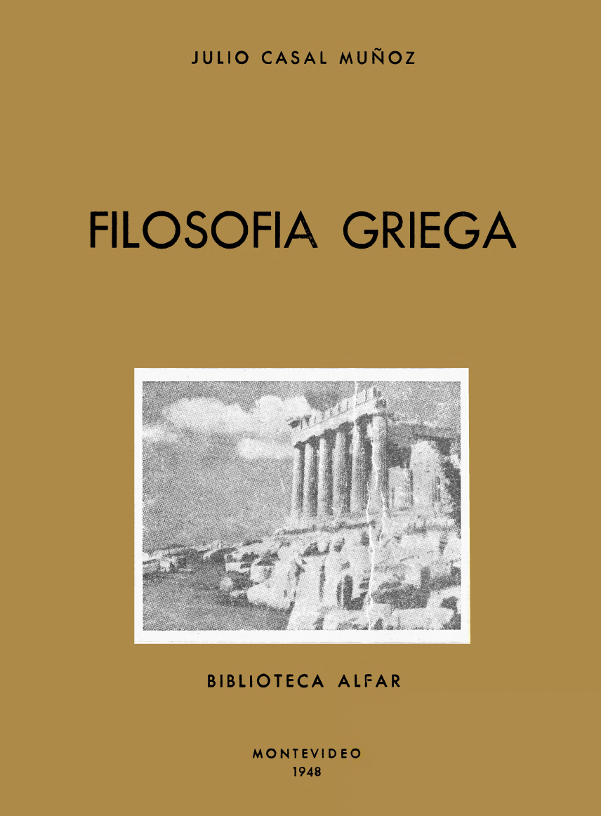 JUL IO C A S A L MUÑOZ FILOSO FIA G RIEG A BIBLIOTECA ALFAR M O N T E V I D E O 1948 BIBLIOTECA ALFAR A R B O L COLINA DE LA MUSICA Julio J. Casal LA EXPRESION HEROICA Vicente Basso Maglio FLOR CERRADA LINEA DEL ALBA Juvenal Ortiz Saralegui CANCION Esther de Cáceres LOS PECHOS NUBLADOS Alejandro Laureiro HERMANO POLICHINELA Jesualdo LIBRO DE PAUSAS Cipriano S. Vitureira A MEDIA VOZ Josefina Lerena Acdo. de Blixen ALREDEDORES DEL SILENCIO Carlos, M. Solari CUNA DE RIO Marynés Casal Muñoz FILO SO FIA G R IEG A JULIO C A S A L MUÑOZ Profesor de Filosofía en los Institutos Normales F ILO SO FIA G RIEG A P rimera P arte de S íntesis de la. F ilosofía U niversal B I B L I O T E C A A L F A R M O N T E V I D E O T I P O G R A F I A A T L A N T I D A Buenos Aires, 42 9 1948 A mi padre, el Poeta Julio J. Casal. Derechos Reservados Es propiedad N O T A P R E L I M I N A R “Los sistemas de los filósofos son pensamientos vivos. Buscan- co en el libro el medio de resu citar estos pensamientos, es como puede esperarse que llegarán a hablarnos,,. Boutroux. El principal mérito de este marmol que me com plazco en presentar, consiste en darnos una visión sen cilla y clara de las doctrinas filosóficas, ajustándose a un exacto concepto de lo que debe ser la historia de la filosofíaSegún este punto de vista —que ha sido expuesto especialmente por Benedetto Croce— la filo sofía está 'tanto en la ecPoética y Retórica” como en la “Metafísica” de Aristóteles, en la “Crítica del Juicio” de Kant, no menoti que en su “Crítica de la Razón pura”; y no está nunca fuera de los diversos tratados comcernientes a las llamadas “partes espádales” de la filosofía. El defecto que Croce señala en la historio grafía de la filosofía, es precisamente este prejuicio de hacer de ella un tratado de la parte general de esta historia, con exclusión de las partes especiales,• y pro cede —según el filósofo italiano— de la antigua idea de una Ontología o Metafísica, como ciencia de un — 5 JU U O CASAL MUÑOZ mundo ideal, del cual la naturaleza y el hombre serían actuaciones más o menos imperfectas. Como con secuencia de ello, la parte quizá más viva y ge- nuina de la filosofía, concerniente al llamado' mundo humano y natural, queda * substraída —como fi losofía especial— de la verdadera y propia historia de la filosofía, que sería la de la filosofía general. Con semejante amputación, aquellos problemas generales no resultan ya bien inteligibles: las doctrinas han perdido su carácter integral. A lo largo de las páginas qUe siguen se advierte bien que el autor ha puesto el acento en ese carácter integral de los sistemas filosóficos, sin lo cual no serían precisamente sistemas. No se penetra bien en el pensamiento de Platón si se circunscribe única mente a la Dialéctica. Adoptando tal posición ante el 'pensamiento filosófico, el profesor Casal Muñoz ha ele gido la línea del mayor esfuerzo, ya que la composición de su libro no pudo llevarse a cabo sino a base de muy extensas y meditadas lecturas en las fuentes de origen. Por otra parte ha sabido prescindir del complicado y pesado• aparato de rótulos y clasificaciones que parece constituir la única finalidad de ciertos textos de inicia ción a la filosofía. Al aceptar de buen grado la t a r e d e escribir es tas líneas a manera de prólogo, lo hacemos con la con vicción de que el libro del profesor Casal Muñoz al canzará cumplidamente \la finalidad que el autor le asignó. H. B. Saspíturry 6 — I N T R O D U C C I O N Al presentar estas páginas al lector de lengua his pana, quisiera expresarle que me conduce el propósito de dar a conocer en forma sintética, las ideas funda mentales de los pensadores griegos, que constituyen el prodigioso manantial inagotable de donde ha nacido toda la 'filosofía del mundo occidental; y cuyo conoci miento directo en las fuentes naturales, ha sido por muchas caucas ,qUe no es necesario exponer, ajeno a la órbita fultural ibero-americana / Sólo algunos espí ritus selectos han indagado por su cuenta y nutrido su mente en la generosa corriente ideológica venida desde Grecia. Pero ya es hora que los problemas filosóficos, in vestigados con seriedad científica y métodos propios, ocupen el sitio de privilegio como orientadores de la cultura, como sucede en naciones de otras lenguas des? de hace mucho tiempo. Es por ese motivo que me he decidido a publicar estos estudios^ Inicialmente sólo formaron parte del plan que me había trazado de ponerme en contacto directamente por sus obras, con los maestros de i/b filosofía. Antes de iniciar meditaciones íntimas, en el deseo de elucidar el pulso legítimo y orientarme en el camino de las disci plinas filosóficas. Y como considero que esta mínima experiencia per — 7 JULIO CASAL MUÑOZ sonal, pudiera servir a otros, que vocacionalmente se inclinaran a iniciar investigaciones en la historia de la filosofía; acercándonos juntos al espectáculo grandio so de los espíritus sublimes que vivieron en el esplen dor de aquella tierra privilegiada. ¿Es posible acaso para [quien ama la filosofía eludir la curiosidad de abrir, hojear y deleitarse en las páginas de los libros excelsos en qUe se encierra quizá el misterio y la an gustia de grandes hombresf Y luego al ir' compren diendo que nuestros sueños deben encauzarse por los caminos arduos del método, que sólo una rígida disci plina es capaz de sacar frutos de la imaginación des bordante; volvemos a mirar aquellos libros, evitando la crítica que desfigura, buscando el pensamiento vi vo en el modo peculiar de expresarse de cada filósofo, leemos y meditamos con mucha mayor lentitud y agu deza, extasiándonos y admirando pequeños trozos de lectura, en donde aún vive el alma y los sentimientos del autor. Es mi deseo también ayudar a salvar las dificul tades que se presentan al estudiante de Filosofía en nuestro país, ya sea en enseñanza secundari