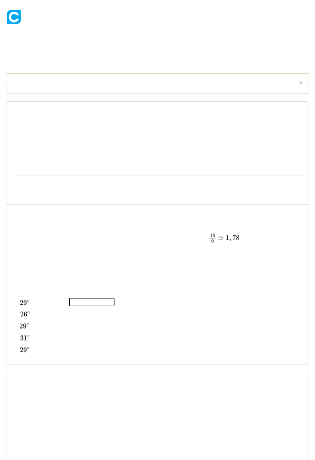 05/02/2024 19:45 Colaborar - Av1 - Elementos da Matemática II https://www.colaboraread.com.br/aluno/avaliacao/index/3307051905?atividadeDisciplinaId=16089219 1/3 Elementos da Matemática II (/aluno/timeline… Av1 - Elementos da Matemática II Sua avaliação foi confirmada com sucesso (/notific × Informações Adicionais Período: 05/02/2024 00:00 à 04/03/2024 23:59 Situação: Cadastrado Tentativas: 2 / 3 Pontuação: 2500 Protocolo: 971526051 Avaliar Material 1) a) b) c) d) e) 2) O tamanho das telas de televisores, smarthphones, tablets, monitores e diversos outros equipamentos é informado em polegadas (). Esse valor refere-se à medida da diagonal da tela. No padrão de tela widescreen (do inglês wide: largo e screen: tela), a razão entre o comprimento e a largura da tela é de 16:9 ou seja, . Isso quer dizer que o comprimento é aproximadamente 1,78 vezes a altura da tela. Considere uma tela widdescreen de 50”. Assinale a alternativa que indica os valores aproximados do ângulo entre a diagonal e o lado maior, da largura e do comprimento da tela, nessa ordem. Alternativas: ; 62 cm; 110 cm Alternativa assinalada ; 62 cm; 110 cm ; 102 cm; 61 cm ; 64 cm; 102 cm ; 62 cm; 102 cm O proprietário de um sítio quer construir um cercado em formato triangular para criar alguns animais. Para isso ele irá utilizar uma tela aramada, conforme o esquema da figura a seguir. Figura - Representação esquemática da área triangular (os elementos ilustrados não estão em proporção) https://www.colaboraread.com.br/aluno/timeline/index/3307051905?ofertaDisciplinaId=2145017 https://www.colaboraread.com.br/notificacao/index javascript:void(0); 05/02/2024 19:45 Colaborar - Av1 - Elementos da Matemática II https://www.colaboraread.com.br/aluno/avaliacao/index/3307051905?atividadeDisciplinaId=16089219 2/3 a) b) c) d) e) 3) a) b) c) d) e) 4) a) Fonte: O autor. Assinale a alternativa que contém a área dessa região e o comprimento total de tela aramada que ele irá utilizar, nessa ordem. Alternativas: ; ; ; Alternativa assinalada ; ; A partir de um ponto A, observa-se o topo de uma árvore sob um ângulo de . Ao caminharmos por 25 metros em linha reta na direção da base da árvore, atingimos outro ponto B, de onde se observa novamente o topo da árvore, dessa vez segundo um ângulo de . Assinale a alternativa que indica a altura aproximada dessa árvore, desprezando-se a altura do observador. Considere . Alternativas: 21,25 m Alternativa assinalada 25,21 m 23,50 m 20,15 m 25,25 m Na circunferência, um ponto P pode dar k voltas completas, em ambos os sentidos, que irá determinar arcos côngruos. A expressão geral dos arcos côngruos a um arco de medida , com ou pode ser escrita como: ou O arco de medida é chamado 1ª determinação positiva dos côngruos a ele. Assinale a alternativa que contém a expressão que determina todos os arcos côngruos ao arco cuja medida é . Alternativas: , com . 05/02/2024 19:45 Colaborar - Av1 - Elementos da Matemática II https://www.colaboraread.com.br/aluno/avaliacao/index/3307051905?atividadeDisciplinaId=16089219 3/3 b) c) d) e) 5) a) b) c) d) e) , com . , com . , com . , com . Alternativa assinalada Considere as seguintes razões trigonométricas, para ângulos em graus ou radianos com menos de uma volta completa, no sentido anti-horário. A) B) C) Agora, considere os seguintes valores. I) II) III) Assinale a alternativa que associa corretamente a razão trigonométrica a seu respectivo valor, com a letra e o símbolo romano correspondente. Alternativas: A – I; B – II; C – III; A – II; B – I; C – III; A – III; B – I; C – II; A – II; B – III; C – I; A – III; B – II; C – I; Alternativa assinalada