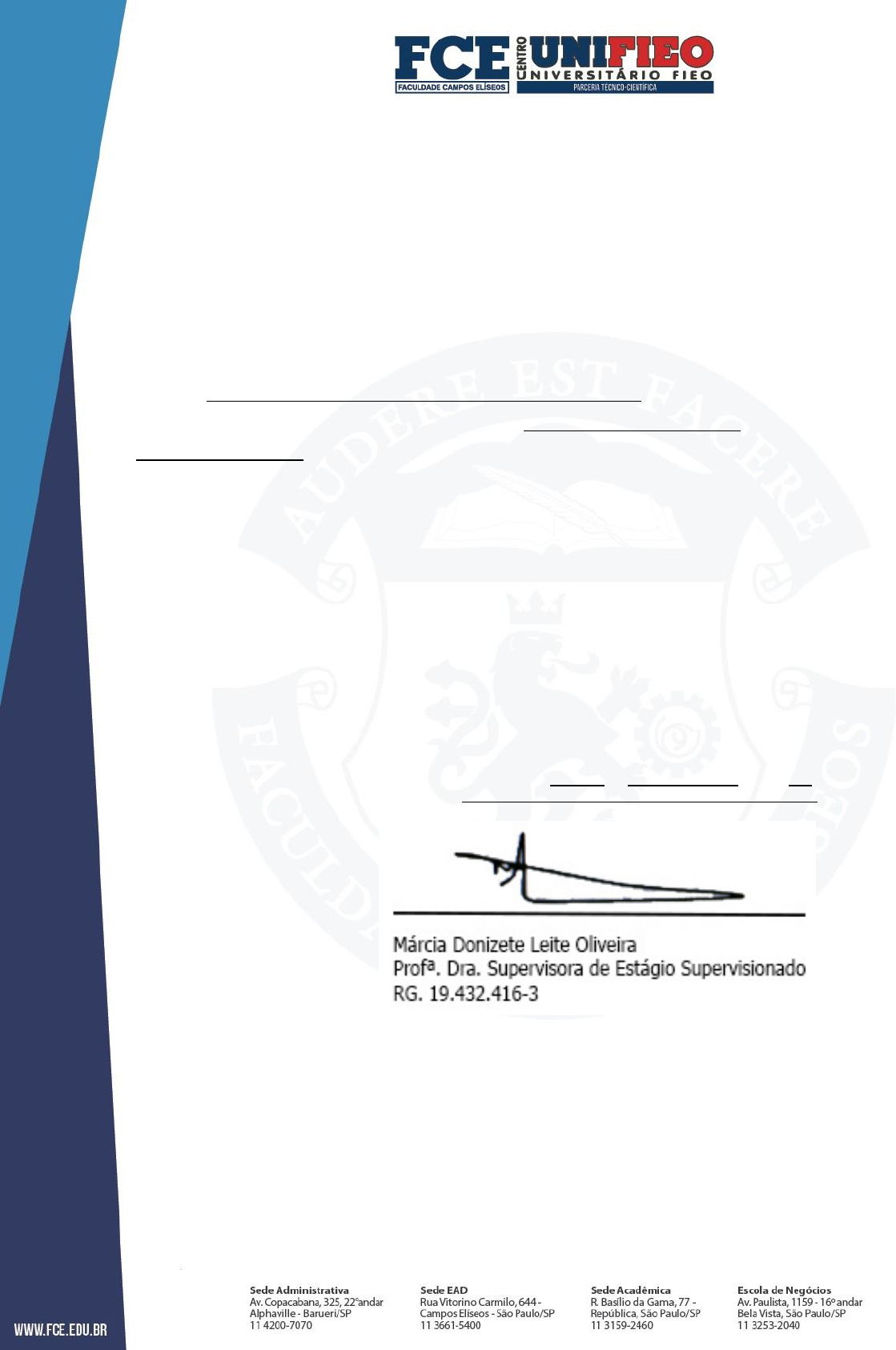Encaminhamento de aluno para Estágio Sr. (a) Diretor (a), Esta Instituição de Ensino tem a grata satisfação de lhe apresentar o aluno (a) , regularmente matriculada(a) no Curso de em cuja conclusão depende da realização de Estágio, que ora é possível, através desta conceituada Instituição. Temos absoluta certeza de que a colaboração de V.Sa., recebendo o (a) referido (a) aluno (a), demonstra vosso total compromisso com a formação acadêmica de novos profissionais e com o e desenvolvimento da Educação Nacional. Desde já agradecemos a colaboração e colocamo-nos a vossa total disposição para quaisquer esclarecimentos. Respeitosamente, São Paulo, de de 20 . Prof.ª Dra. Márcia Donizete Leite Oliveira RG. 19.432.416-9 Professora/ Supervisora de Estágio Supervisionado. User Máquina de escrever Carolina Garcia Neves Simon User Máquina de escrever Licenciatura User Máquina de escrever Matemática User Máquina de escrever 01 setembro 23 Projeto Multidisciplinar Identificação: Desigualdade Racial no Brasil: Uma análise matemática e histórica Escola: EE Vicente Felício Primo Público alvo: Comunidade escolar Disciplinas envolvidas: Matemática e História Duração: 4º bimestre de 2023 Justificativa: Este projeto interdisciplinar permite que os alunos explorem questões sociais relevantes, desenvolvam habilidades analíticas em Matemática e compreendam a influência da história nas relações étnico-raciais no Brasil. O Brasil tem uma grande diversificação de povos, desde o início da colonização, mas ainda assim sofre com muito preconceito e discriminação. Trazer esta realidade para os alunos, para que entendam a força desta cultura, e analisem com dados os impactos que até hoje estes grupos sofrem com o passado de exploração. Objetivos: Investigar as relações étnico-raciais no Brasil a partir de uma abordagem interdisciplinar, utilizando conceitos de Matemática e História. Metodologia e Desenvolvimento: 1. Contextualização Histórica: ● Estudo da história das relações étnico-raciais no Brasil, desde a época da colonização até os dias atuais. ● Discussão sobre os principais eventos e movimentos relacionados à questão racial no país. 2. Coleta de Dados: ● Pesquisa sobre dados demográficos e sociais que demonstram desigualdades raciais no Brasil, como renda, educação, saúde, etc. ● Análise de gráficos e estatísticas relevantes. 3. Análise Matemática: ● Utilização de dados coletados para criar gráficos e representações matemáticas que evidenciem as desigualdades raciais. ● Estudo de conceitos matemáticos, como porcentagem, média, mediana e desvio padrão, para analisar os dados. 4. Discussão Interdisciplinar: ● Comparação entre os dados históricos e as análises matemáticas, identificando padrões e tendências. ● Debate sobre como fatores históricos influenciaram as desigualdades raciais e como a Matemática pode ajudar a compreender essas desigualdades. Recursos: Para a realização do projeto será necessário: ● Cartazes; ● Mural; ● Filmes; ● Livros; ● Palestras. Avaliação A avaliação dos alunos pode ser iniciada com base em sua participação nas discussões, na qualidade de seus relatórios ou apresentações e na compreensão das relações entre Matemática e História no contexto das relações étnico-raciais. Plano de Aula 1 Tema: Multiplicação e Divisão Autor: Carolina Data: 25/09/2023 Objetivos Gerais: A multiplicação e divisão como operações inversas. Objetivos Específicos: Reconhecer a multiplicação e divisão como operações inversas, fazendo ou não uso dos algoritmos usuais Desenvolvimento: Habilidade da BNCC (EF06MA03) Resolver e elaborar problemas que envolvam cálculos (mentais ou escritos, exatos ou aproximados), com números naturais, por meio de estratégias variadas, com compreensão dos processos neles envolvidos com ou sem uso de calculadora. Nesta atividade, o objetivo é levar os alunos a reconhecerem a multiplicação e divisão como operações inversas, fazendo ou não, uso dos algoritmos usuais. Para isso, ele terá de analisar os quadros apresentados, verificando quais números devem ser inseridos nos espaços em branco, se fazem sentido e se estão relacionados com seus vizinhos, de acordo com as operações indicadas nas setas. Dessa forma, não espera-se que os alunos preencham os quadros com números quaisquer, mas que verifiquem e entendam o significado do número que está sendo inserido nas operações indicadas. O aluno pode optar por utilizar o número 1 nos quadrados menores para facilitar seus cálculos, não consistindo necessariamente num erro, desde que de acordo com as operações indicadas. Em alguns quadros, não há um padrão de preenchimento nos quadrados menores. Encerre a atividade ressaltando a multiplicação e divisão como operações inversas. Levante questionamentos que os instiguem a pensar a respeito das diferentes formas de utilização desse conhecimento. Avaliação Após explicação, passar aos alunos lista de atividades, aguardar que todos façam os exercícios, e depois corrigir explicando todas as questões, para encerramento de dúvidas. Relembrar momentos do cotidiano em que se é usado multiplicação e divisão. Plano de Aula 2 Tema: Multiculturalismo: Diversidade cultural Autor: Carolina Data: 26/09/2023 Objetivos Gerais: Sistema de numeração decimal: características, leitura, escrita e comparação de números naturais e de números racionais representados na forma decimal. Objetivos Específicos: Compreender a estrutura do Sistema de Numeração Decimal, realizando a leitura e a escrita de números de qualquer ordem e grandeza. Explorar as ordens e as classes. Desenvolvimento: (EF06MA02) Reconhecer o sistema de numeração decimal como fruto de um processo histórico, percebendo semelhanças e diferenças com outros sistemas de numeração, de modo a sistematizar suas principais caracte