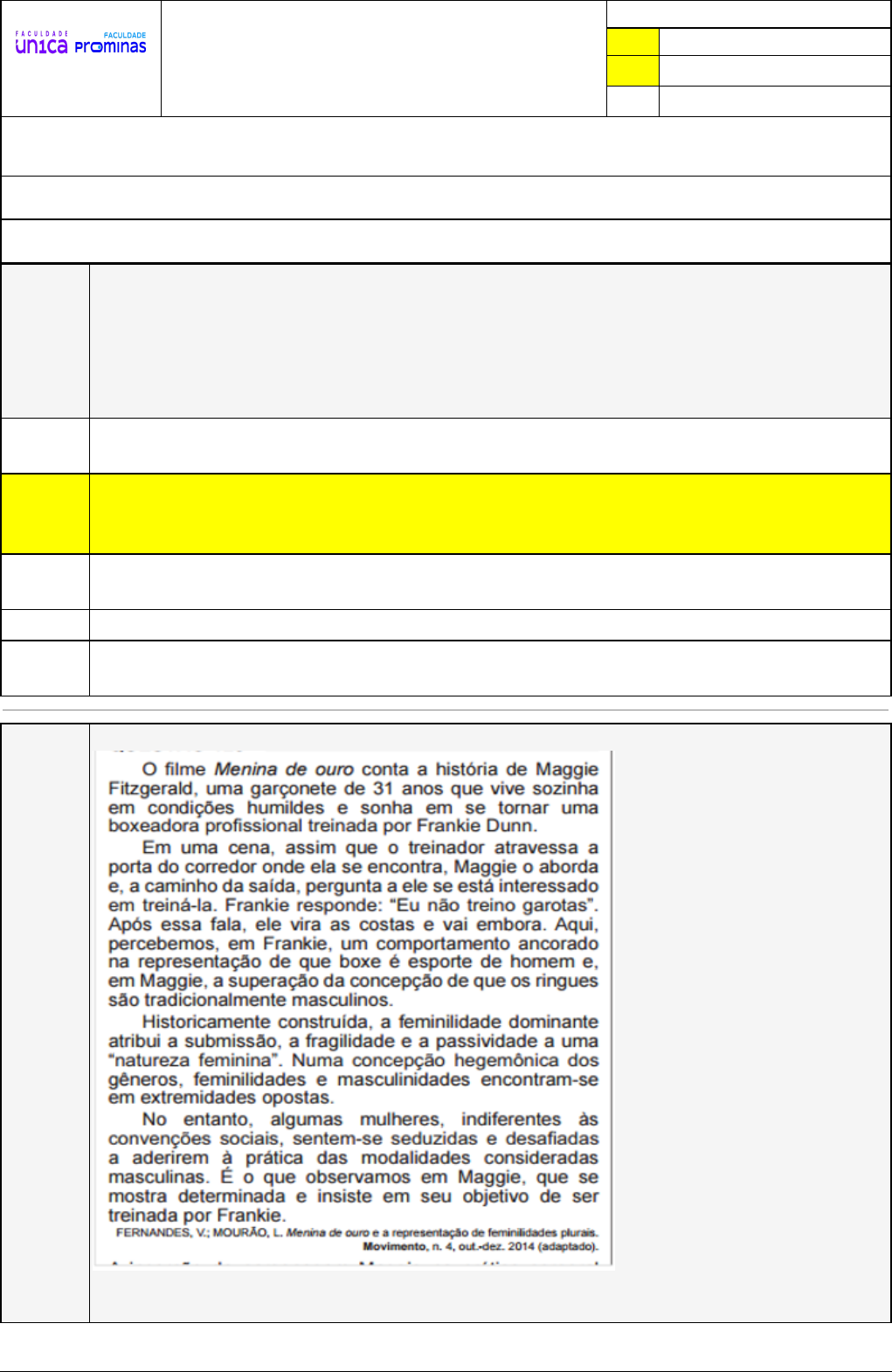 Pincel Atômico - 16/02/2024 12:09:44 1/4 AMANDA DE OLIVEIRA MORAES Avaliação Online (SALA EAD) Atividade finalizada em 06/02/2024 17:43:13 (645854 / 1) LEGENDA Resposta correta na questão # Resposta correta - Questão Anulada X Resposta selecionada pelo Aluno Disciplina: PRÁTICA PEDAGÓGICA DESPORTIVA: ESPORTES COLETIVOS II [787749] - Avaliação com 10 questões, com o peso total de 30,00 pontos [capítulos - Todos] Turma: Segunda Graduação: Segunda Graduação 6 meses - Licenciatura em Educação Física - Grupo: FPD-FEV2022 - SGegu0A030123 [81067] Aluno(a): 91344364 - AMANDA DE OLIVEIRA MORAES - Respondeu 9 questões corretas, obtendo um total de 27,00 pontos como nota [361145_1641 94] Questão 001 (AV MOREIRA 2020) - O futsal, antes denominado futebol de salão, é derivado do futebol de campo, e que, por seu valor recreativo, social e competitivo, está presente nos programas de lazer de qualquer comunidade. Praticado de forma bem orientada, o futsal desenvolve a coordenação, a agilidade, a velocidade e a precisão. Possui regras específicas e de acordo com a CBFS em relação ao arremesso lateral do futsal é CORRETO afirmar: O tiro lateral deve ser cobrado apenas usando os pés sendo a bola colocada no local por onde saiu, podendo ser jogada apenas em direção ao gol. X O jogador que executar o tiro lateral não poderá tocar uma segunda vez antes que outro jogador toque. Se tocar a mão, será penalizado com tiro direto e se tocar com qualquer outra parte do corpo será tiro indireto. Se o jogador executar o tiro lateral contra a meta adversária tocar ou for tocada por qualquer jogador e penetrar a meta, o gol será invalido. O tiro lateral no futsal será cobrado sempre que a bola atravessar o campo adversário Quando for realizado tiro lateral, os jogadores adversários deverão respeitar uma distância de 1 metro da bola e estar um dentro da quadra de jogo. [361145_1570 95] Questão 002 (ENEM, 2016, DIA 2) A inserção da personagem Maggie na prática corporal do boxe indica a possibilidade da construção de uma feminilidade marcada pela: Pincel Atômico - 16/02/2024 12:09:44 2/4 naturalização de barreiras socioculturais responsáveis pela exclusão da mulher no boxe. adequação da mulher a uma modalidade esportiva alinhada a seu gênero. aceitação de padrões sociais acerca da participação da mulher nas lutas corporais. valorização de comportamentos e atitudes normalmente associados à mulher. X transposição de limites impostos à mulher num espaço de predomínio masculino. [361145_1641 93] Questão 003 (IF-CE/IF-CE/Técnico de Laboratório – Educação Física/2017) Considere-se um árbitro de futebol, conhecedor das regras que regem a modalidade. Diante de algumas situações ocorridas em campo, analise as questões a seguir, considerando como válidas ou não durante uma partida. I. É válido um gol feito através de um arremesso lateral, sem que o mesmo toque em algum jogado. II. Poderá um goleiro fazer uma cobrança de uma penalidade máxima. III. Quando ocorre um impedimento, é concedido ao adversário um tiro livre indireto, cobrado no local da ocorrência. IV. O Juiz poderá determinar uma penalidade máxima, quando um jogador da defesa, dentro da área penal, agride o adversário de ataque que está conduzindo a bola. V. É permitido na defesa, durante uma partida, empurrar, segurar ou dar trancos, segurar a bola com as mãos fora da área penal. Estão corretas: II, IV e V. I, II e III. III, IV e V. X II, III e IV. I, III e IV. [361145_1562 87] Questão 004 Qual modalidade que em seu início era realizado um torneio de artes marciais, onde praticamente não havia regras, ou seja, os lutadores se caracterizavam com as vestimentas das lutas (ex: judô de kimono, boxe com luvas e shorts, etc.) e as lutas aconteciam até a desistência de um dos lutadores, sem tempo estabelecido? Karatê Paintball X Mix Martial Arts (MMA) Boxe Esgrima Pincel Atômico - 16/02/2024 12:09:44 3/4 [361145_1641 92] Questão 005 Segundo Weston e colaboradores (2012), os árbitros de futebol apresentam alta demanda cognitiva durante uma partida. Porém, diferentemente dos atletas, o treino dos árbitros tem se limitado ao treinamento da condição física, da leitura das regras do jogo e ver vídeos de jogos para analisar e discutir os lances e as decisões (HENRIQUES; ARAÚJO, 2012). Em relação à atuação dos árbitros, analise as seguintes considerações abaixo: 1)Messner e Schmid (2007) observaram que, durante uma partida, se uma das equipes for da mesma cultura do árbitro, esta tem vantagem sobre a outra; 2)Durante uma partida, os árbitros acrescentam mais tempo de jogo quando o time mandante está perdendo; 3)Além disso, foi constatado que são marcados mais pênaltis, legítimos ou não, a favor do time mandante. De acordo com essas informações, o que isso indica em relação à atuação dos árbitros? Uma clara imparcialidade para os dois times. Uma clara imparcialidade dos árbitros a favor do time mandante. Uma clara imparcialidade dos árbitros a favor do time visitante. Uma clara parcialidade dos árbitros a favor do time visitante. X Uma clara parcialidade dos árbitros a favor do time mandante. [361146_1562 34] Questão 006 O ensino das Lutas pelo profissional da Educação Física no ambiente escolar deve dar-se por meio da utilização de modelos de ensino. Qual é o modelo de ensino de Lutas que se baseava na repetição dos gestos técnicos, divididos em partes e que a soma das partes aprendidas deveria se resultar no todo da prática esportiva? Crítico Crítico Construtivista Abordagem Crítico superadora Social X Tecnicista [361146_1593 63] Questão 007 Os sistemas táticos mostram a evolução do jogo de futebol, nos dias atuais as características e demandas do jogo são completamente diferentes das dinâmicas e exigências do passado. Portanto, qual desses sistemas eram utilizados há décadas passadas? 2x3x5 4x3x3 5x3x2 X 4x4x2 4x