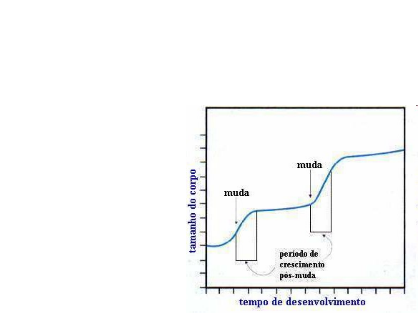 Arthropodes Animais de patas articuladas; Agrupados em 3 grandes grupos: Insecta, Arachnida e Crustacea. Exoesqueleto com quitina; - Confere rigidez e impermeabilidade; - O crescimento é periódico (fase de MUDA ou ECDISE); ECDISE OU MUDA Sistema nervoso constituído de gânglios nervosos e um cordão ventral. São triblásticos, celomados, digestão extracelular e sistema cardiovascular aberto. O sistema de excreção recolhe resíduos do sangue e os elimina por canais que se abrem na superfície do corpo ou no intestino. São dióicos, a fecundação geralmente é interna e o desenvolvimento pode ser direto ou indireto dependendo da classe. Sistema respiratório: Branquial (brânquias) Indivíduos aquáticos como os crustáceos Traqueal (espiráculos, se comunicam com a traqueia) Insetos, algumas aranhas Filotraqueal (pulmões foleaceos) aracnídeos CRUSTÁCEOS Possuem 4 antenas, cefalotórax e abdome. Excreção feita por glândula verde. ARACNÍDEOS Aranhas, ácaros, carrapatos e escorpiões; São dotados de quelíceras, pedipalpos e no caso das aranhas, fiandeiras. Corpo divido em cefalotórax e abdome; Digestão extra corporal; myria = muitos ; poda = pés Quilópodes - Representado pelas centopeias e lacraias. Corpo formado por 2 tágmas : cabeça e tronco dotado de metameria. Apresenta: 1 par de antenas e 1par de patas em cada metâmero. Varia de 15 a 170 metâmeros, dependendo da espécie. Myriapoda Diplópodes- Representado pelos piolhos-de-cobras (emboás). Possuem 3 tágmas: cabeça, tóraxa e abdome. Apresentam: 1 par de antenas, abdome formado de 25 a 100 metâmeros. Cada segmento é formado de 2 metâmeros fundidos compostos com 2 dois pares de pernas. Hexapoda São divididos em cabeça, tórax e abdome. Com algumas exceções, apresentam 1 par de antenas, 2 pares de asas e 3 pares de patas. Insetos