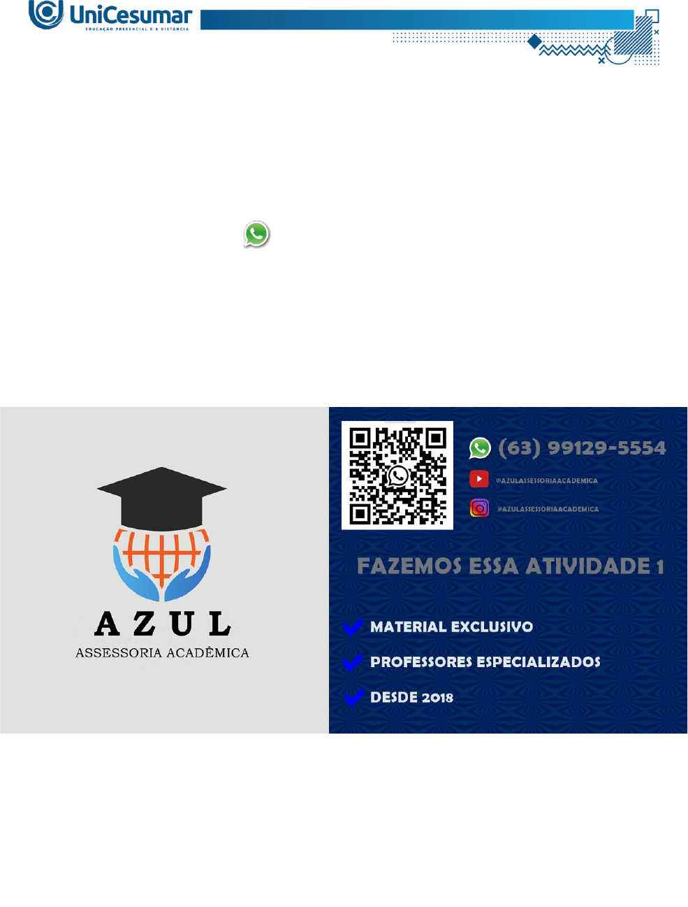 Olá, aluno(a)! Está com dificuldade ou sem tempo para elaborar essa atividade? Iremos te ajudar! Entre em contato (63) 99129-5554 ATIVIDADE 1 – BEDU - ATIVIDADE FÍSICA E QUALIDADE DE VIDA - 51/2024 A prescrição de exercícios físicos deve ser realizada de forma correta e baseada em princípios específicos que estão intimamente relacionados a eficácia do treinamento. Portanto, é extremamente importante que você conheça e saiba aplicar as variáveis determinantes do treinamento da melhor maneira possível Fonte: SMIRMAU, B. P. C.; ESTEVES, J. V. D. C. Atividade Física e Qualidade de Vida. Maringá: UniCesumar, 2022. Considerando as informações acima, responda: 1) Cite os componentes que devem fazer parte de uma sessão de treinamento. 2) Descreva os princípios fundamentais para uma prescrição de exercícios físicos eficaz.