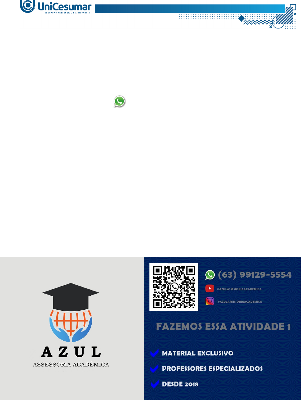 Olá, aluno(a)! Está com dificuldade ou sem tempo para elaborar essa atividade? Iremos te ajudar! Entre em contato (63) 99129-5554 ATIVIDADE 1 – BEDU - ATIVIDADE FÍSICA E QUALIDADE DE VIDA - 51/2024 A prescrição de exercícios físicos deve ser realizada de forma correta e baseada em princípios específicos que estão intimamente relacionados a eficácia do treinamento. Portanto, é extremamente importante que você conheça e saiba aplicar as variáveis determinantes do treinamento da melhor maneira possível Fonte: SMIRMAU, B. P. C.; ESTEVES, J. V. D. C. Atividade Física e Qualidade de Vida. Maringá: UniCesumar, 2022 Considerando as informações acima, responda: 1) Cite os componentes que devem fazer parte de uma sessão de treinamento 2) Descreva os princípios fundamentais para uma prescrição de exercícios físicos eficaz
